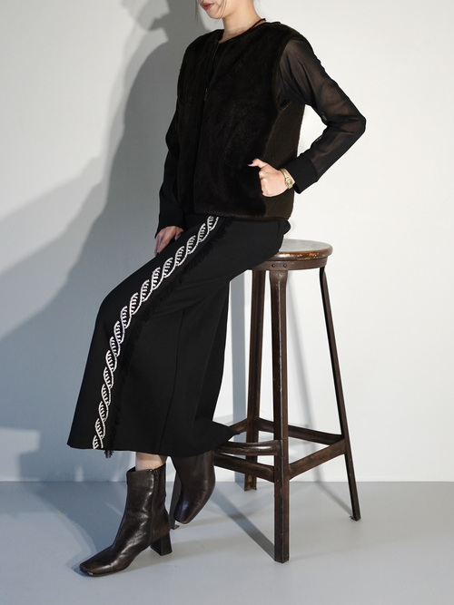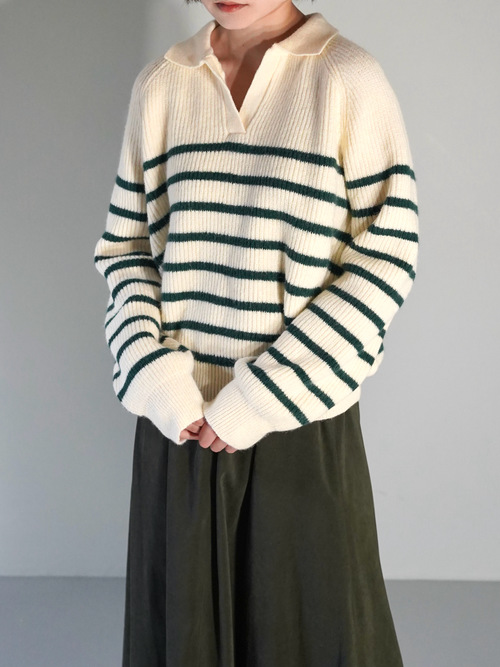 ややオーバーサイズなのでインナーにスウェットやニットも着こめます。