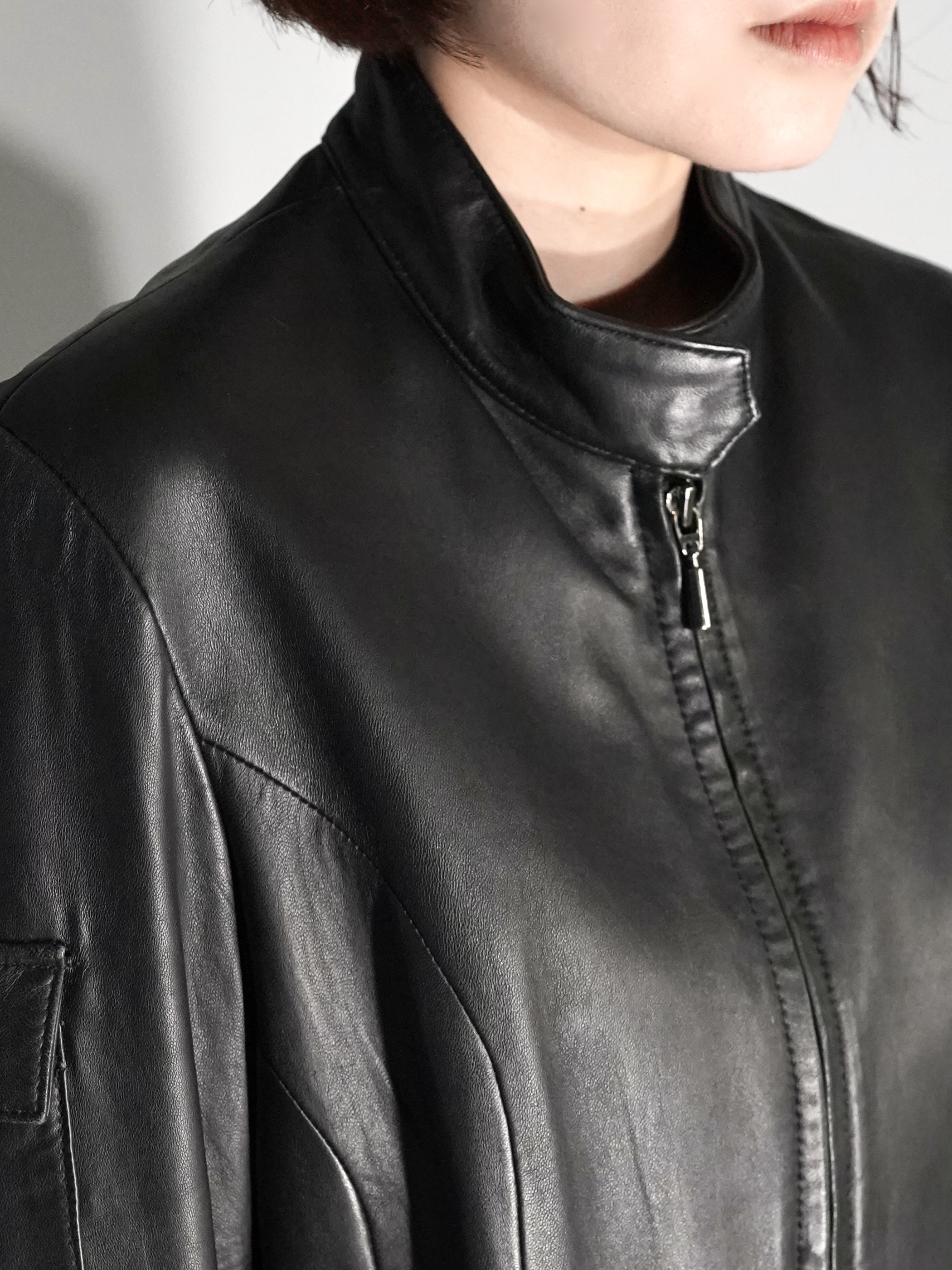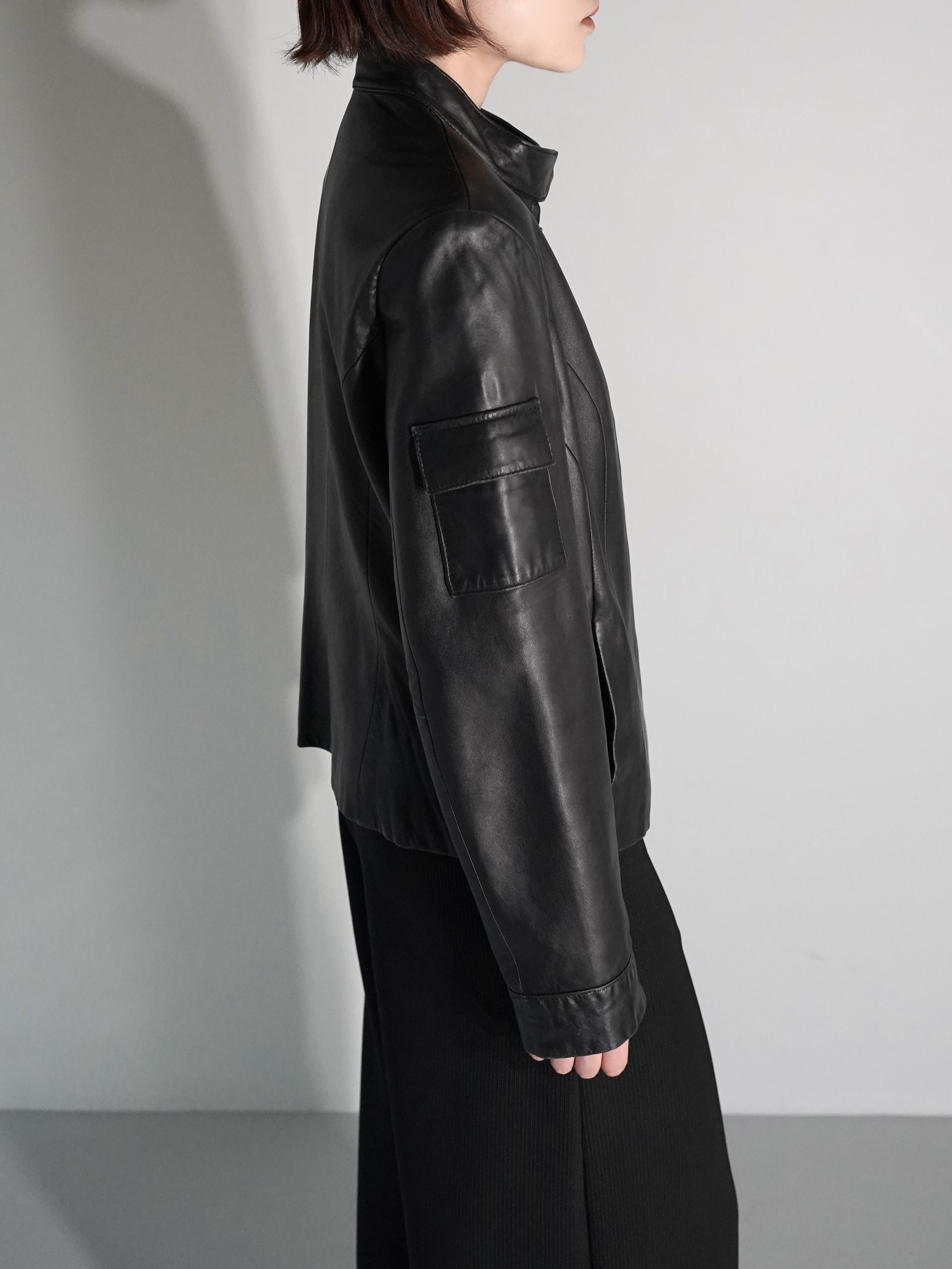 バイカージャケットやMA1などの要素を現代ぽくアレンジしたレザーブルゾン