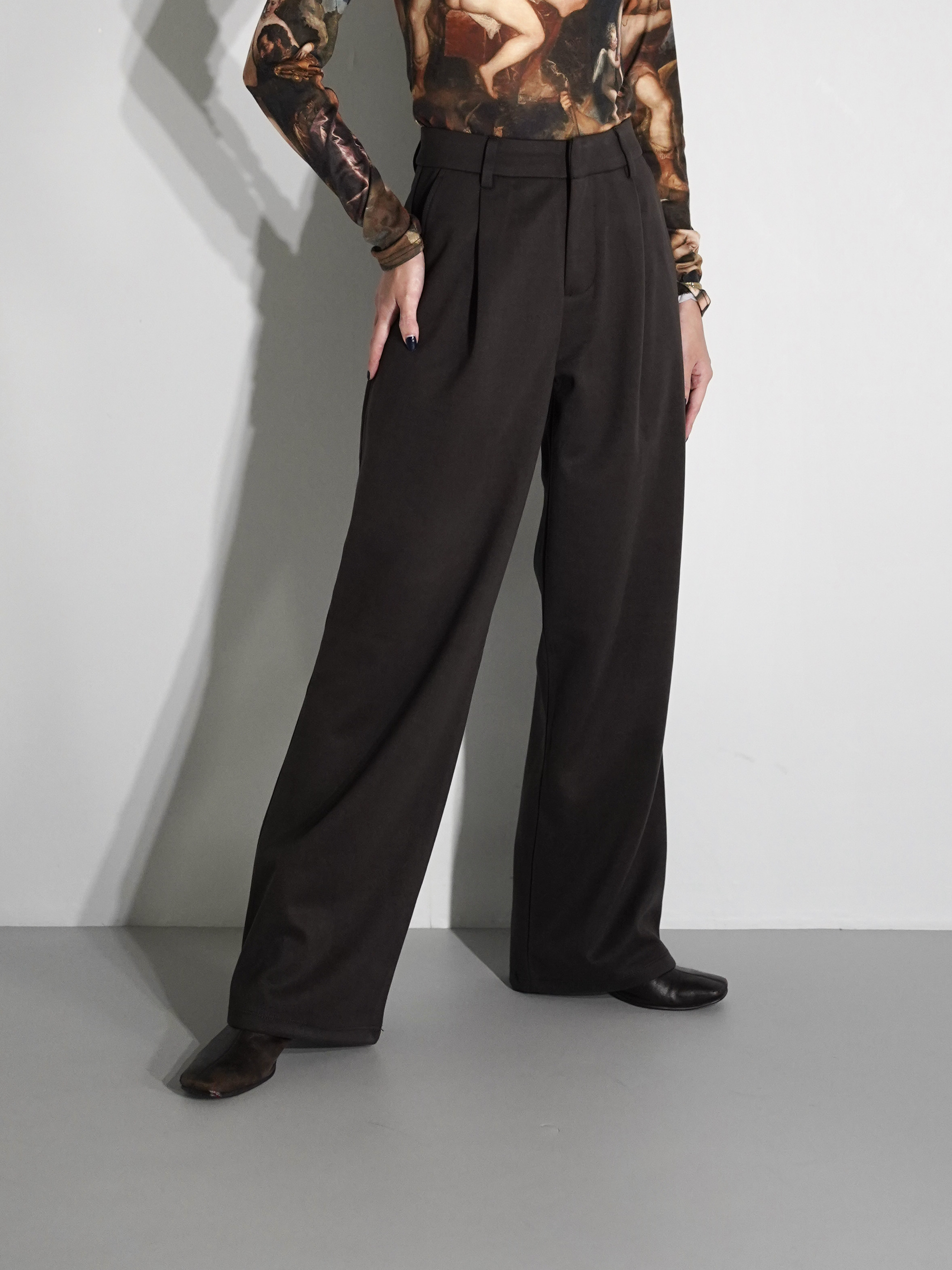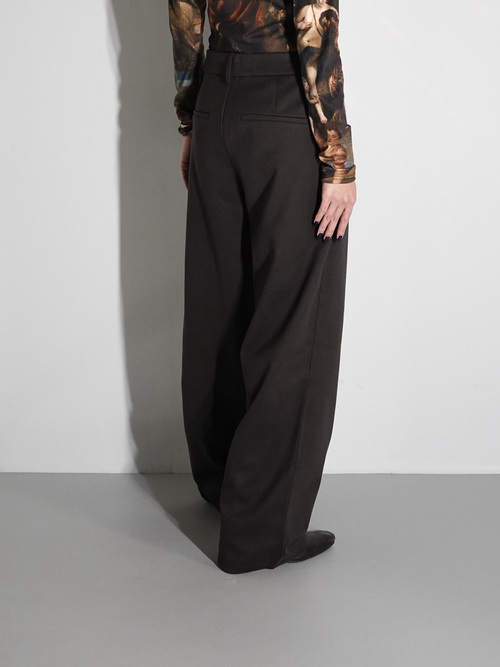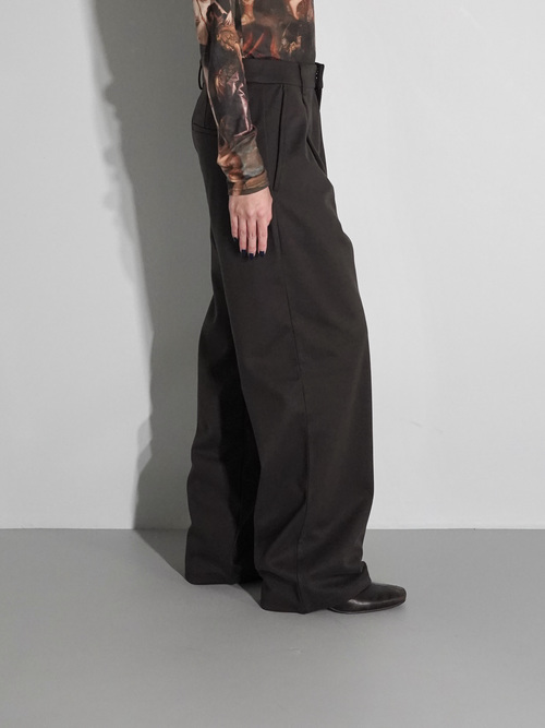 別珍の様な肌触りで伸縮性ある生地、ワイドシルエット