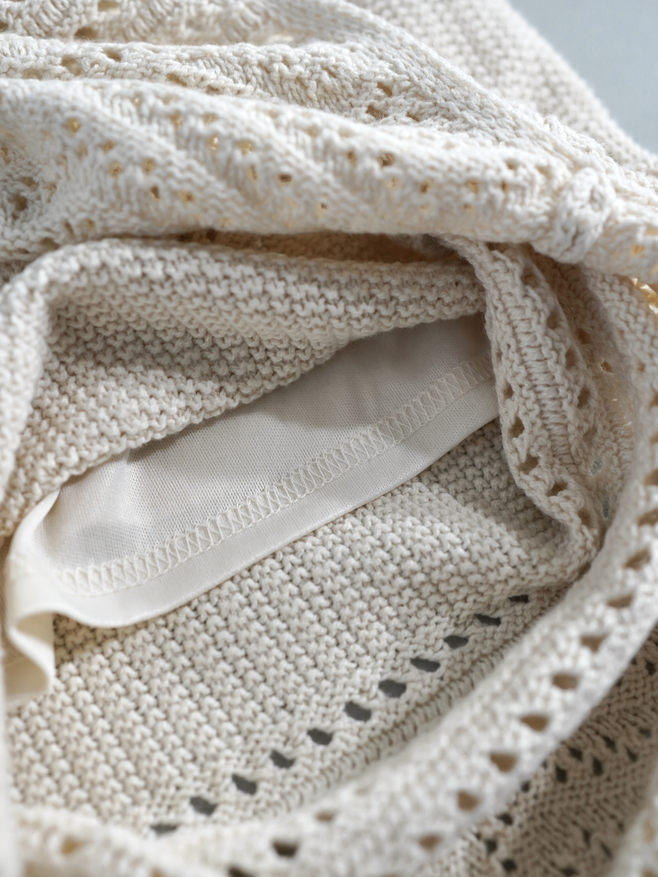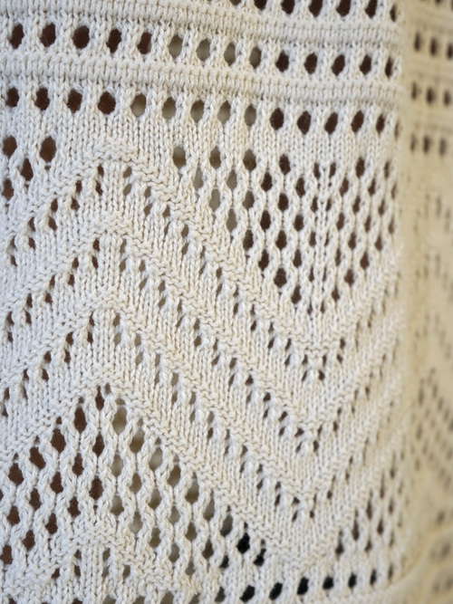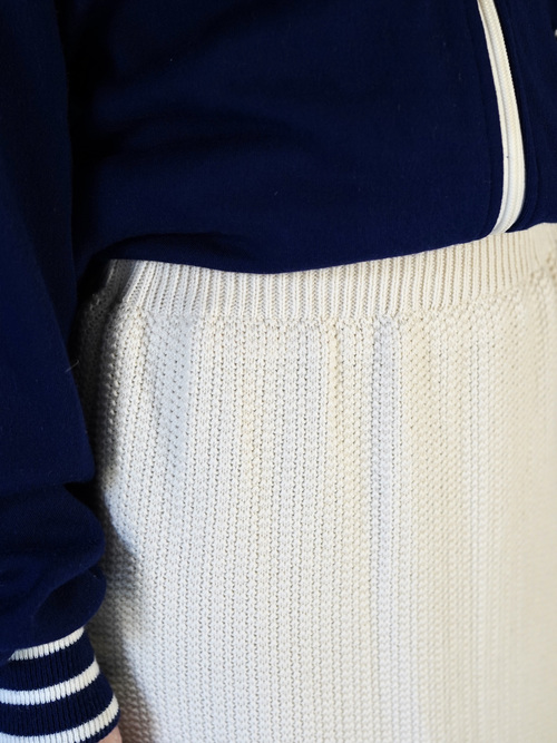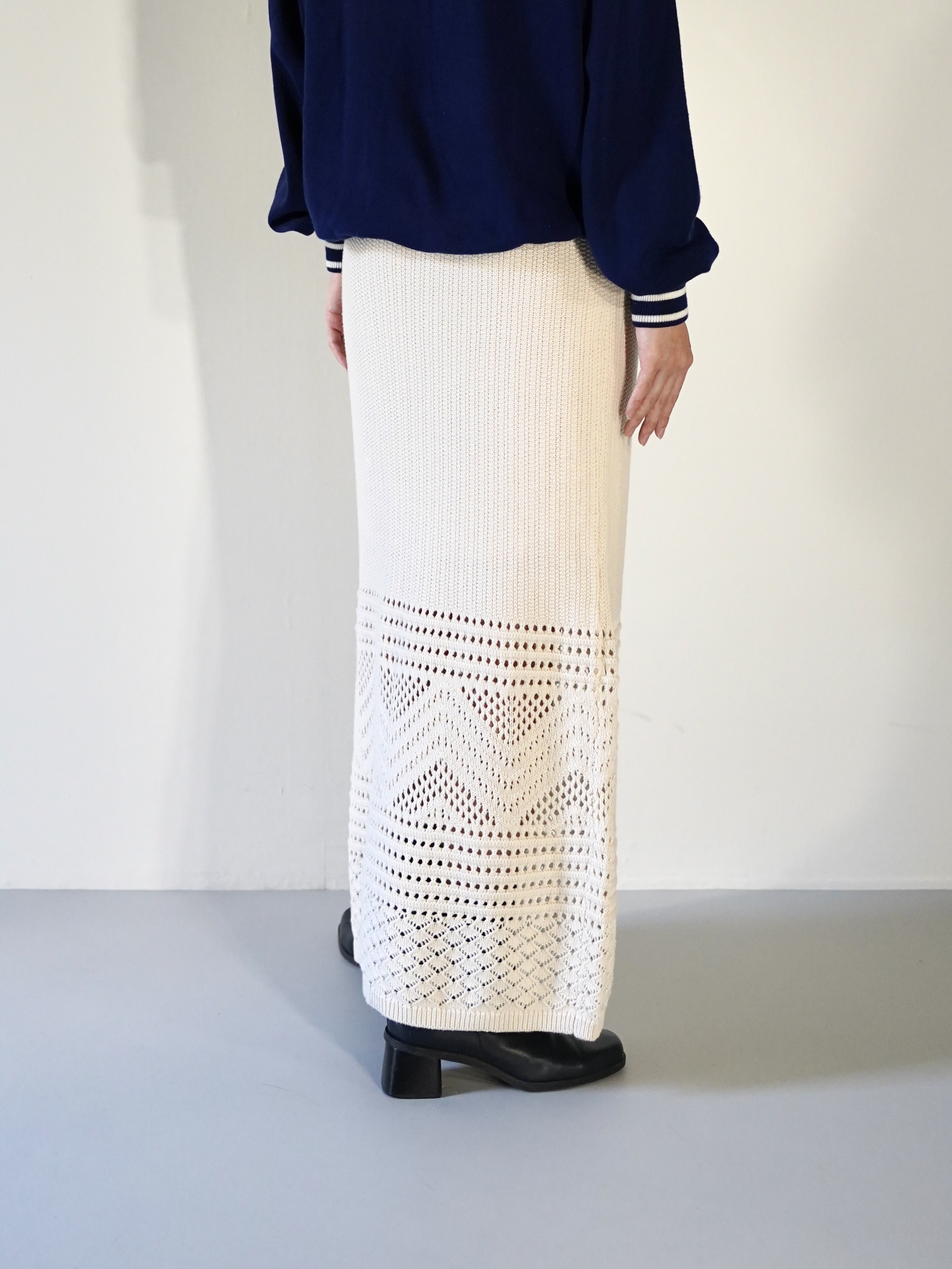 細やかな凸凹感のある鹿の子編みに、裾は繊細な透かし編みにて切り替えられた上品なニットスカート