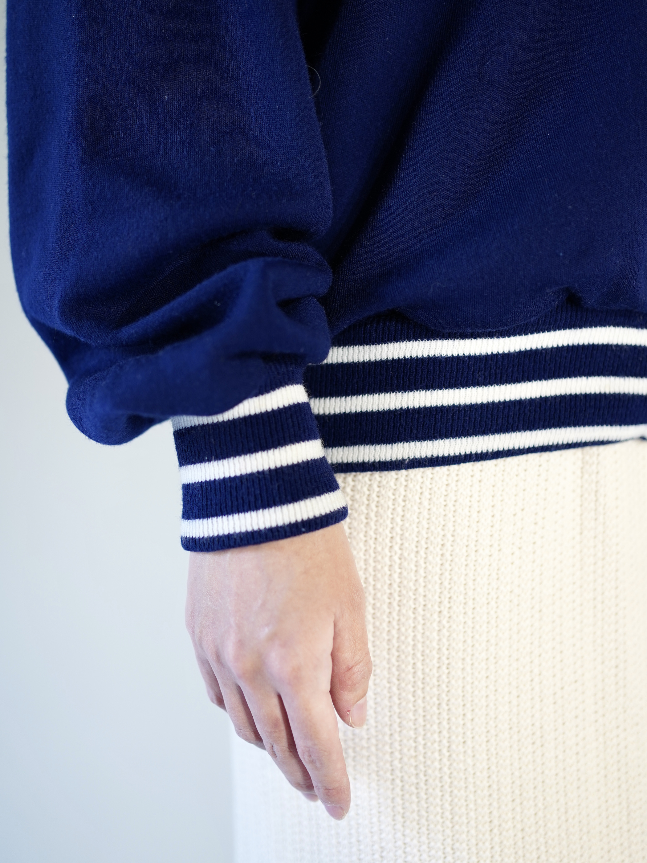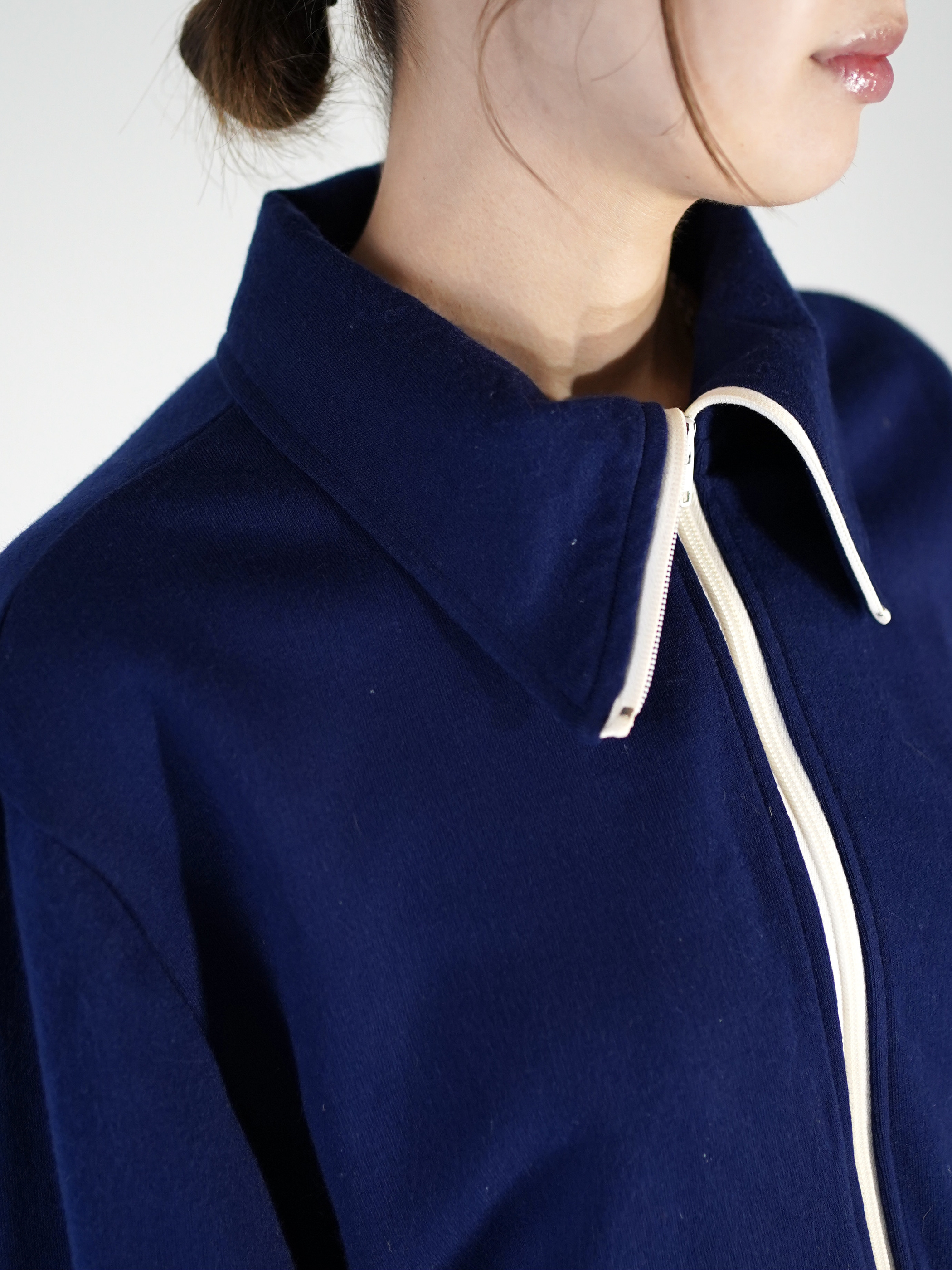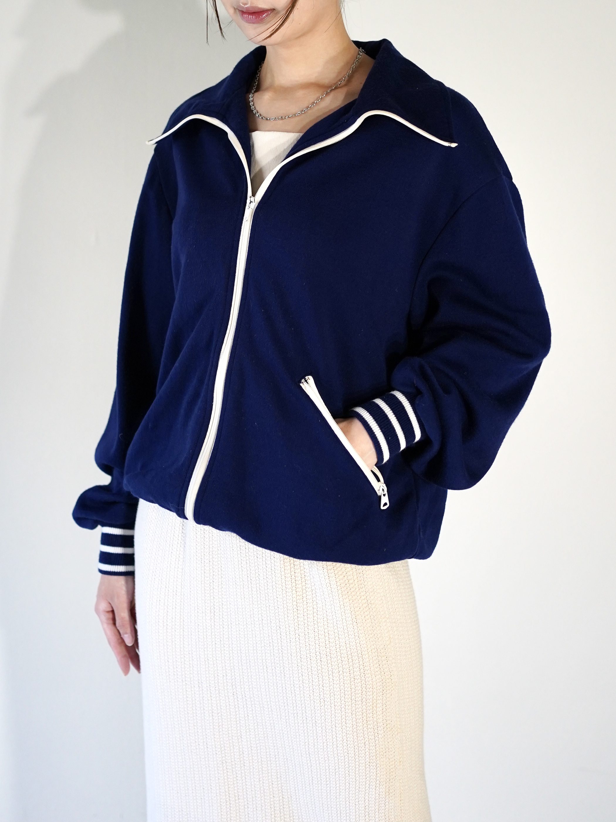 ホワイトのジップにネイビーカラー