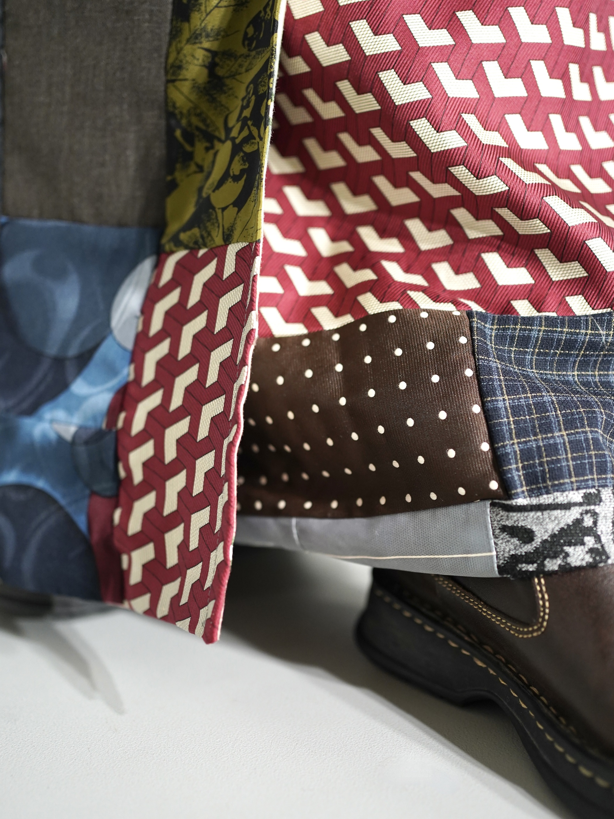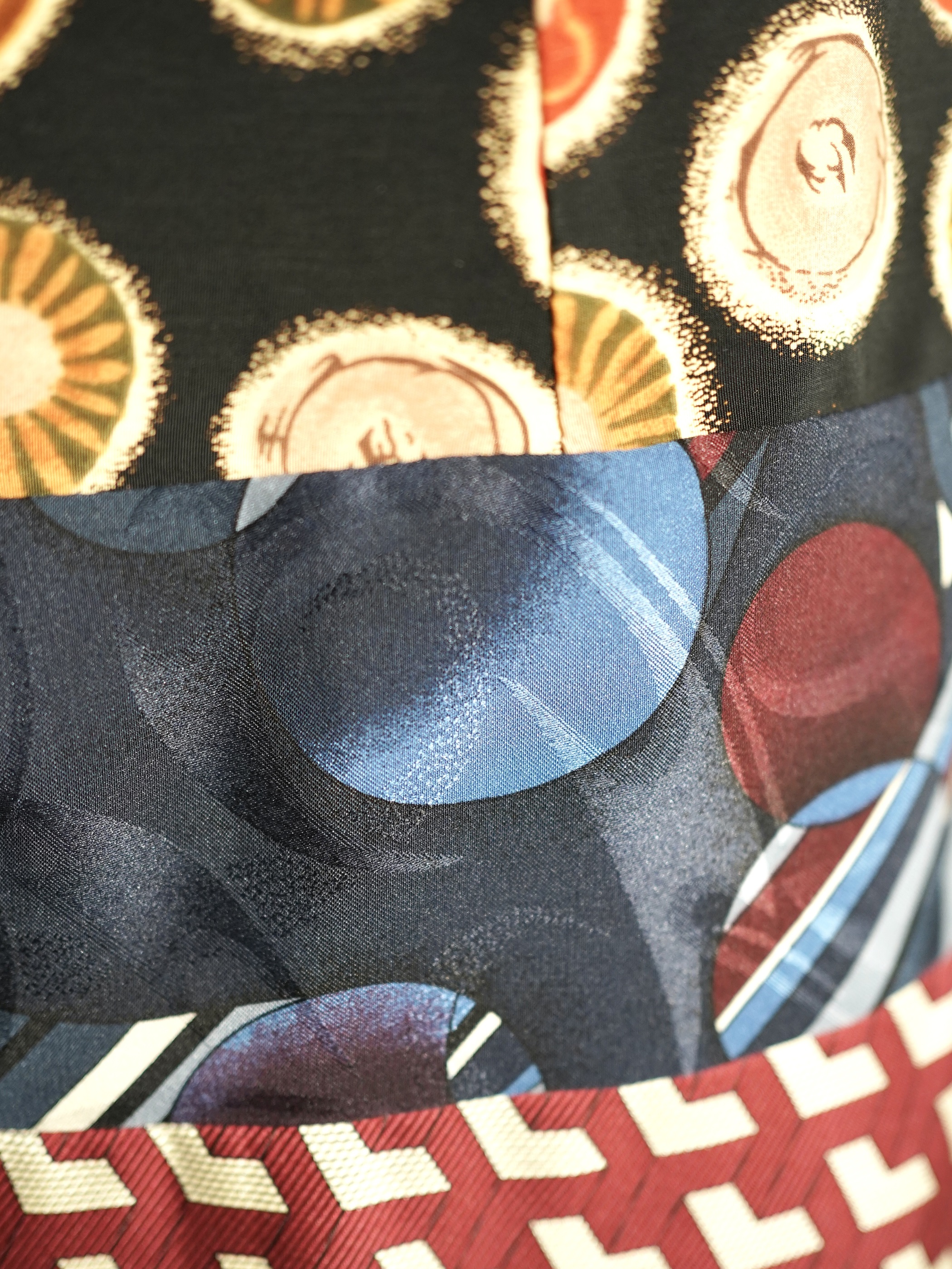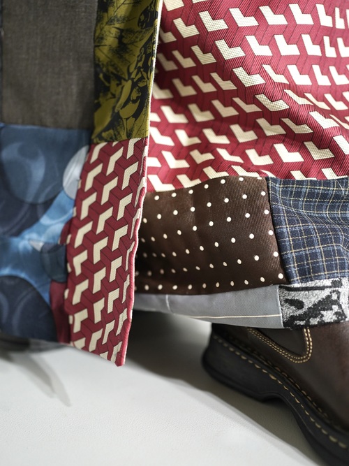 ナイロン生地、ジャカードなど古い生地や新しい生地がMIXに多種多様使用されており、様々な表情を見せる温故知新な特別感がある1pc