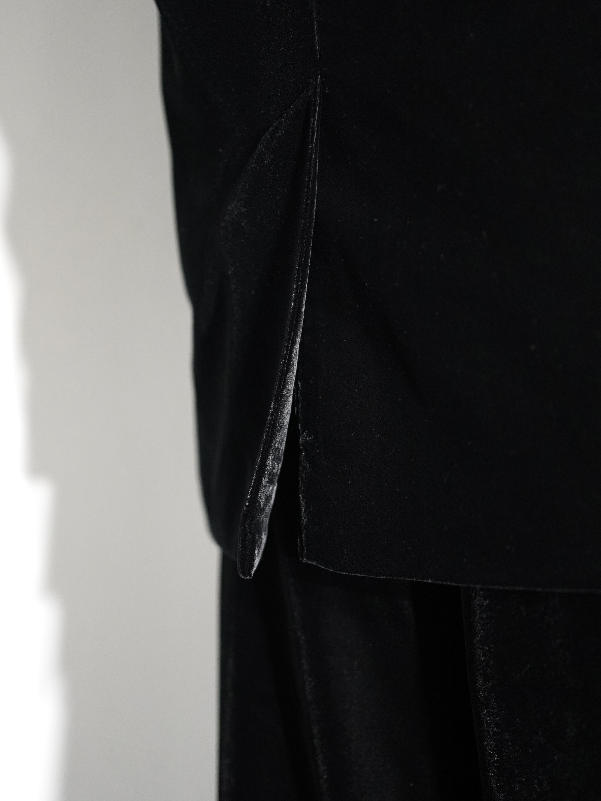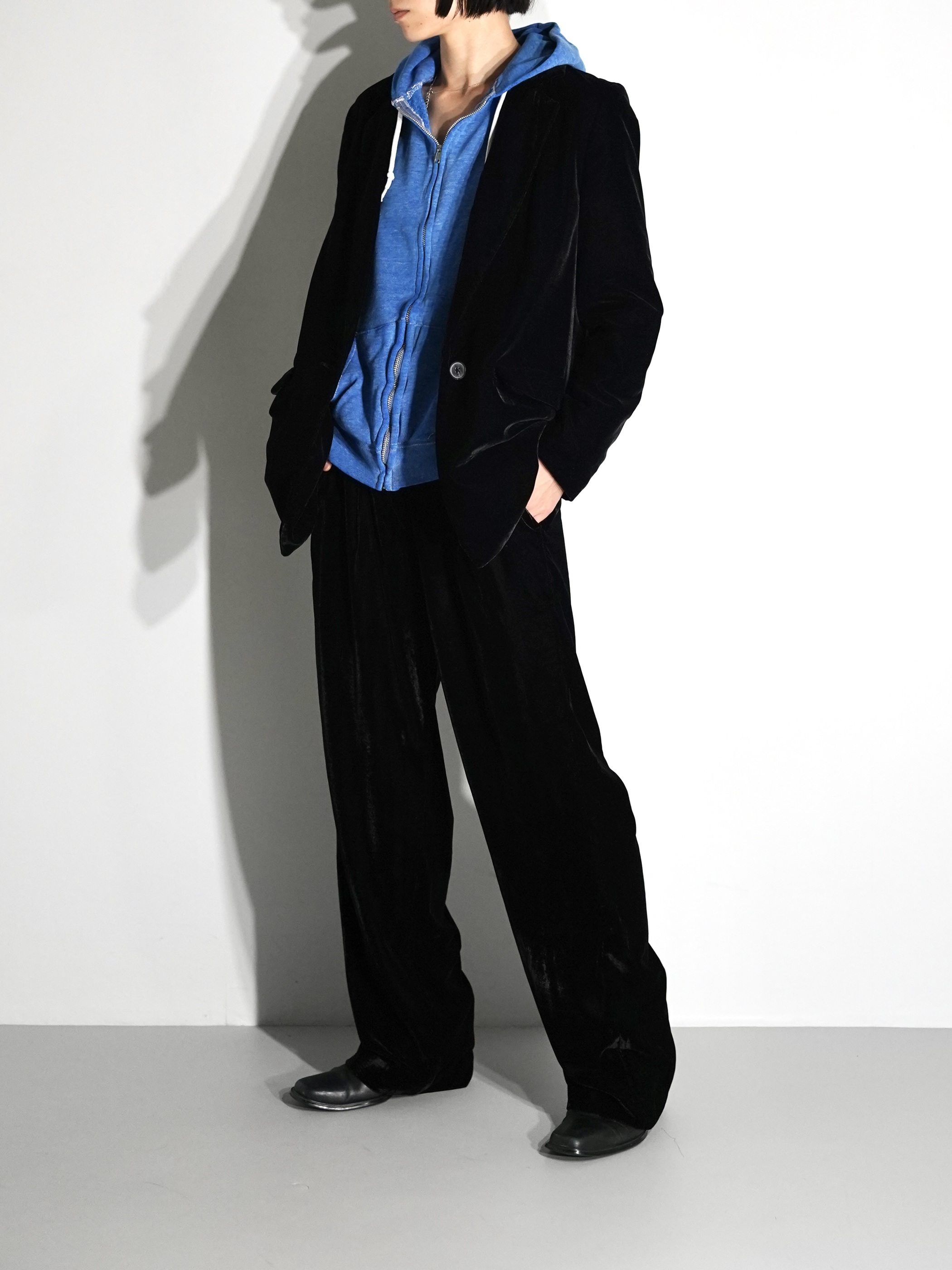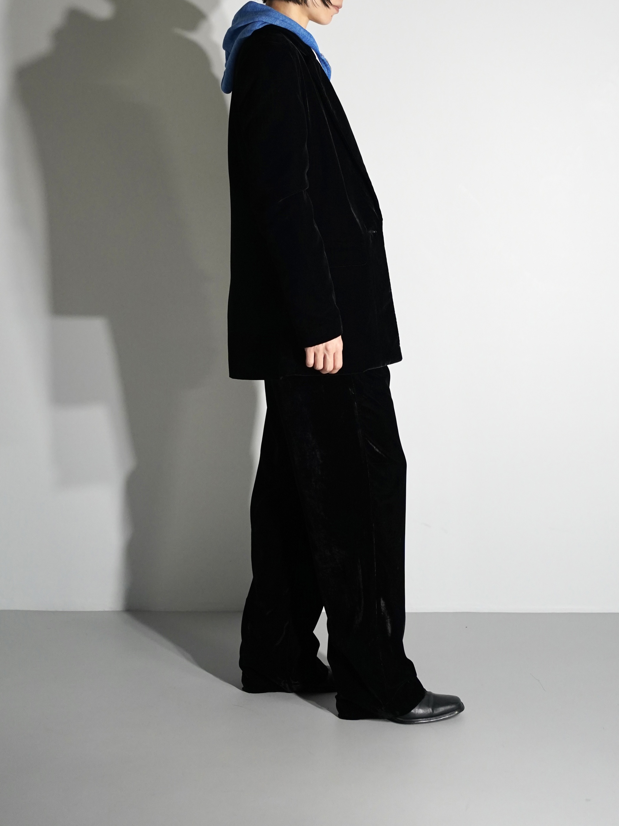 Velour Tailored Jacket & Tucked Slacks Pants Set up