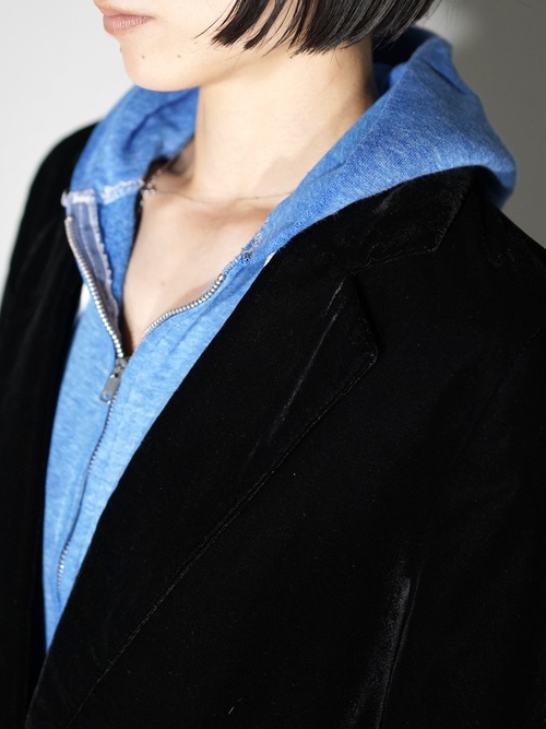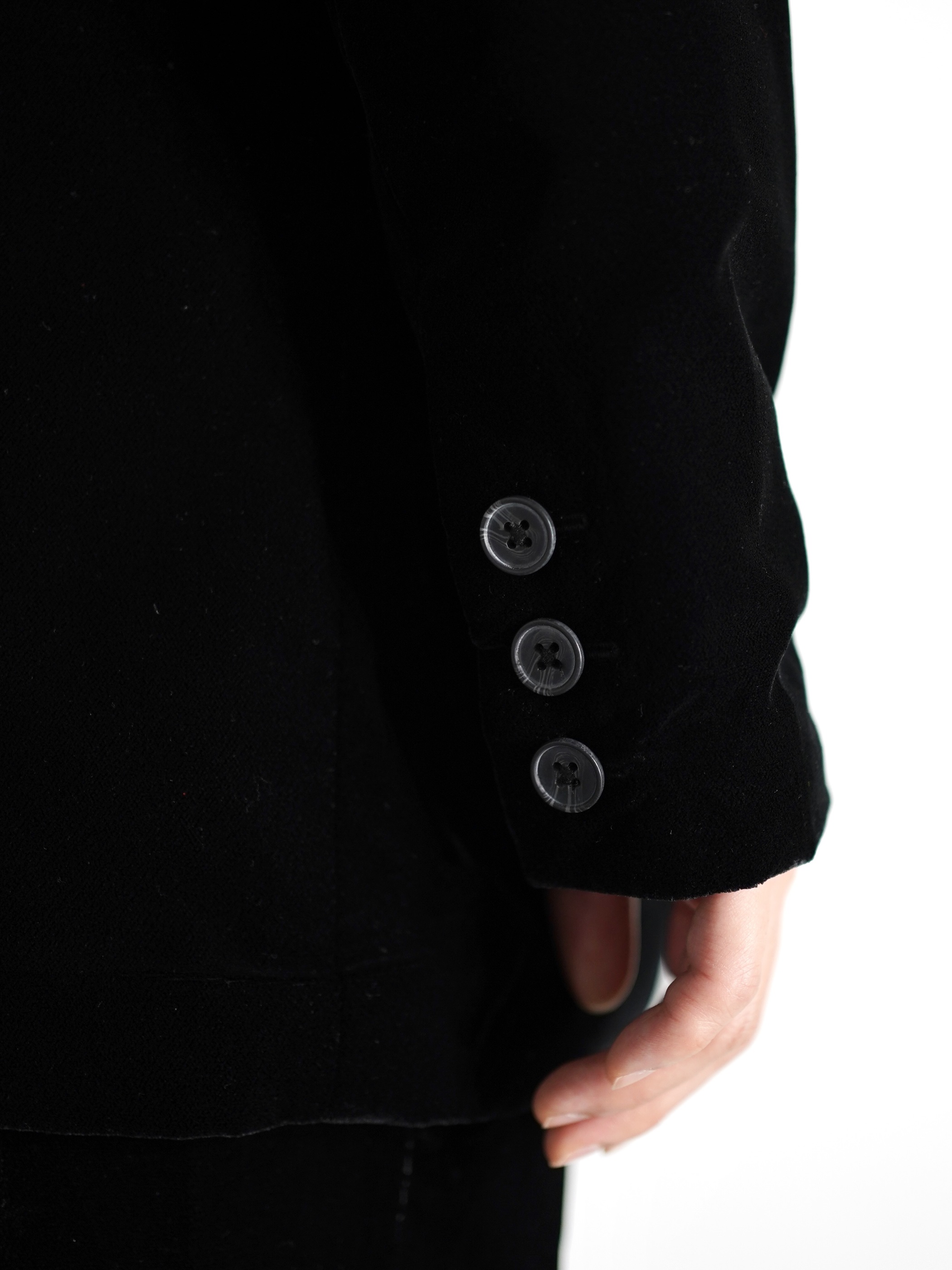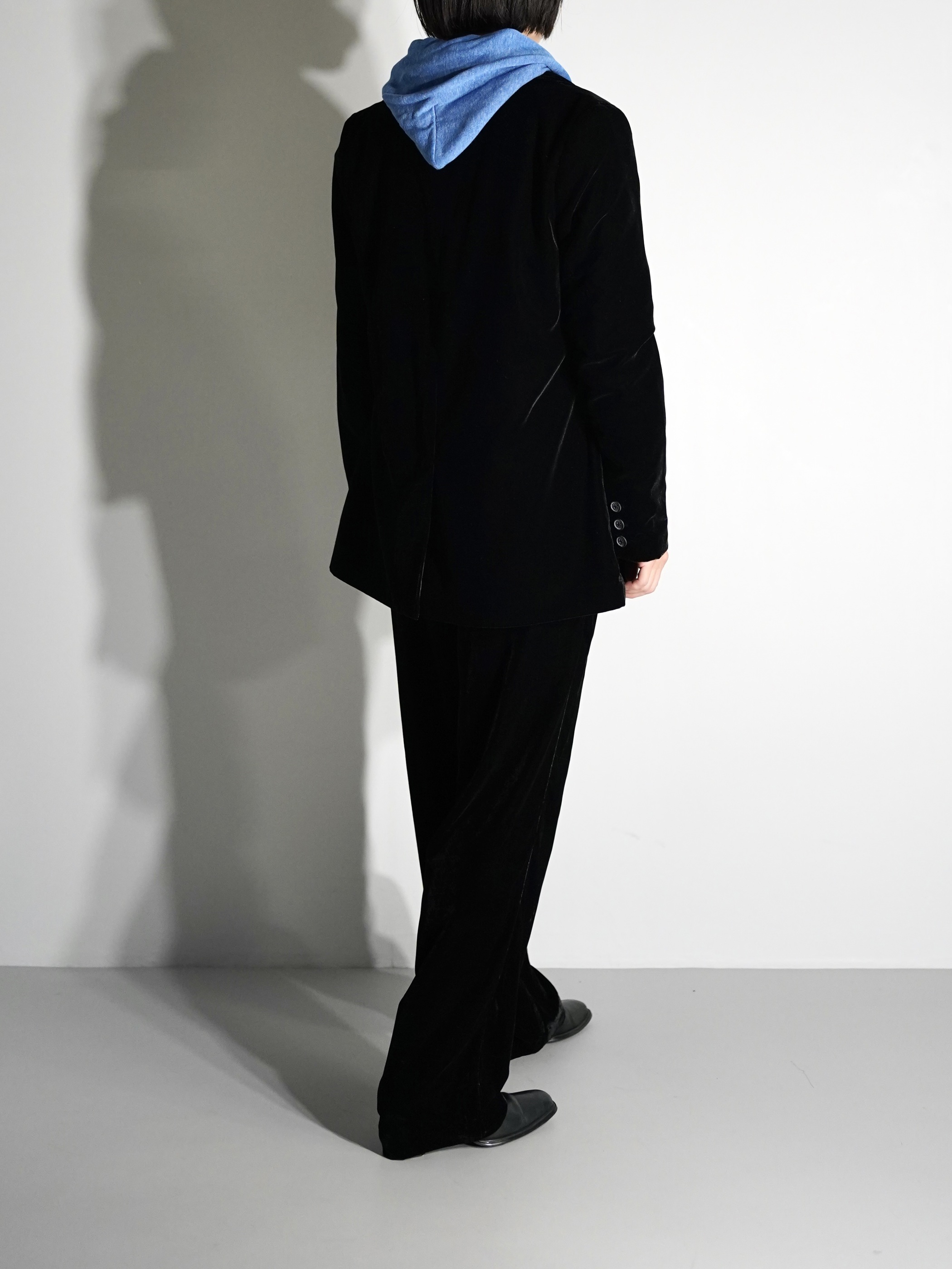 柔らかく光沢感のあるベロア素材のテーラードセットアップ