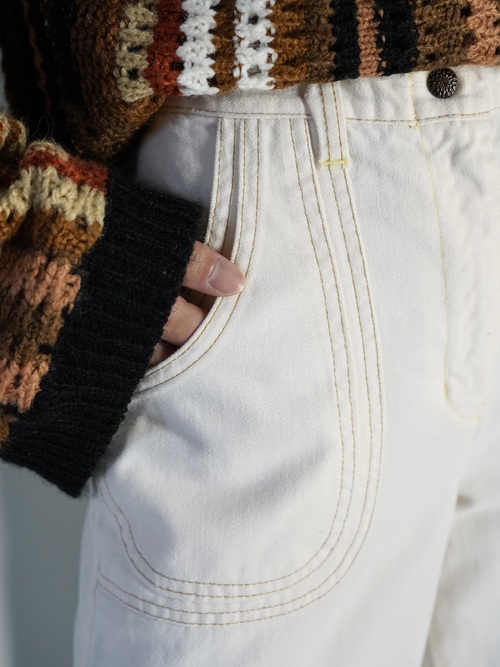 ポケット部分はカーブポケット、ステッチの色など古き良き雰囲気。更には2重ポケット仕様になるデザイン