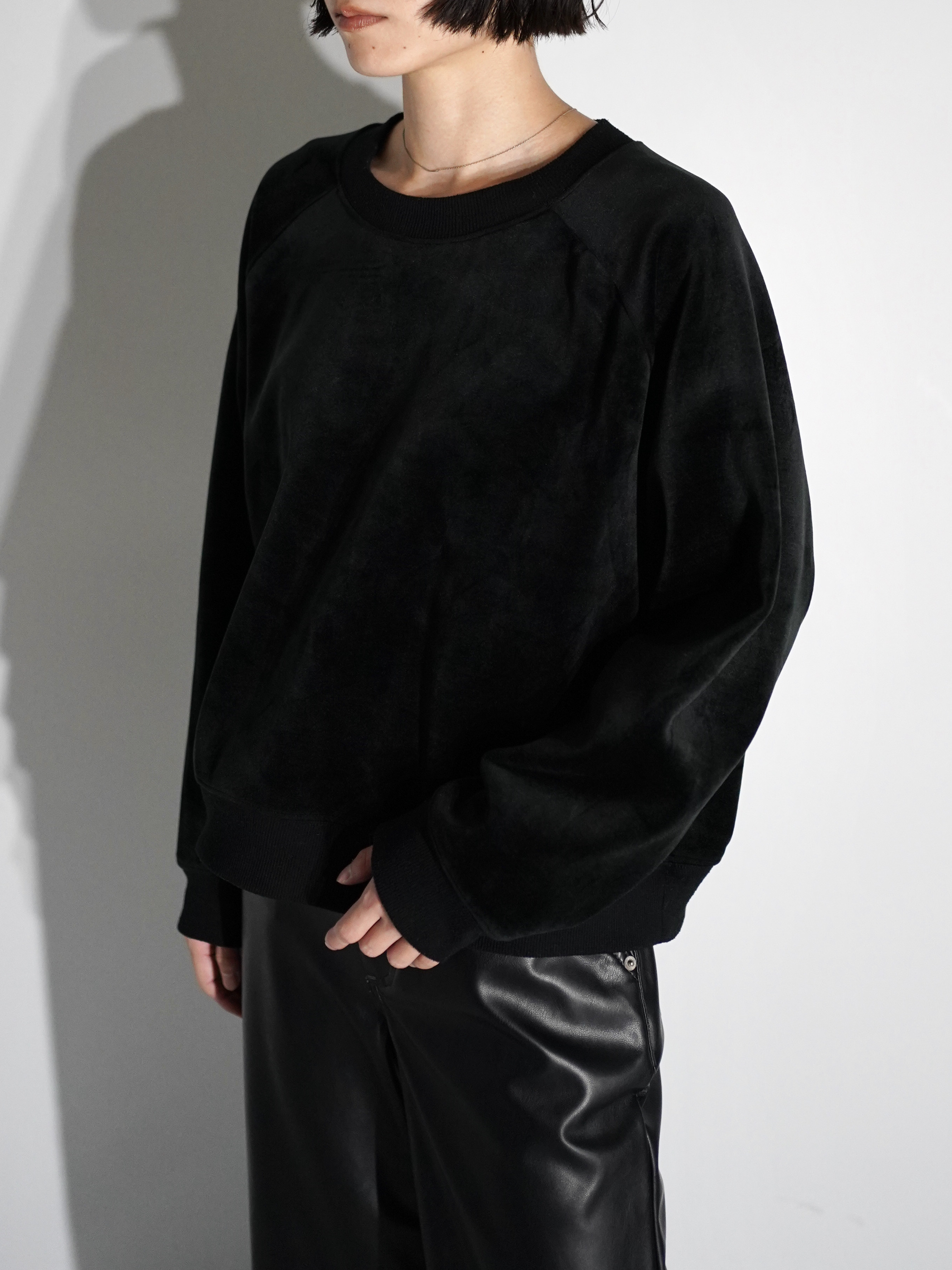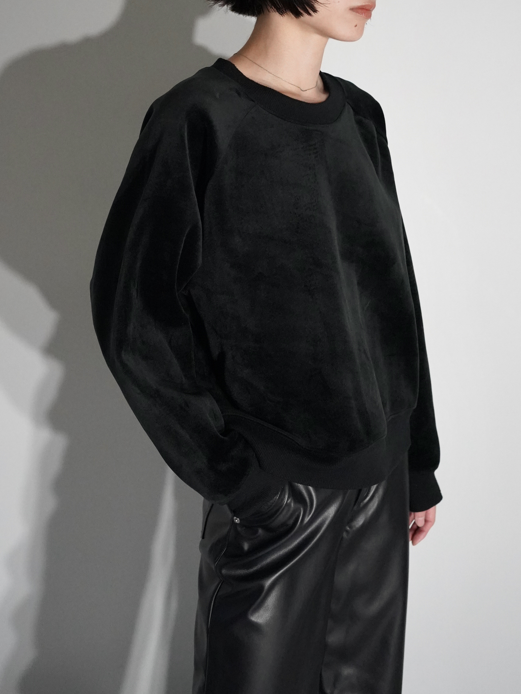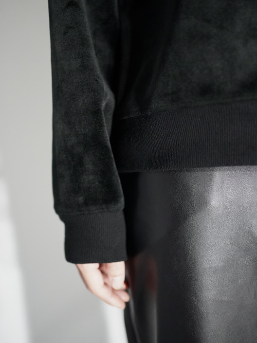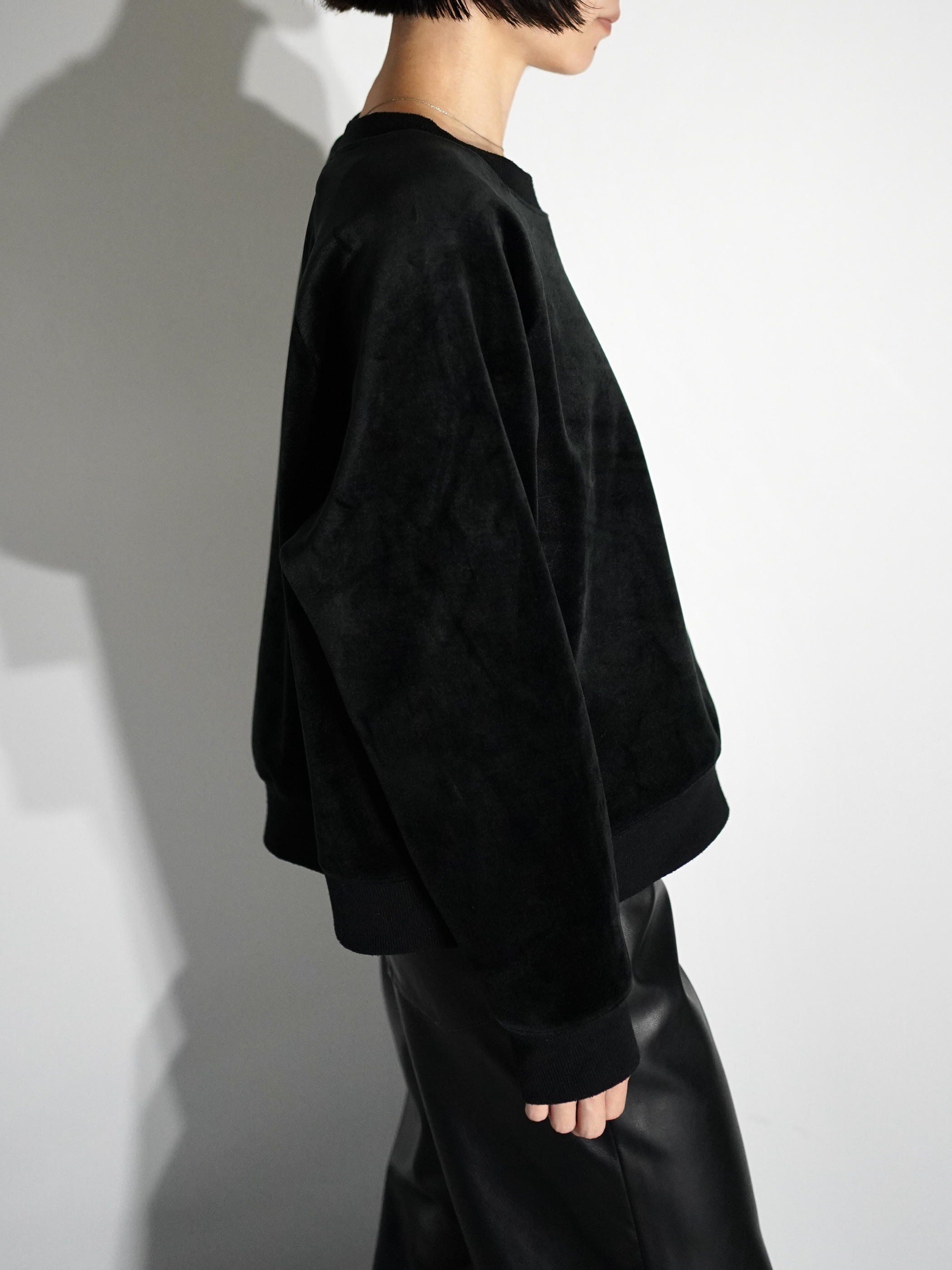 単にベロア素材のスウェット型トップスではなく、身幅をワイドに、着丈を短丈にデザインしているベロアトップス
