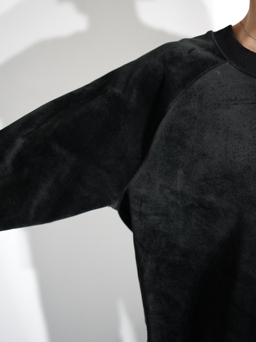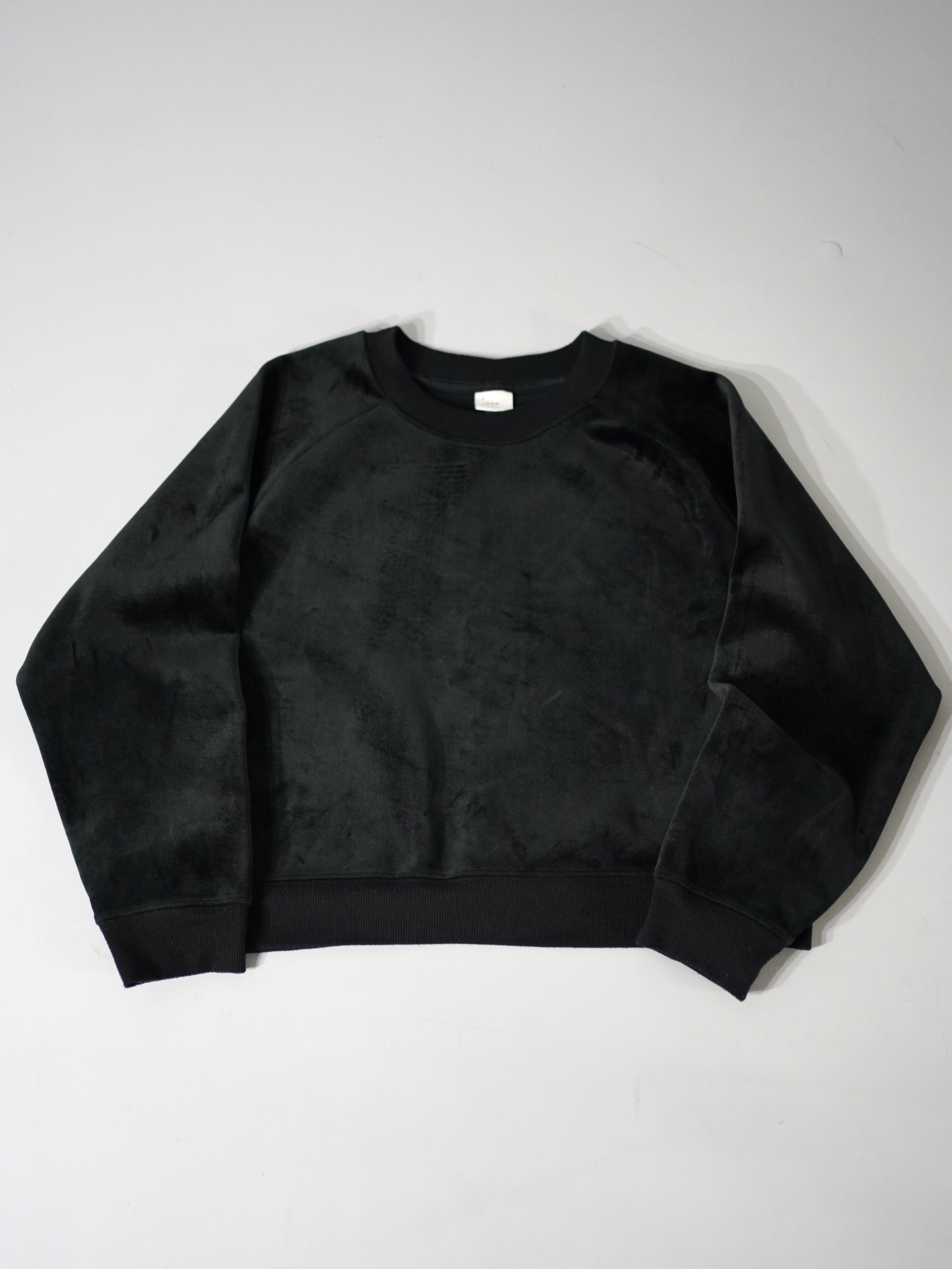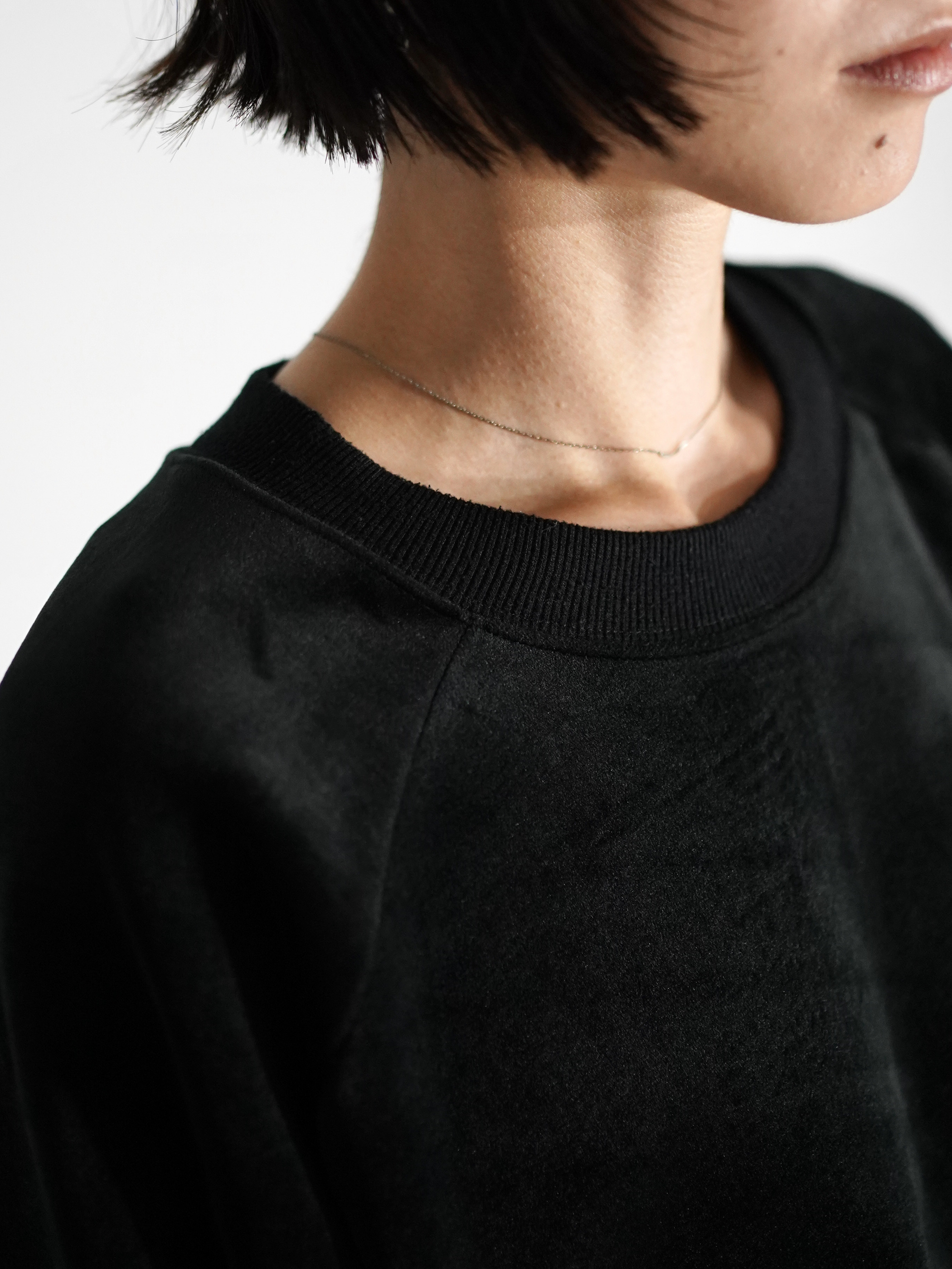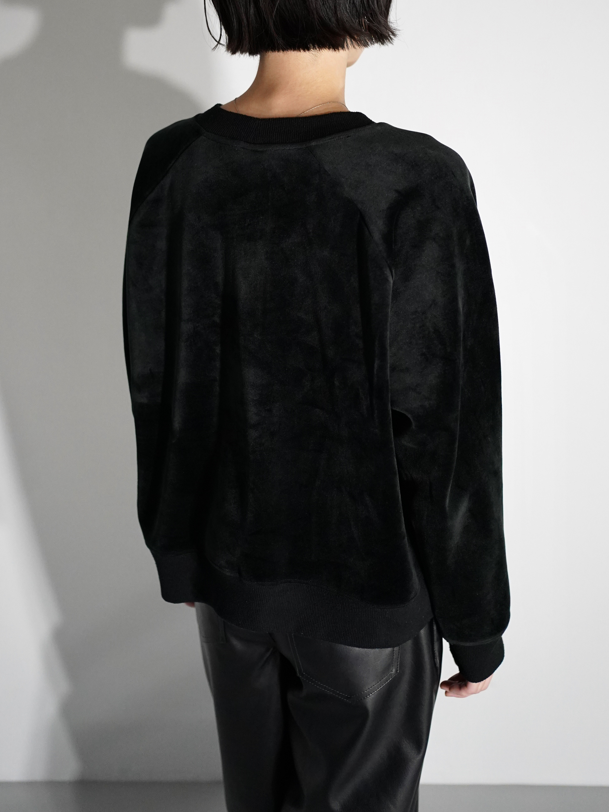単にベロア素材のスウェット型トップスではなく、身幅をワイドに、着丈を短丈にデザインしているベロアトップス