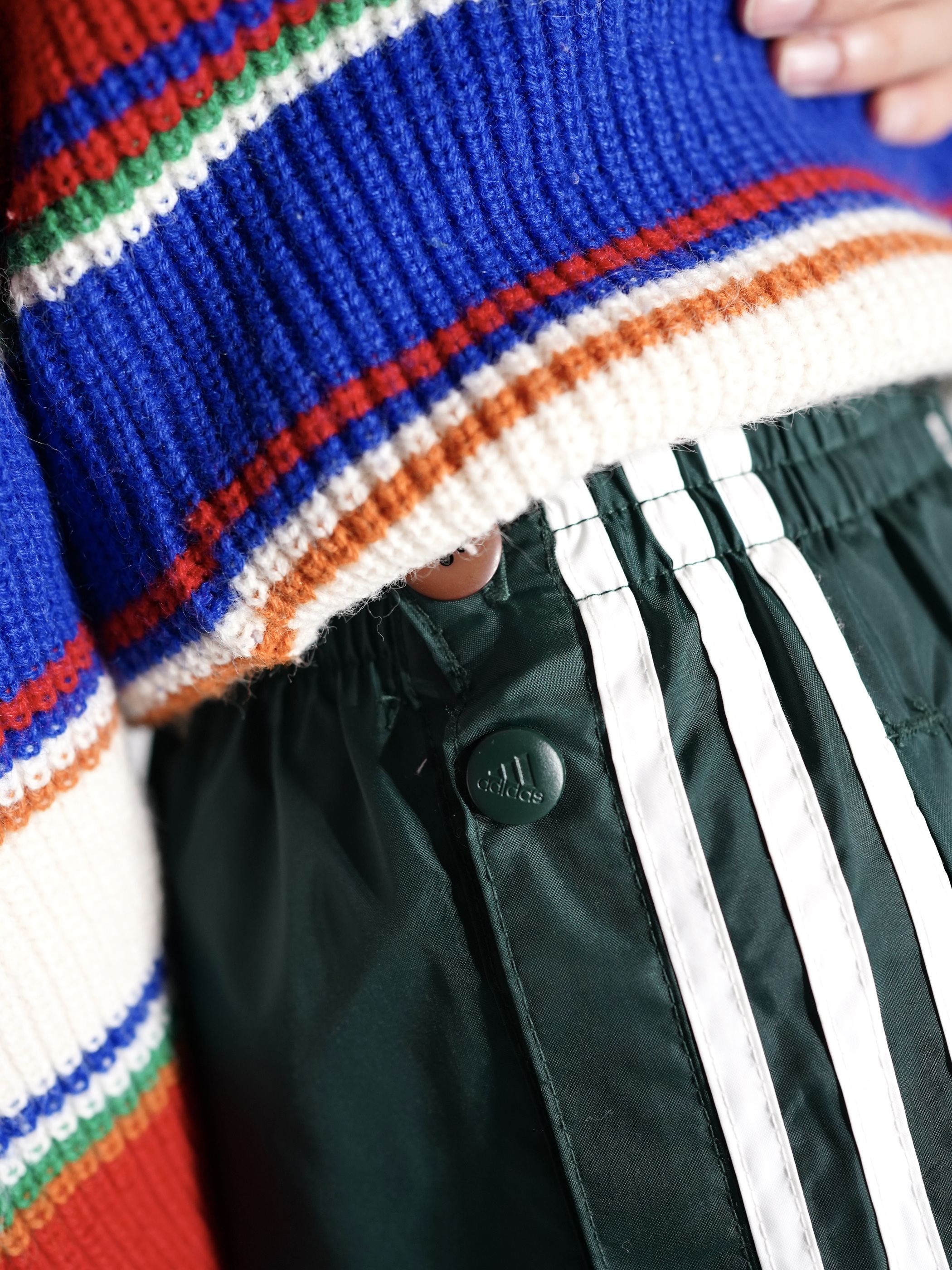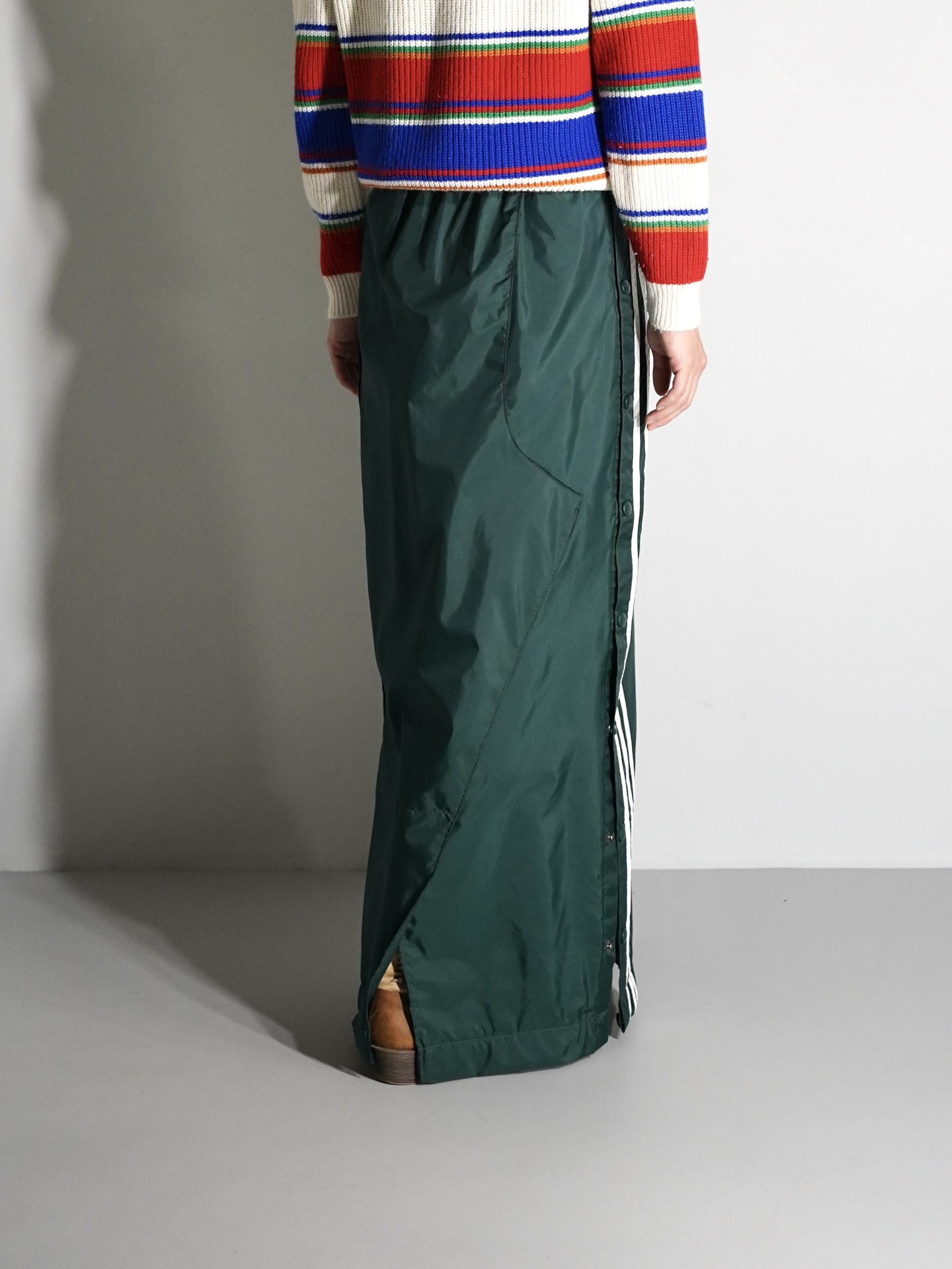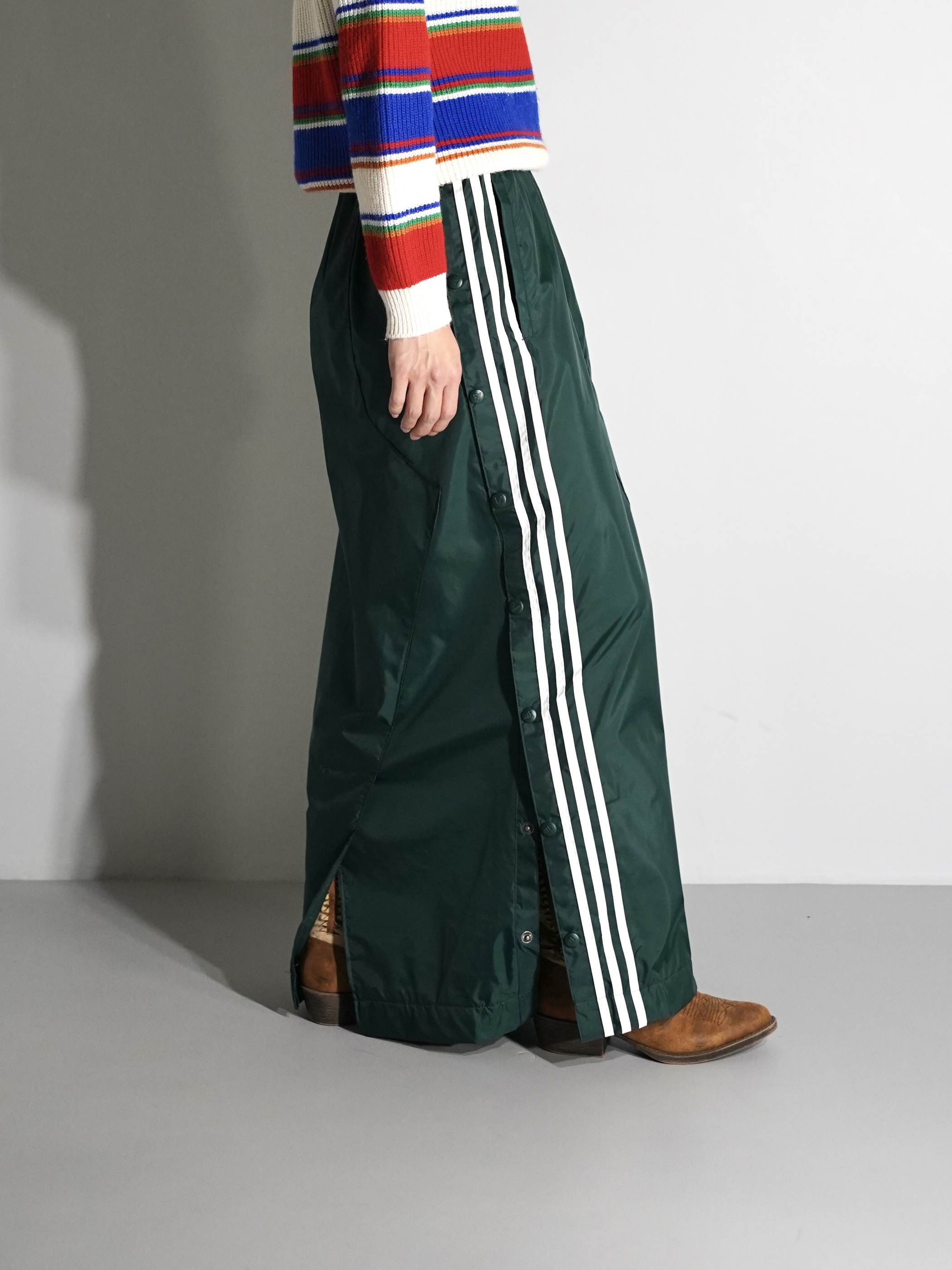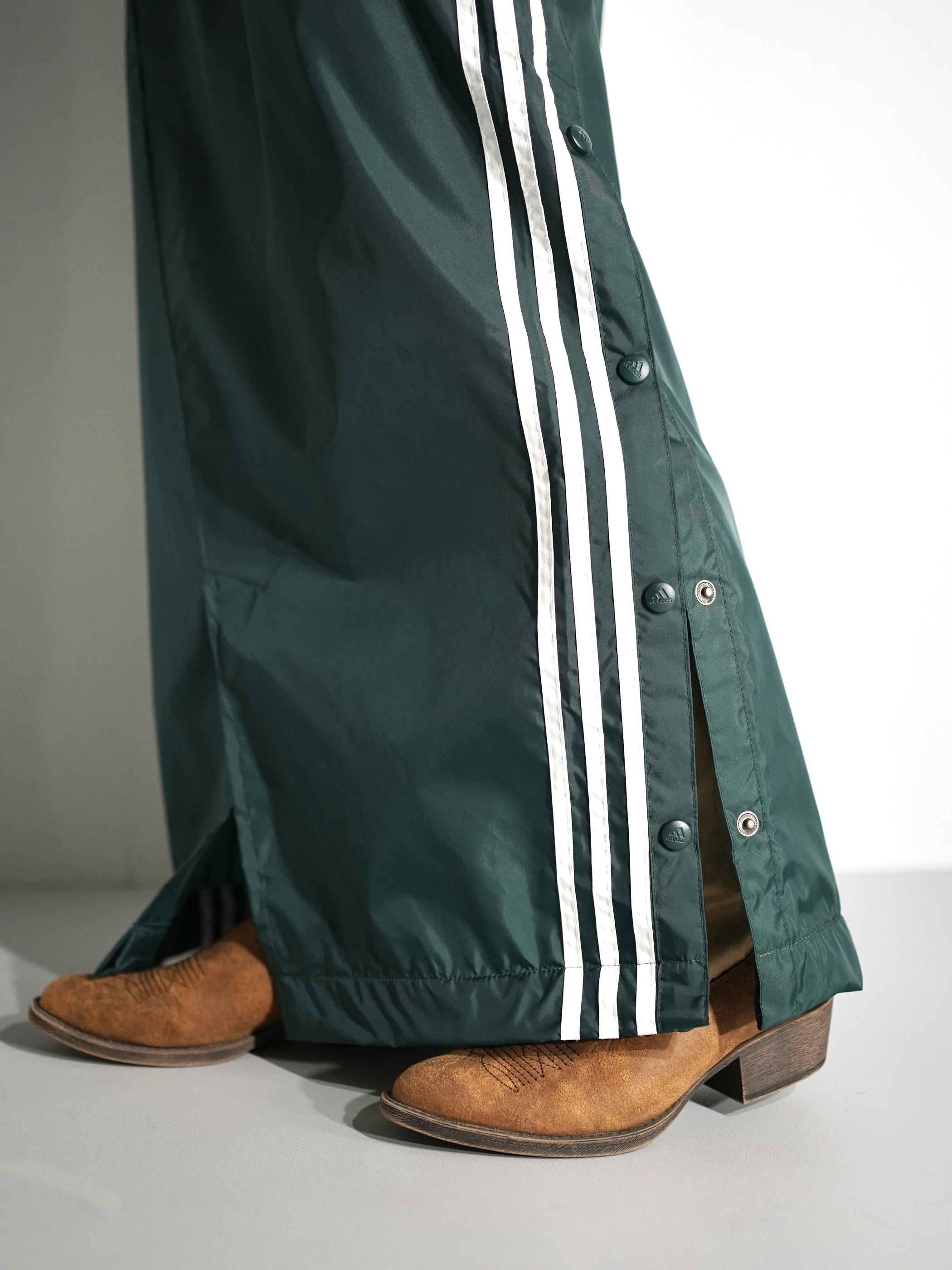 サイドラインの横には上部まで開くサイドスナップ(ロゴ入り)