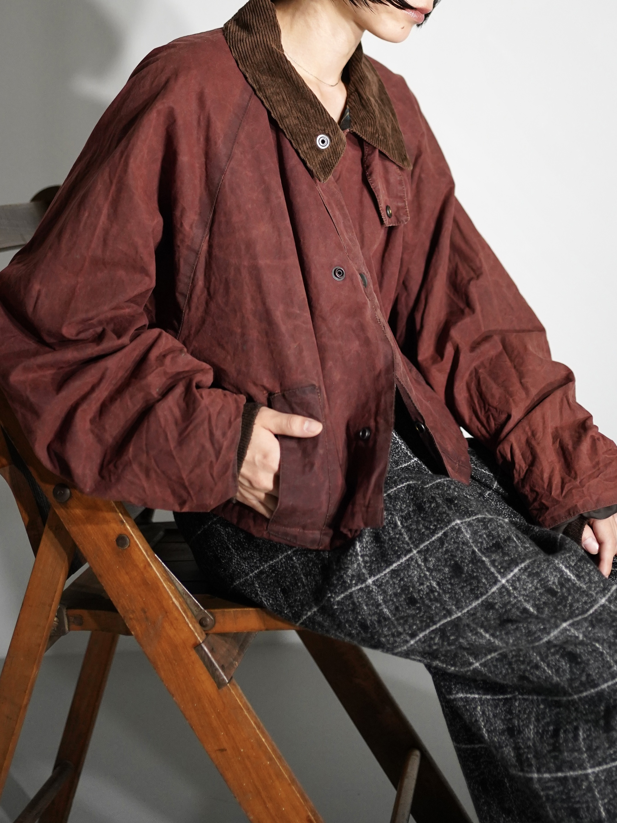 ボディは深みのあるボルドー、襟はブラウンのコーデュロイの秋らしい良配色