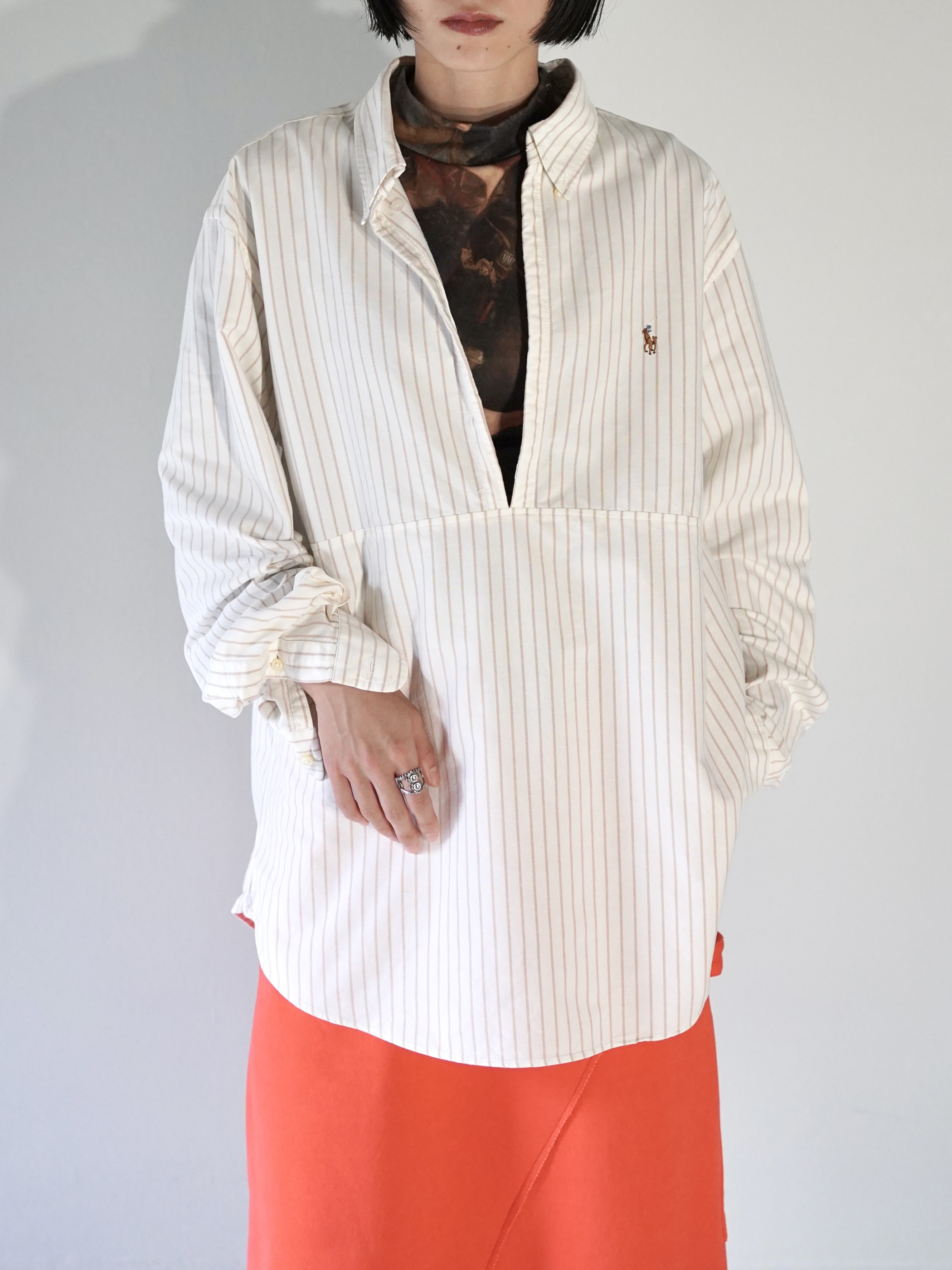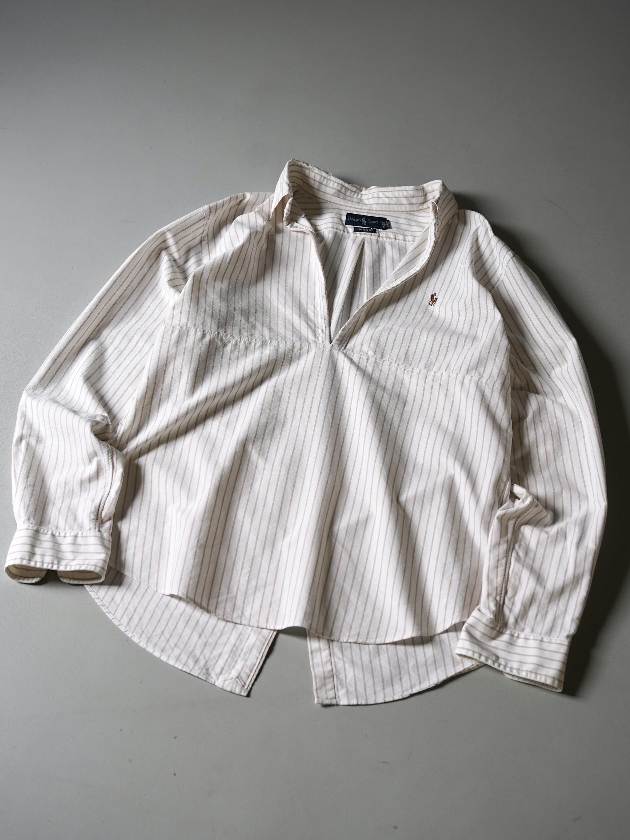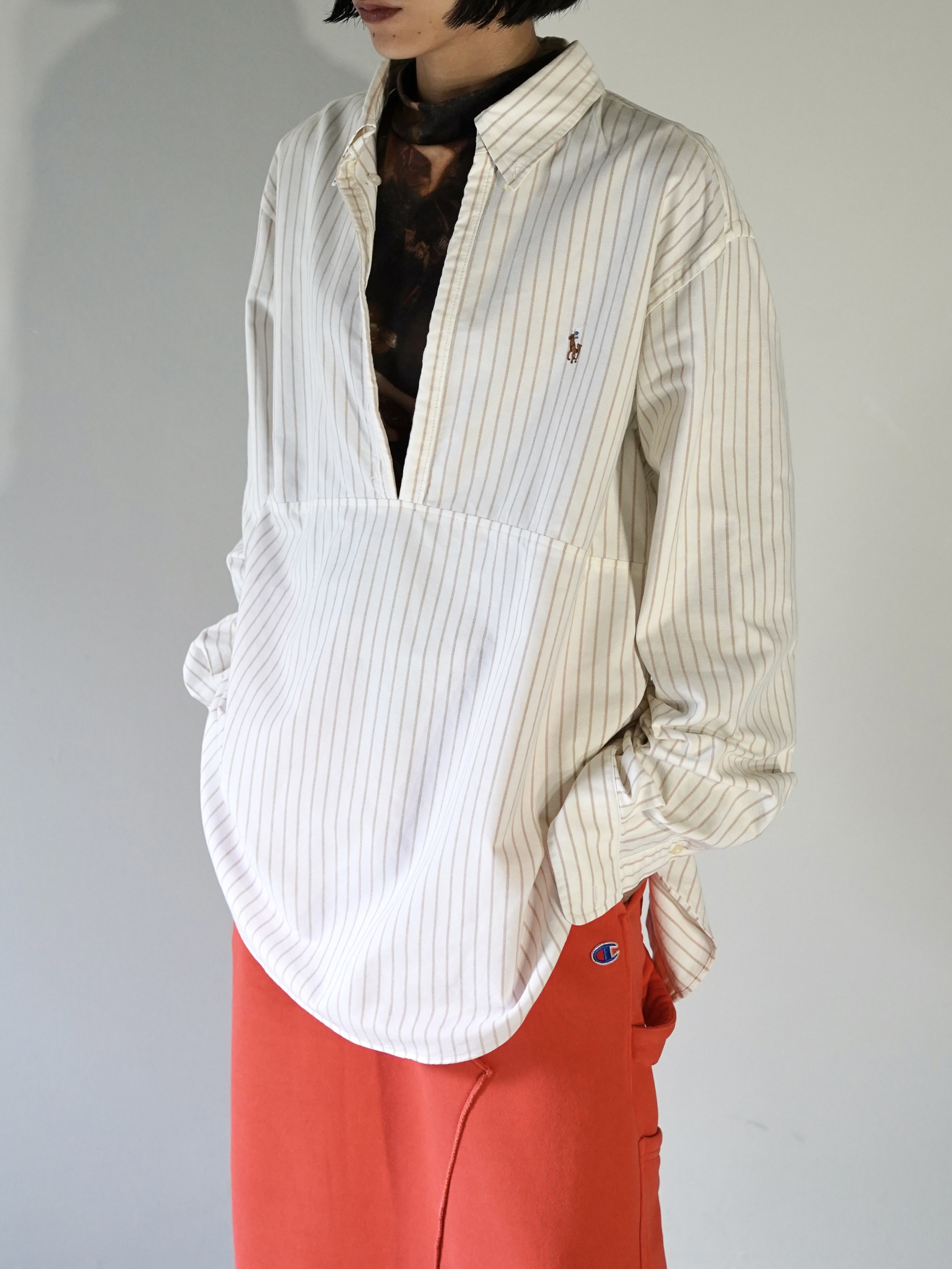 Ralph Laurenのストライプシャツをプルオーバータイプへカスタム