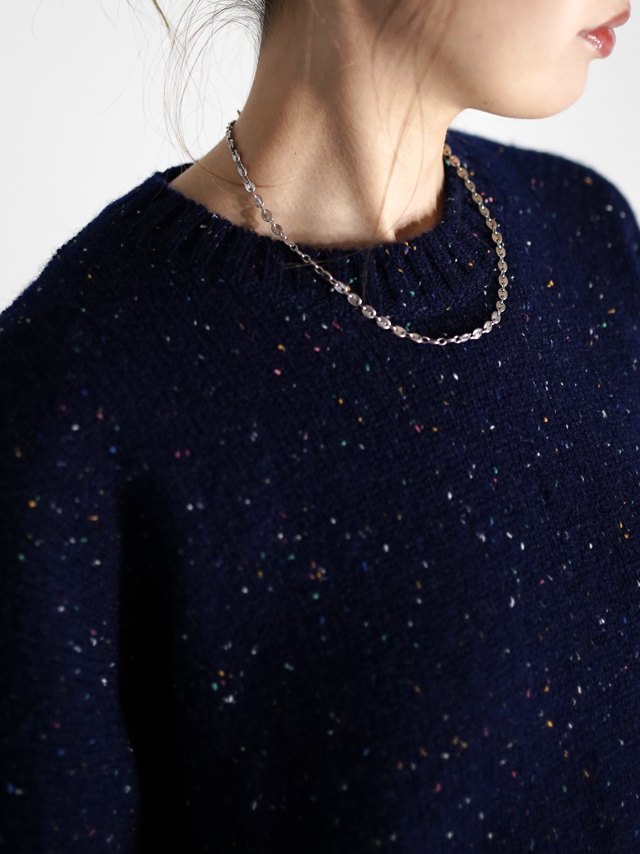 Navyベースに多色のネップを散らしたダンヒルのウールニット