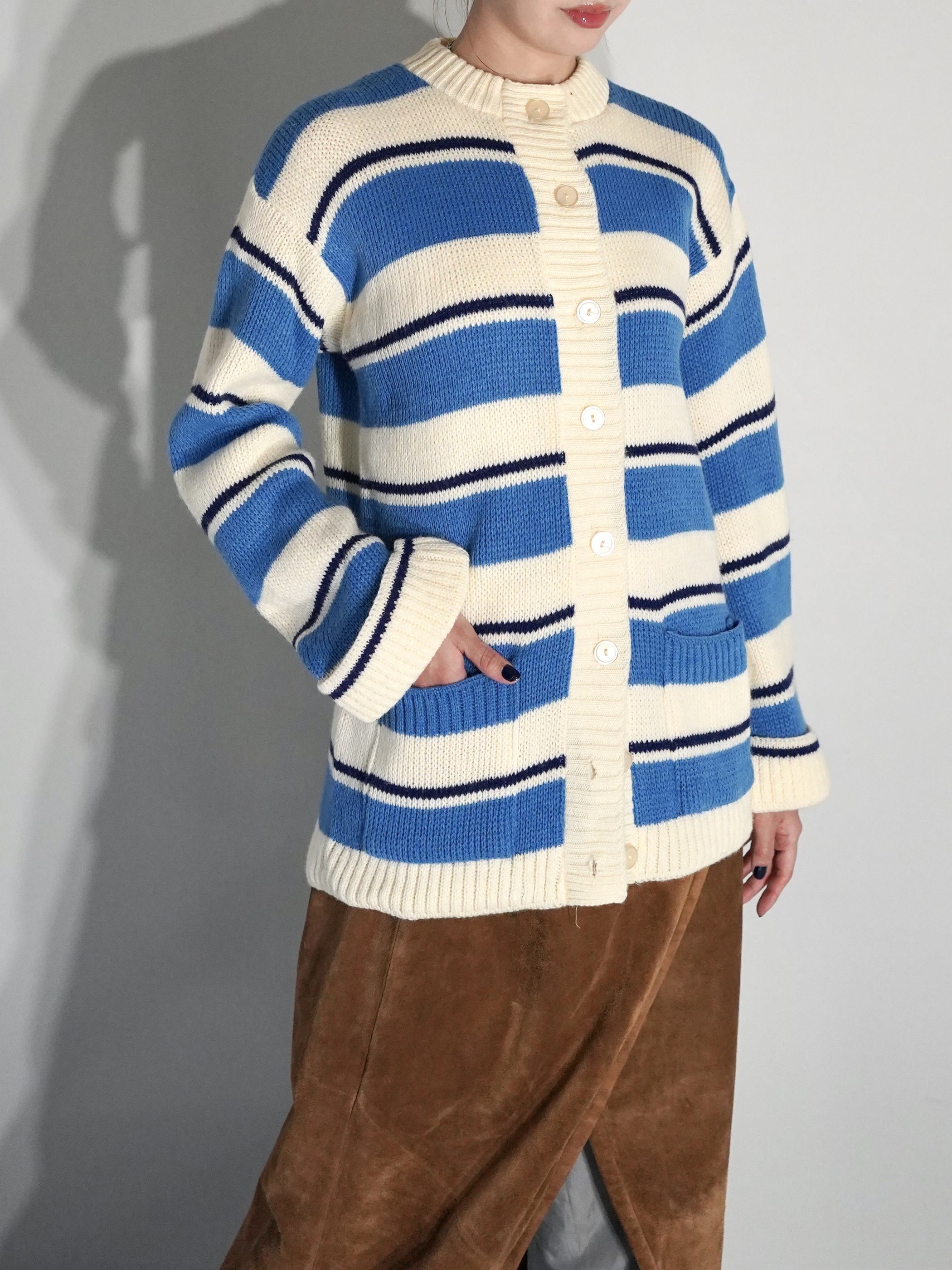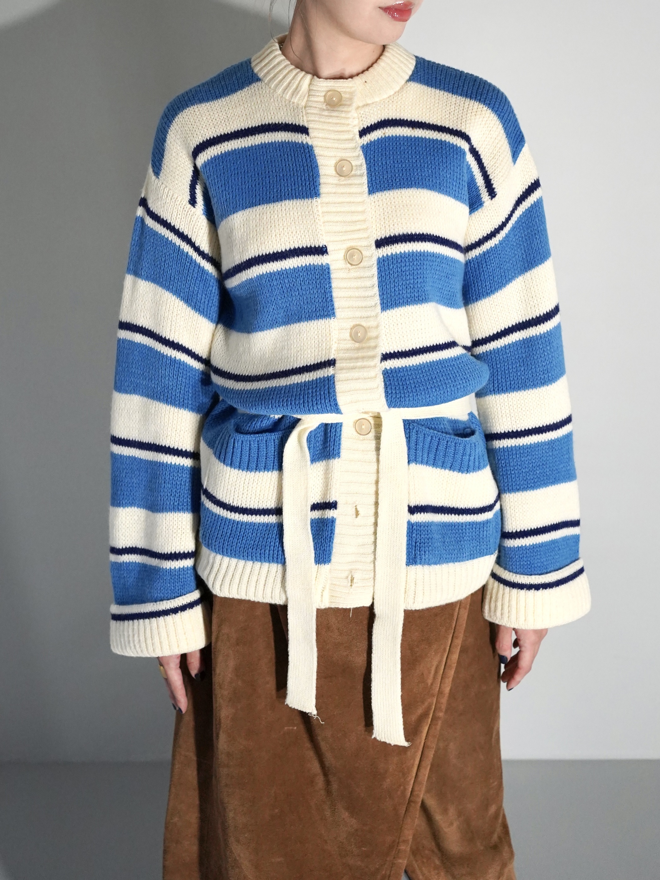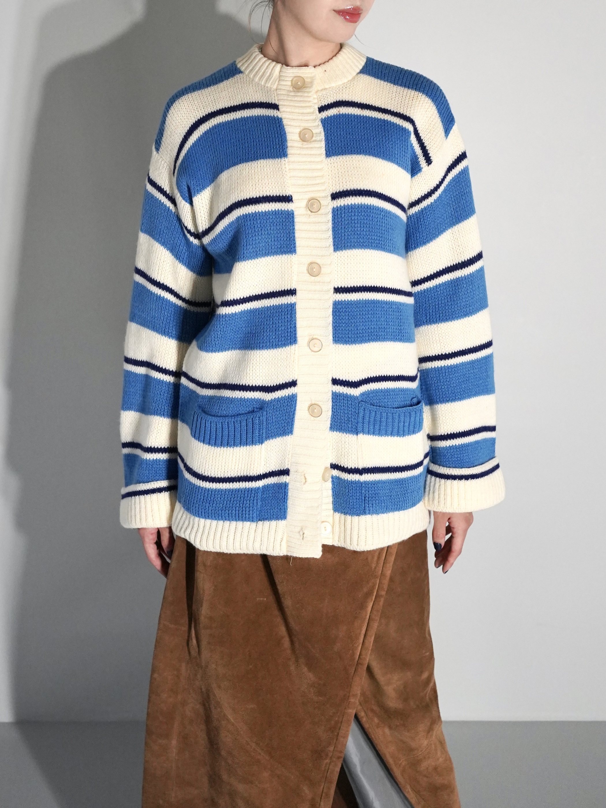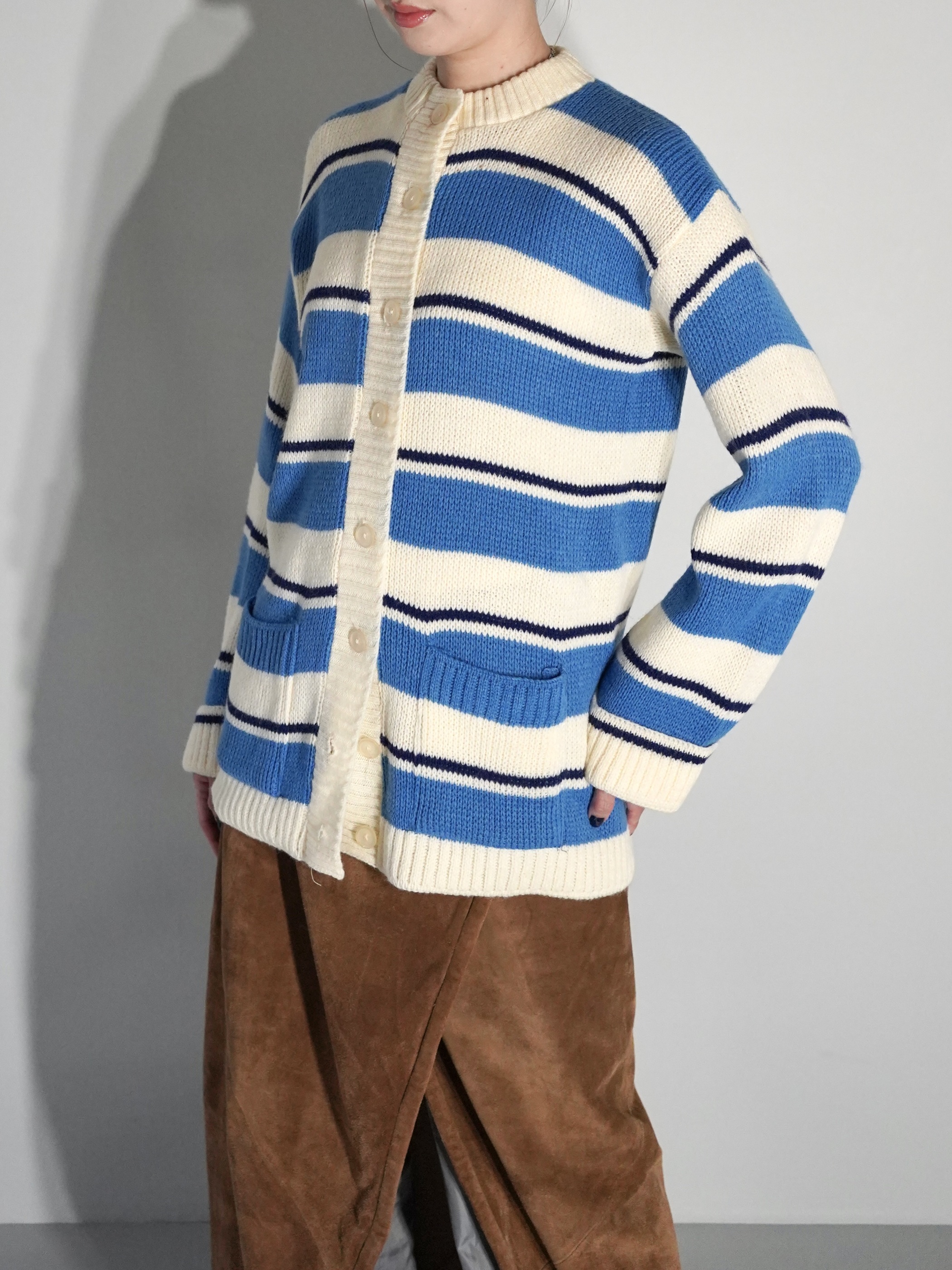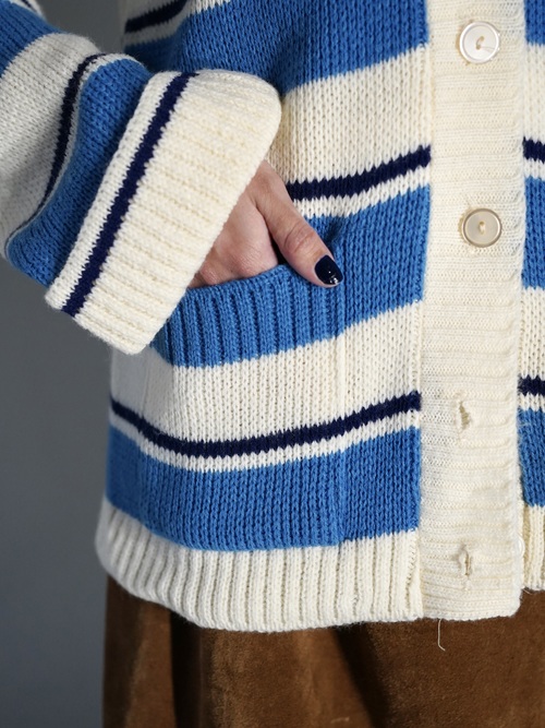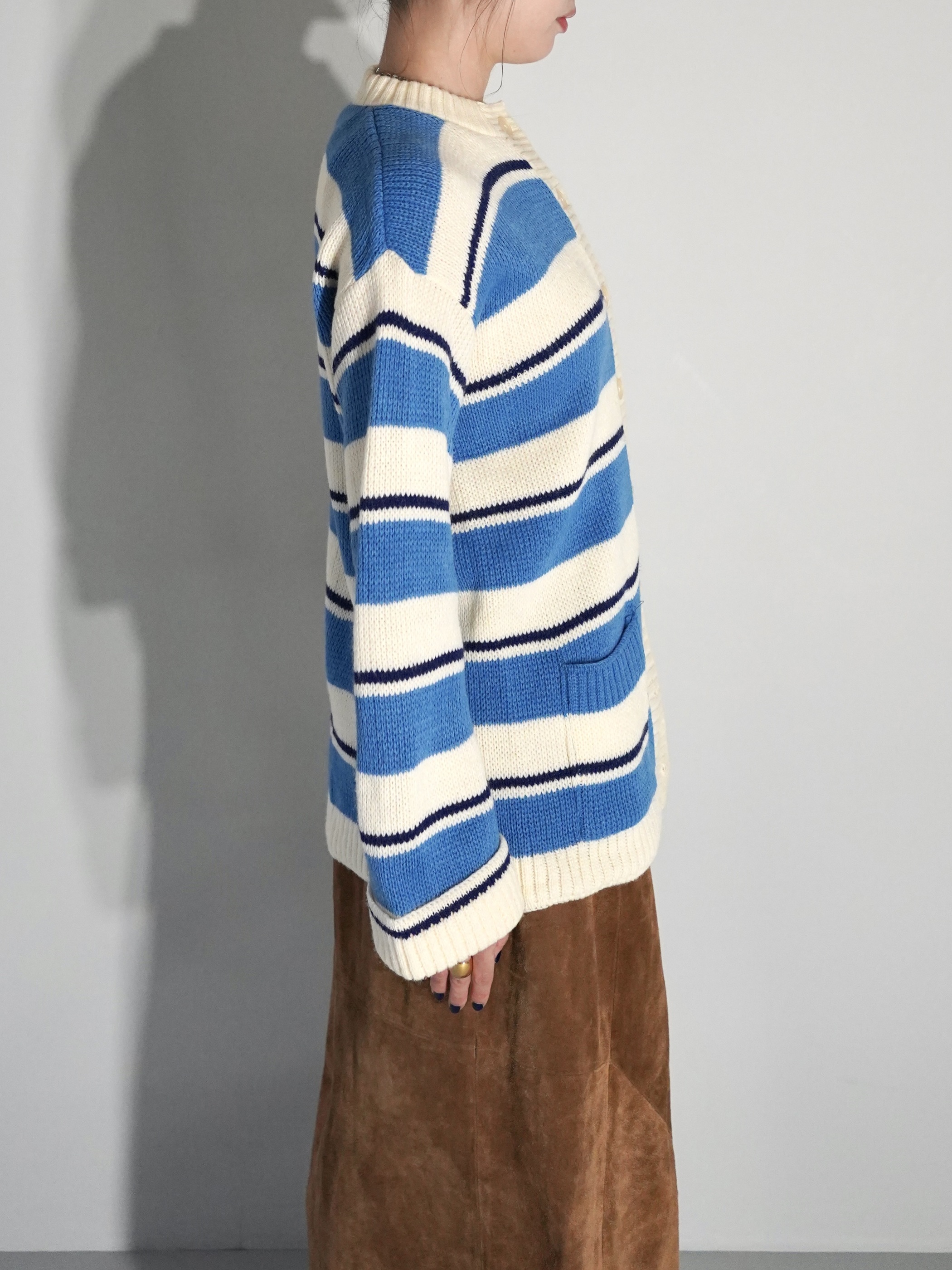爽やかなブルー×ホワイトのボーダーニットカーディガン