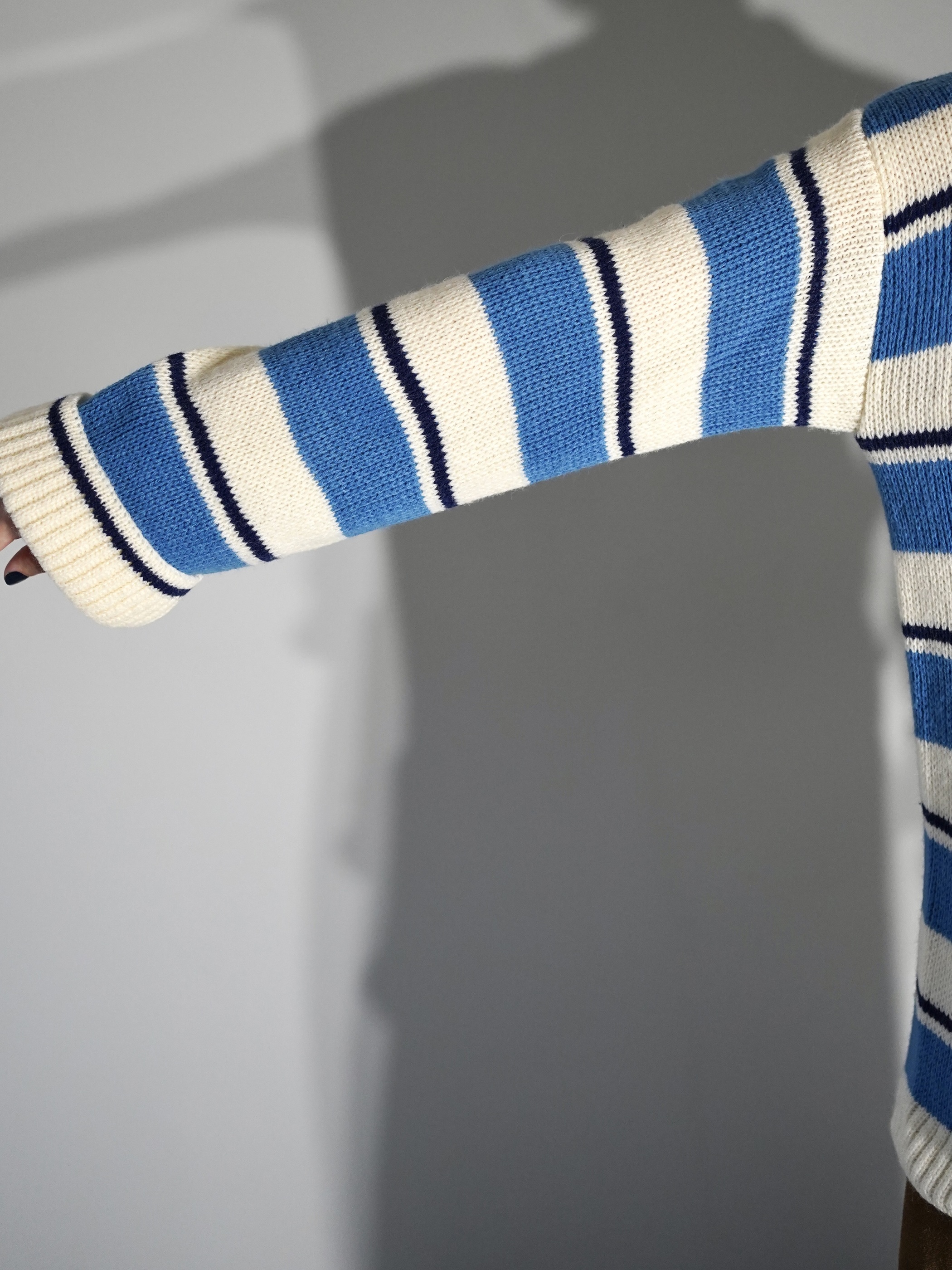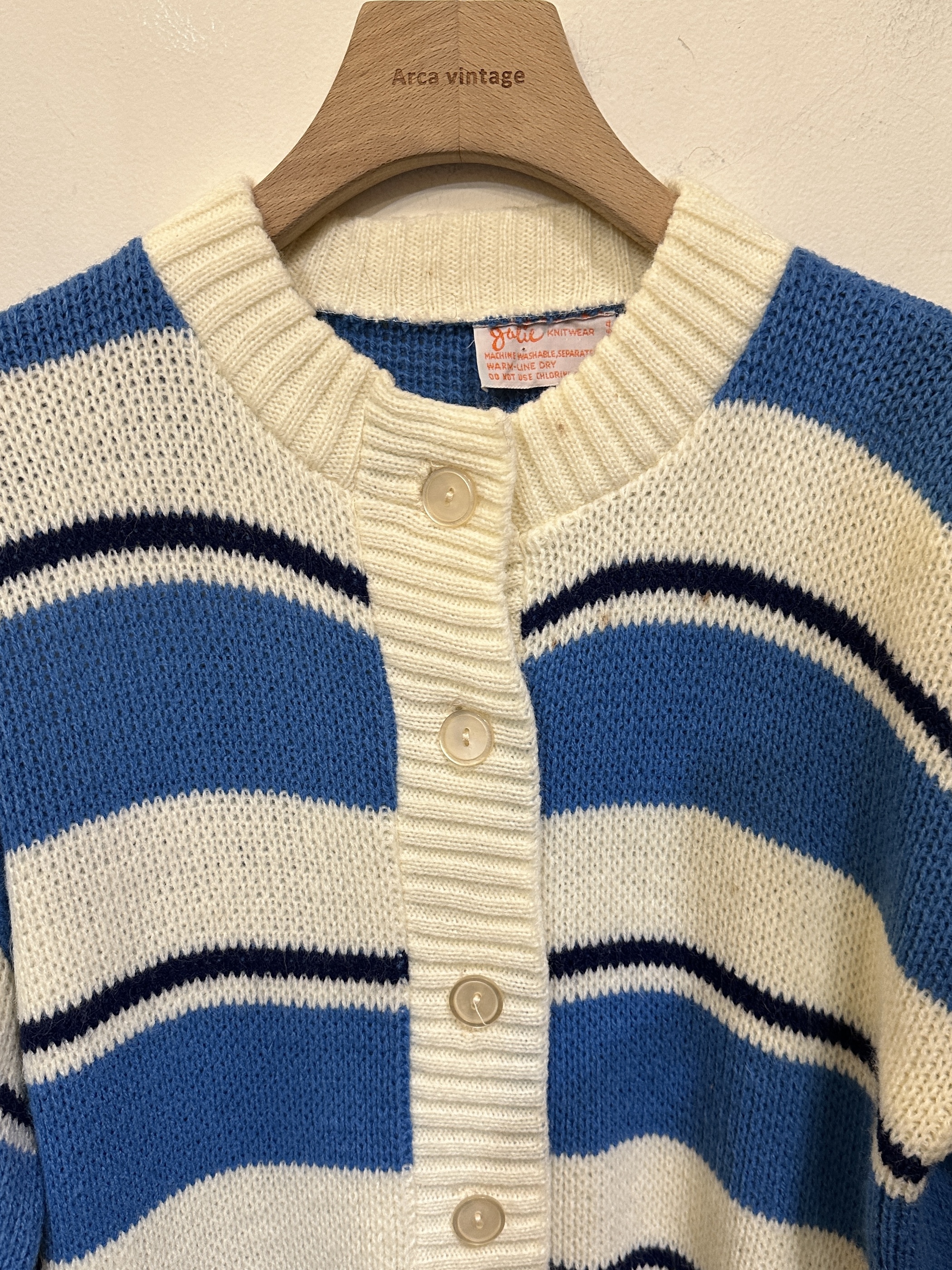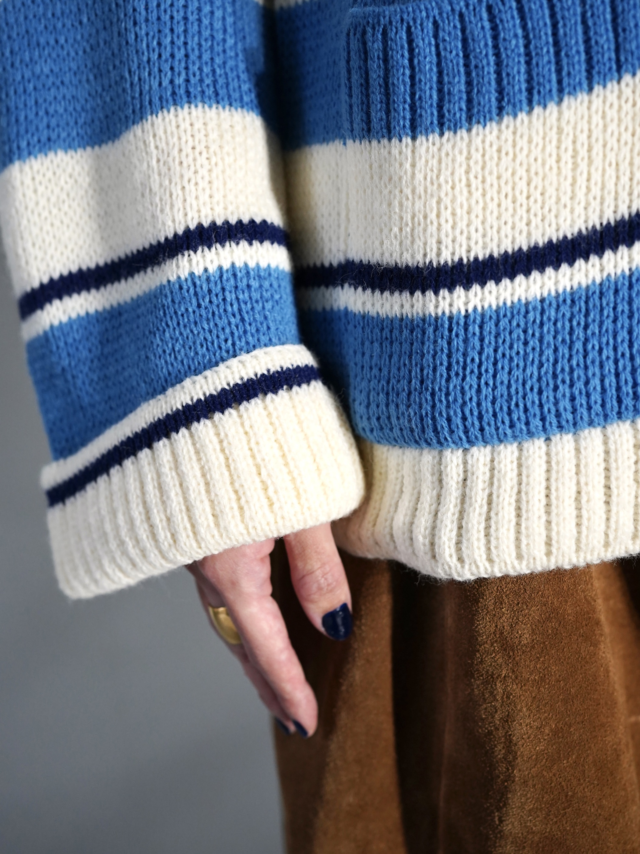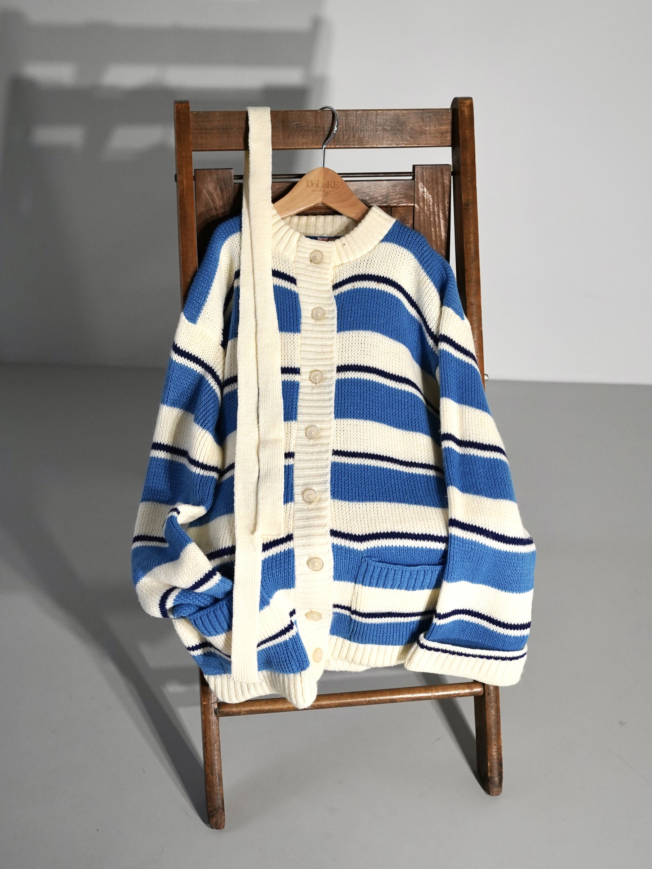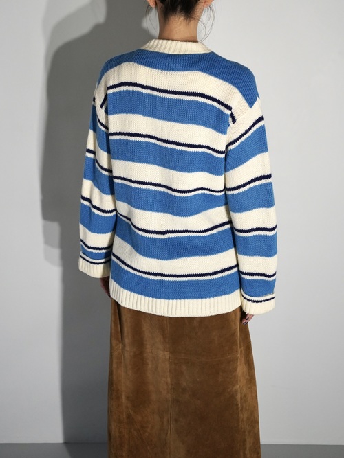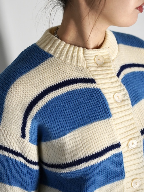 爽やかなブルー×ホワイトのボーダーニットカーディガン