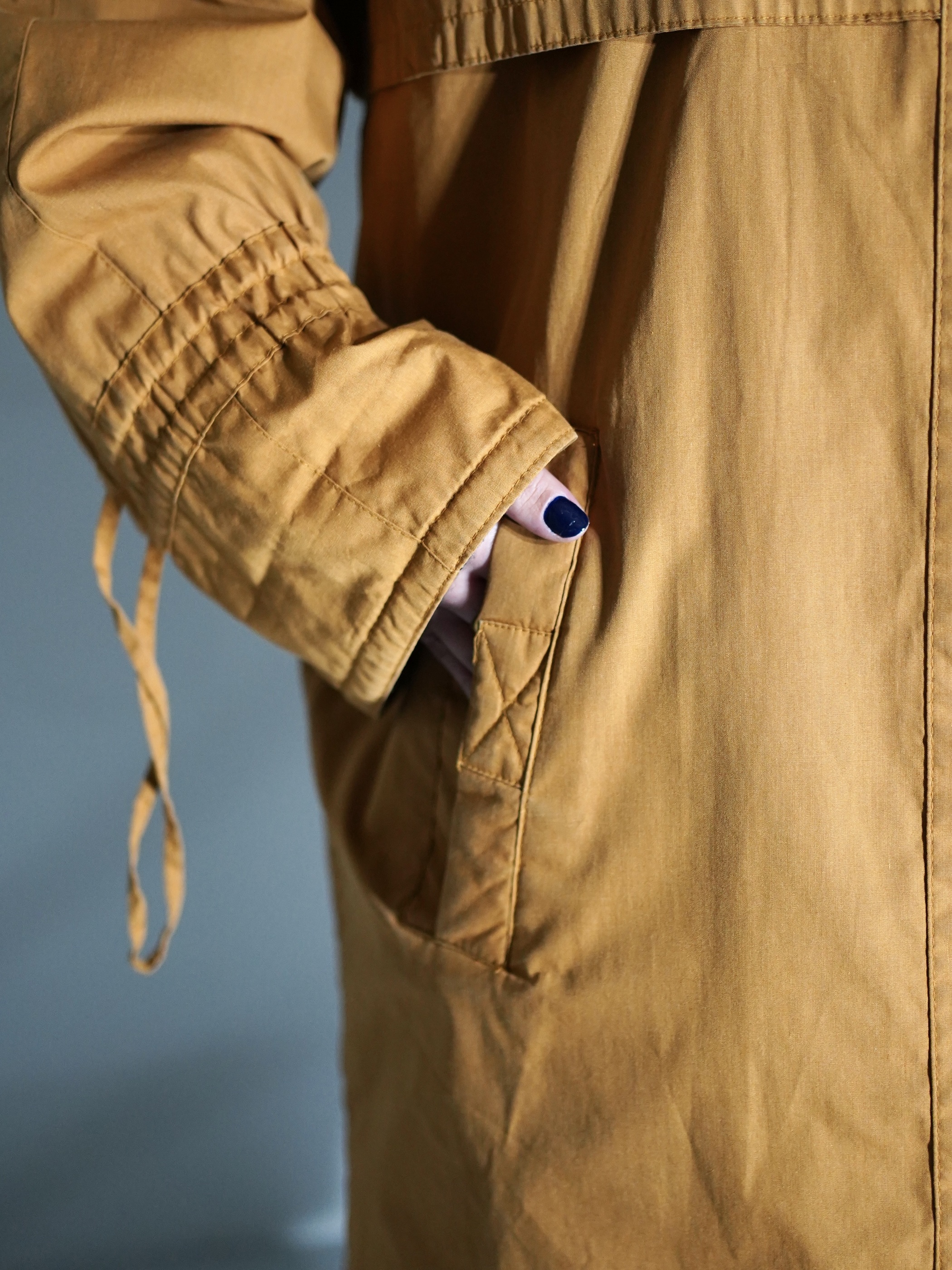 袖口、襟にドローコード忍ばせ、風よけ防止のデザインがそのままギミック感あるディテールに変身
