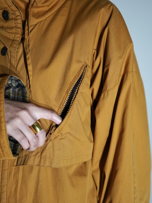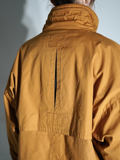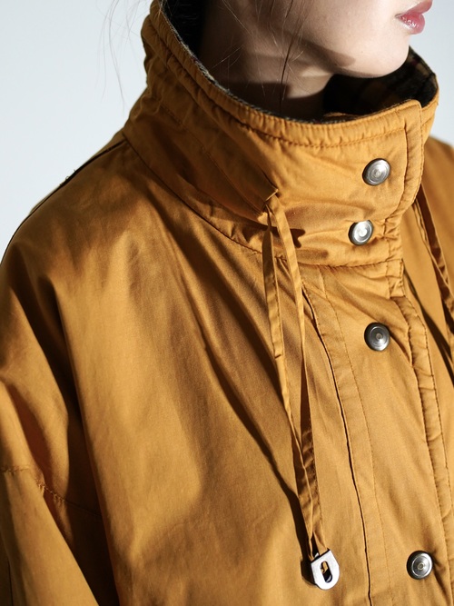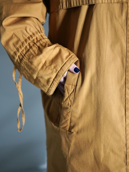 ハンティングウェアのディテールを多く兼ね備え、それらのデザインを落とし込んだ中綿コート