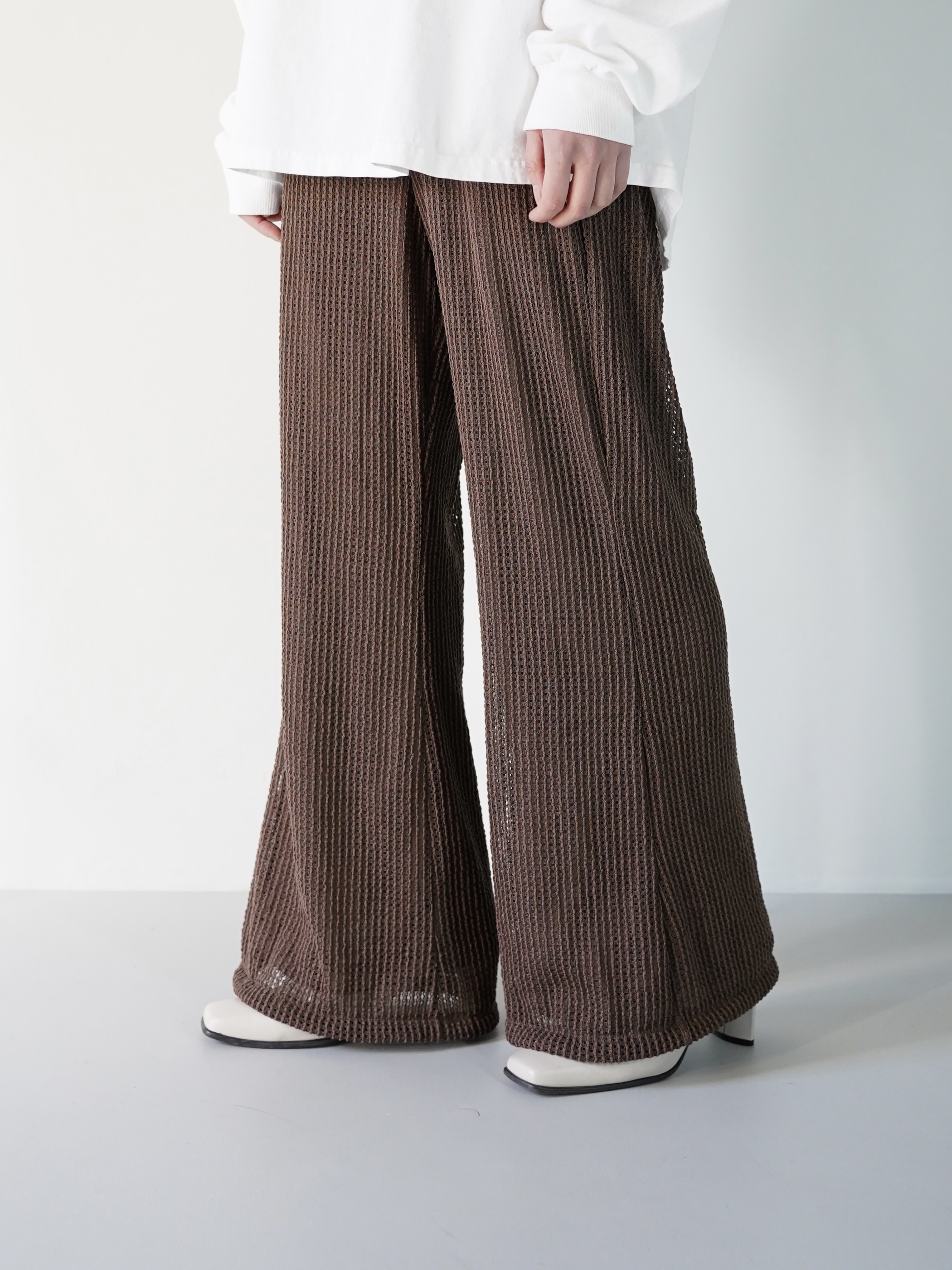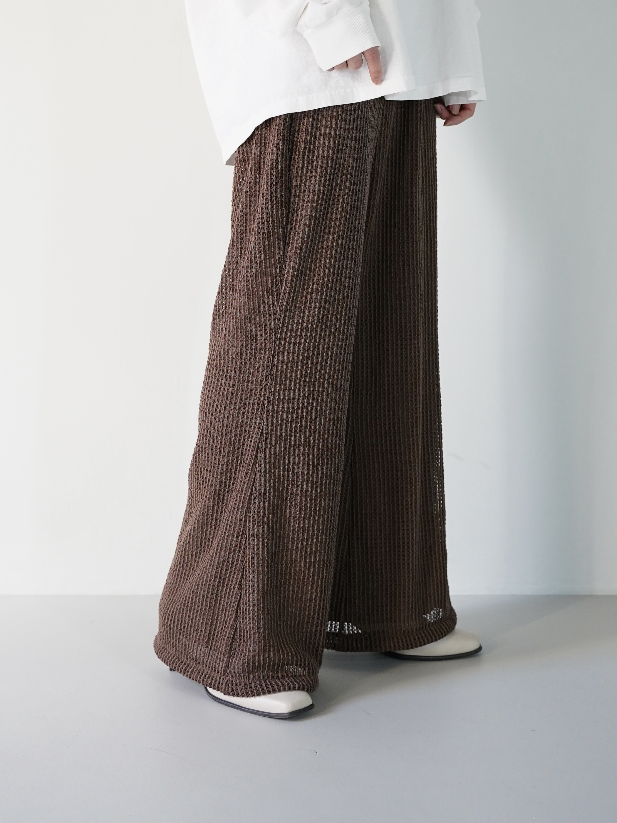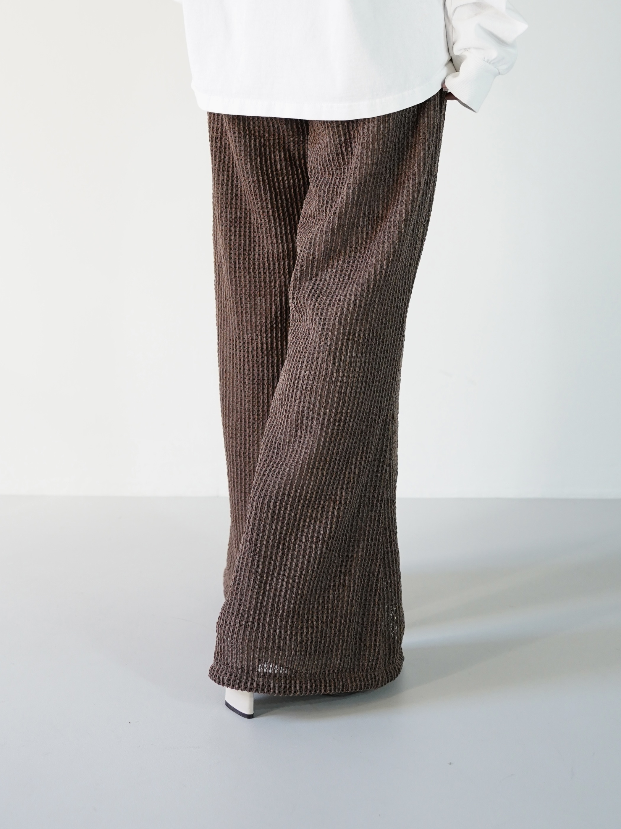 サラッとしたシーズンレスで履けるメッシュ状のニッティングパンツ