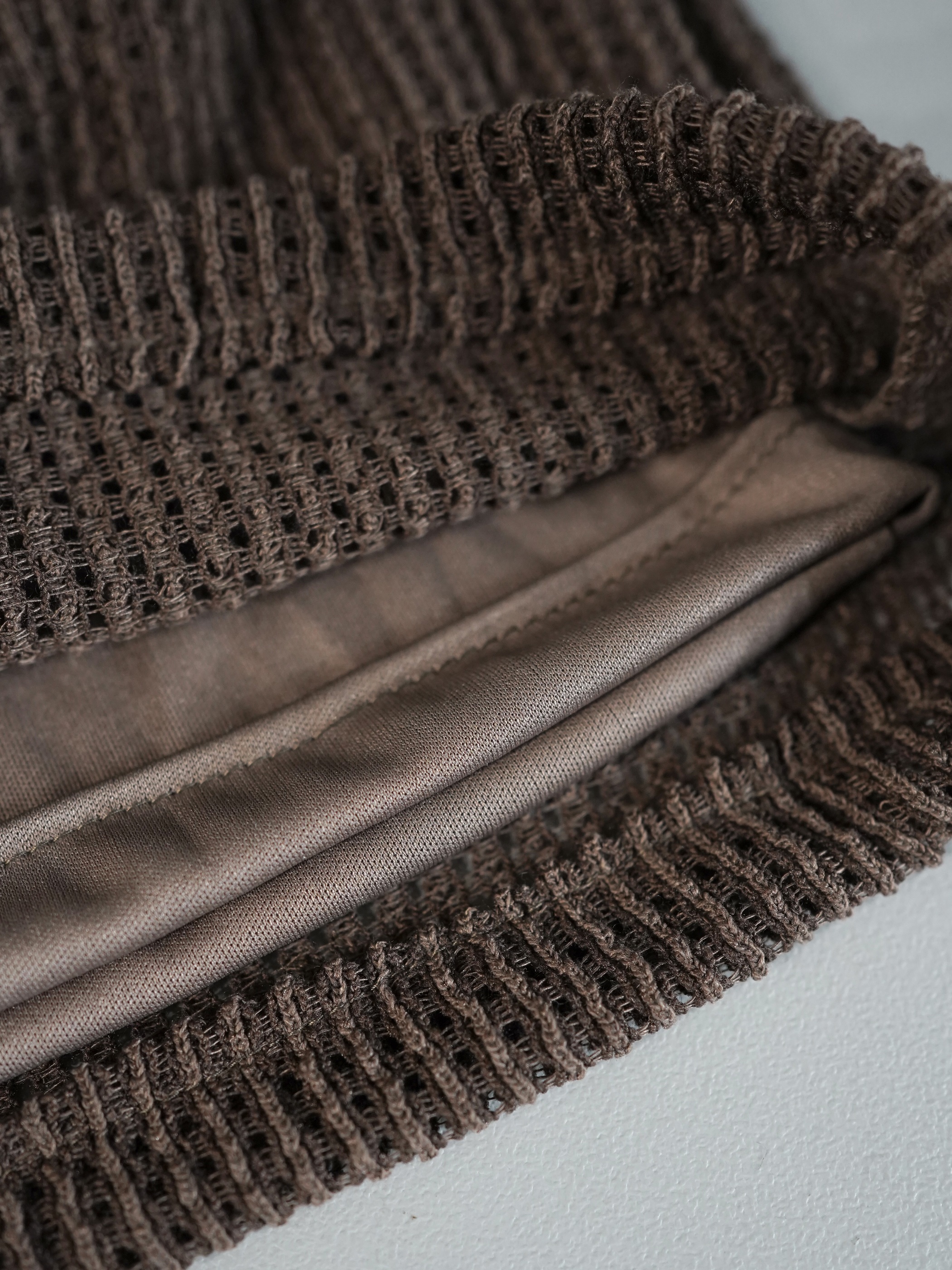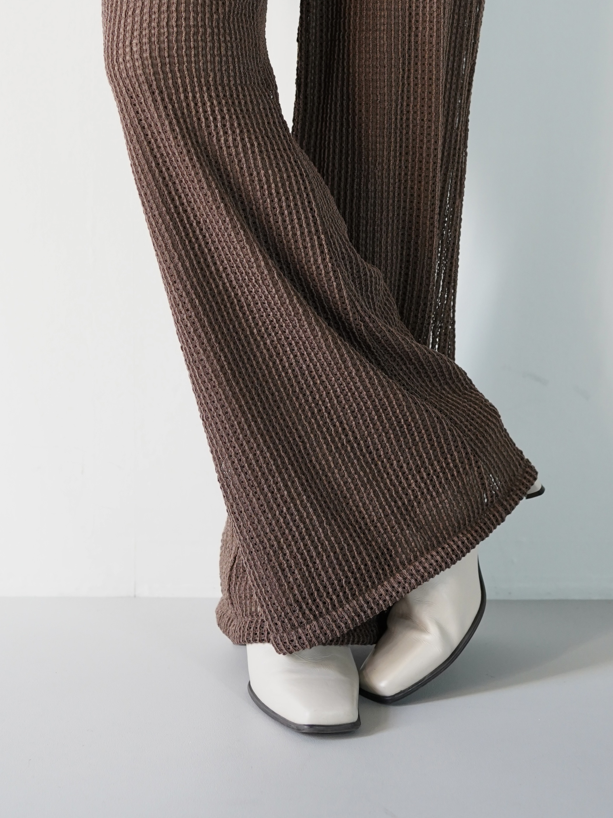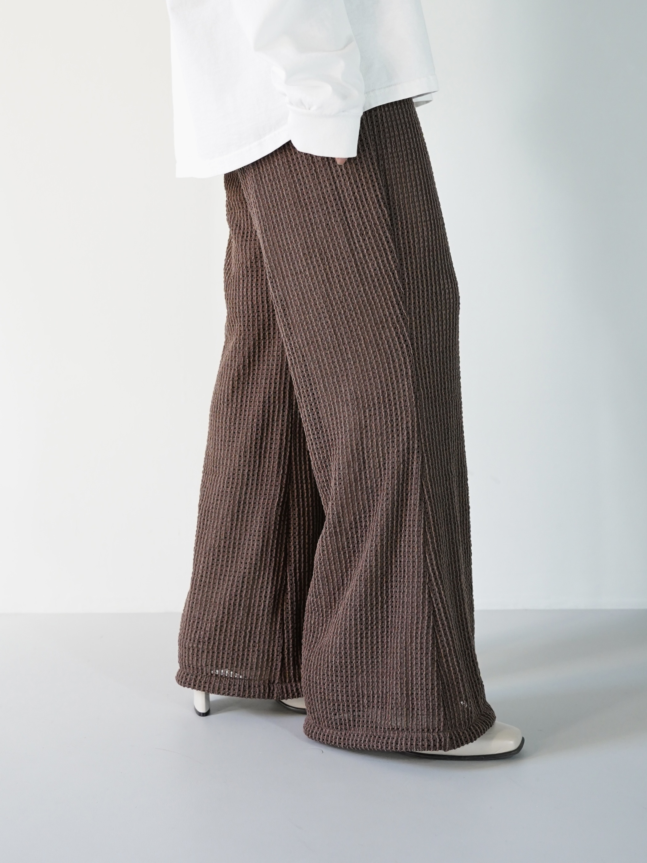 サラッとしたシーズンレスで履けるメッシュ状のニッティングパンツ