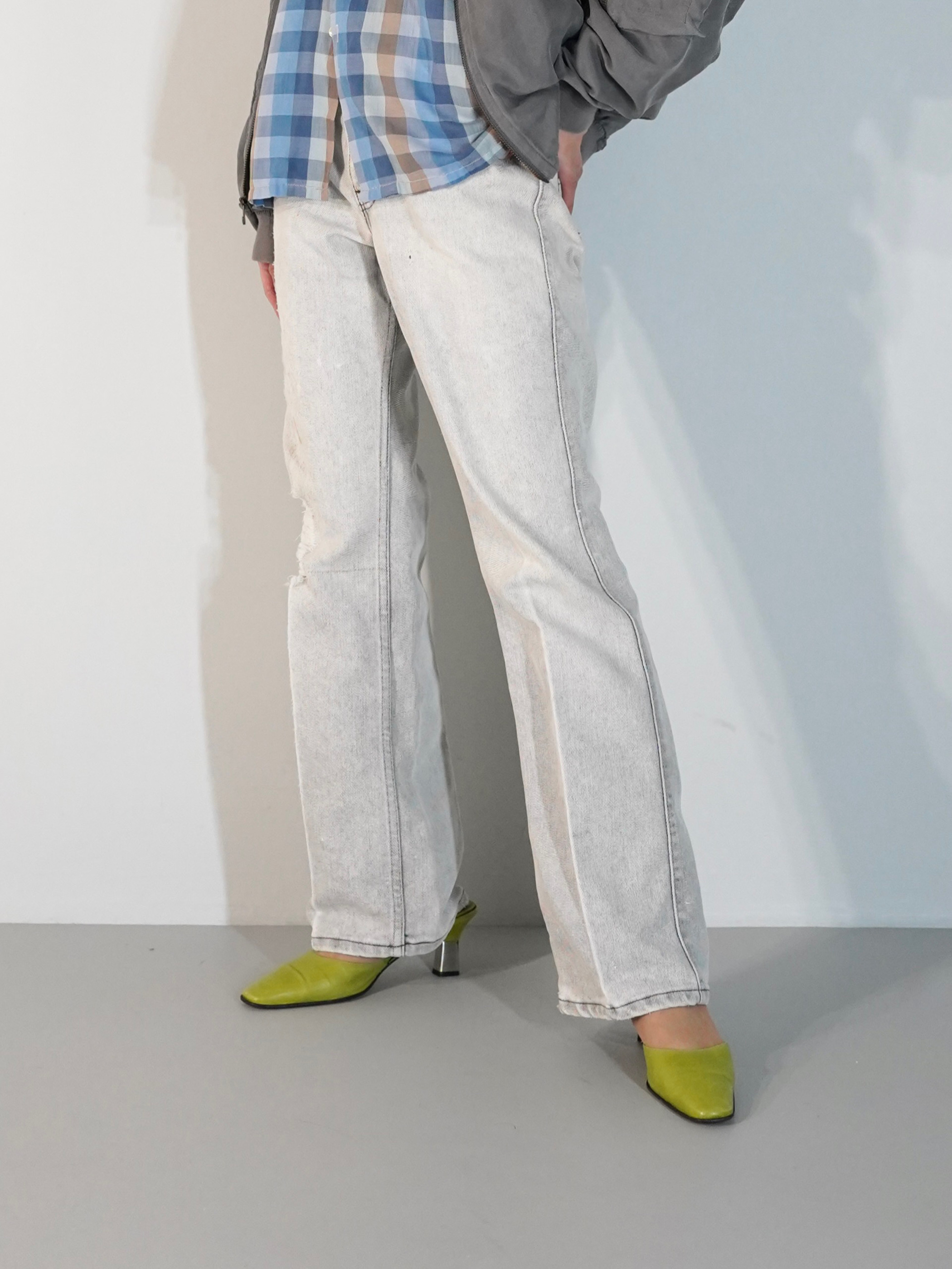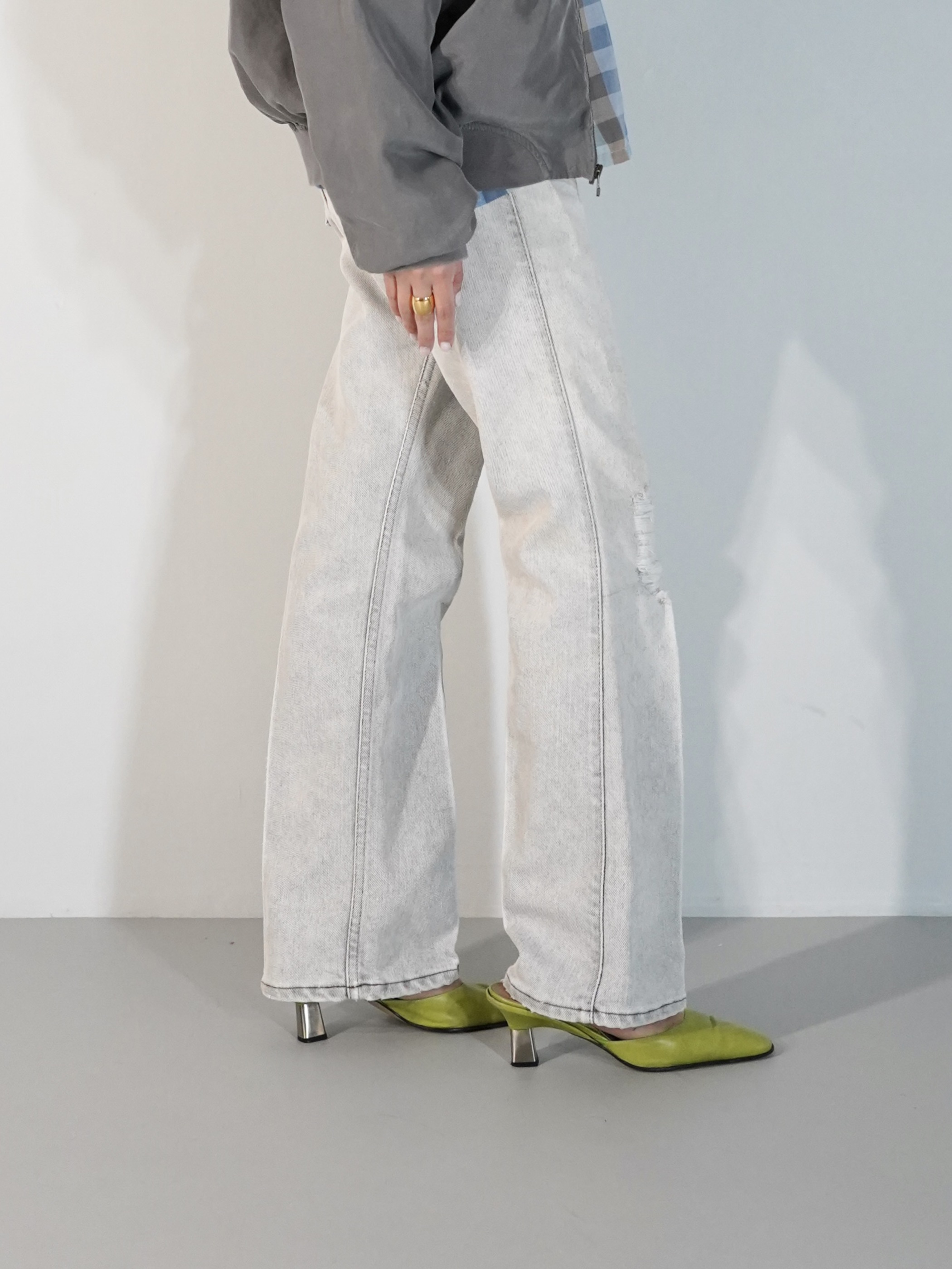 ウエスタンシャツなど合わせてデニムの形を最大限に引き出す履き方も良いですし、オーバースウェットに1アクセントでミニスカートなど挟んでも良さそう。