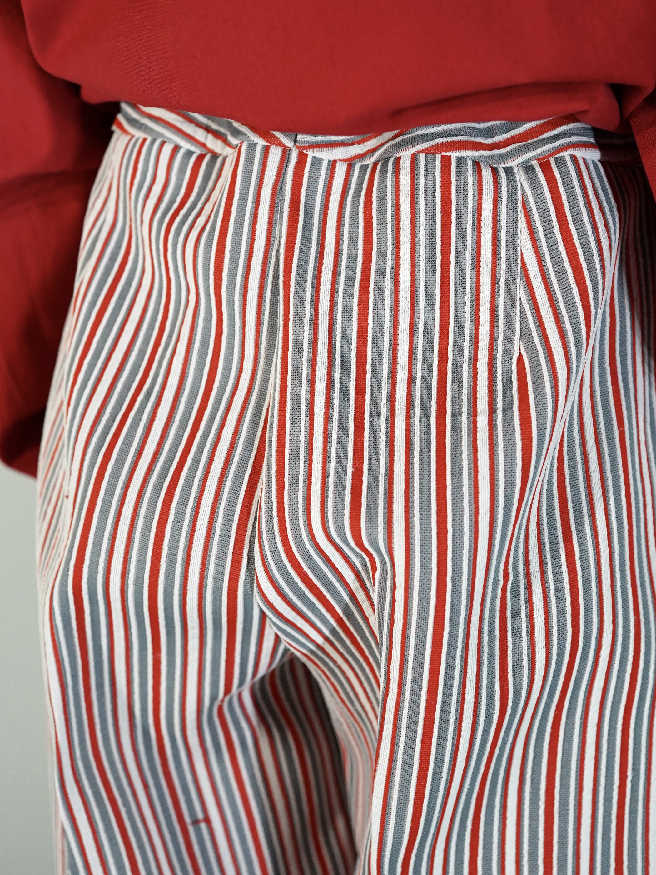 2トーンのメリハリあるピッチで連なったストライプ柄