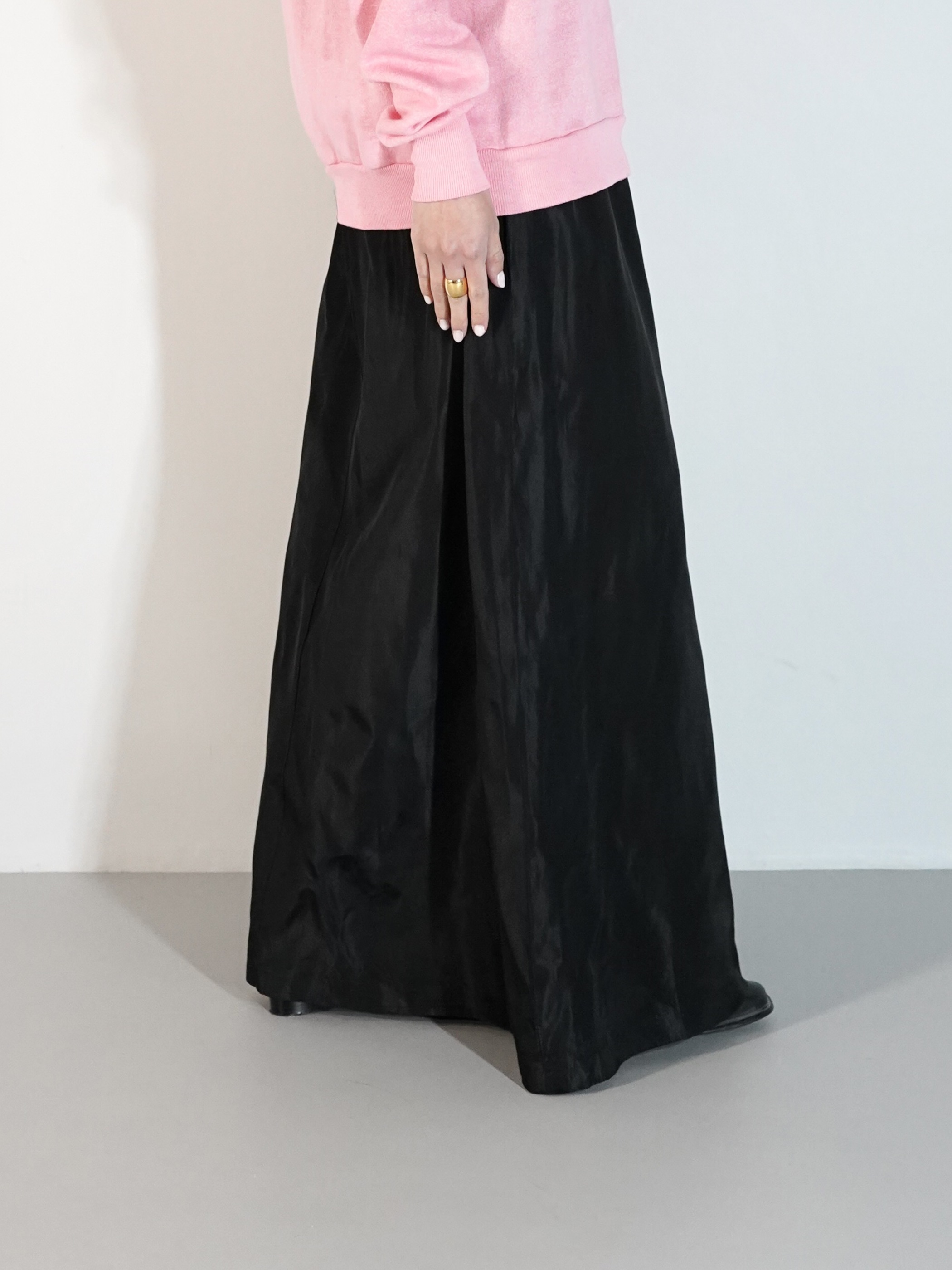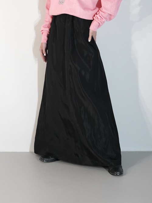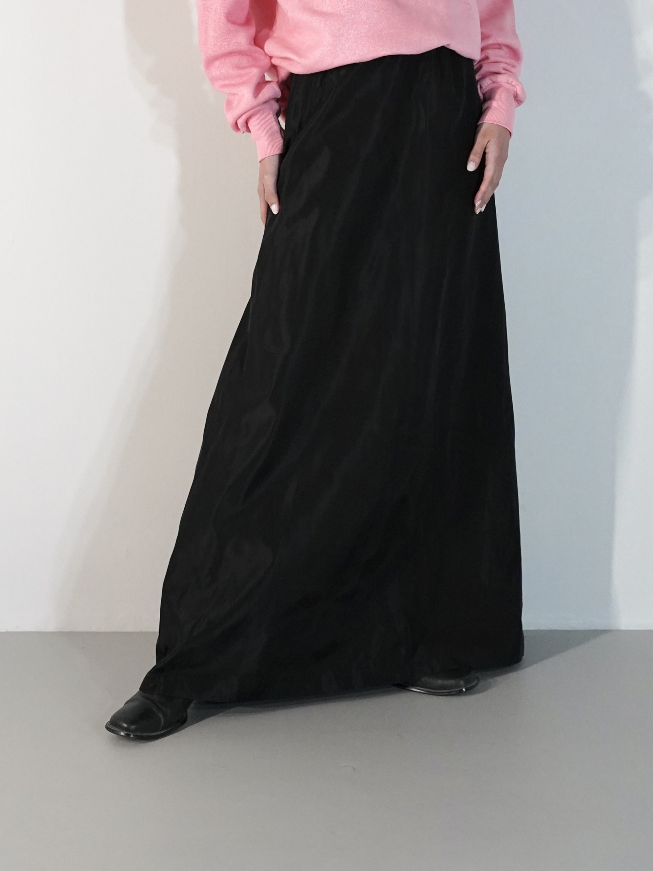シャカシャカとした光沢のあるアセテート素材のスカート。