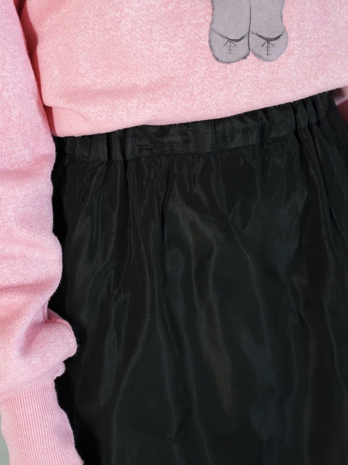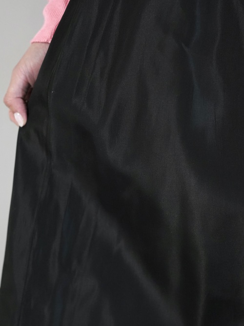 フレアがかったシルエット、使い易い黒なのでどんなアイテムとも合わせやすく1枚あると重宝する1着。