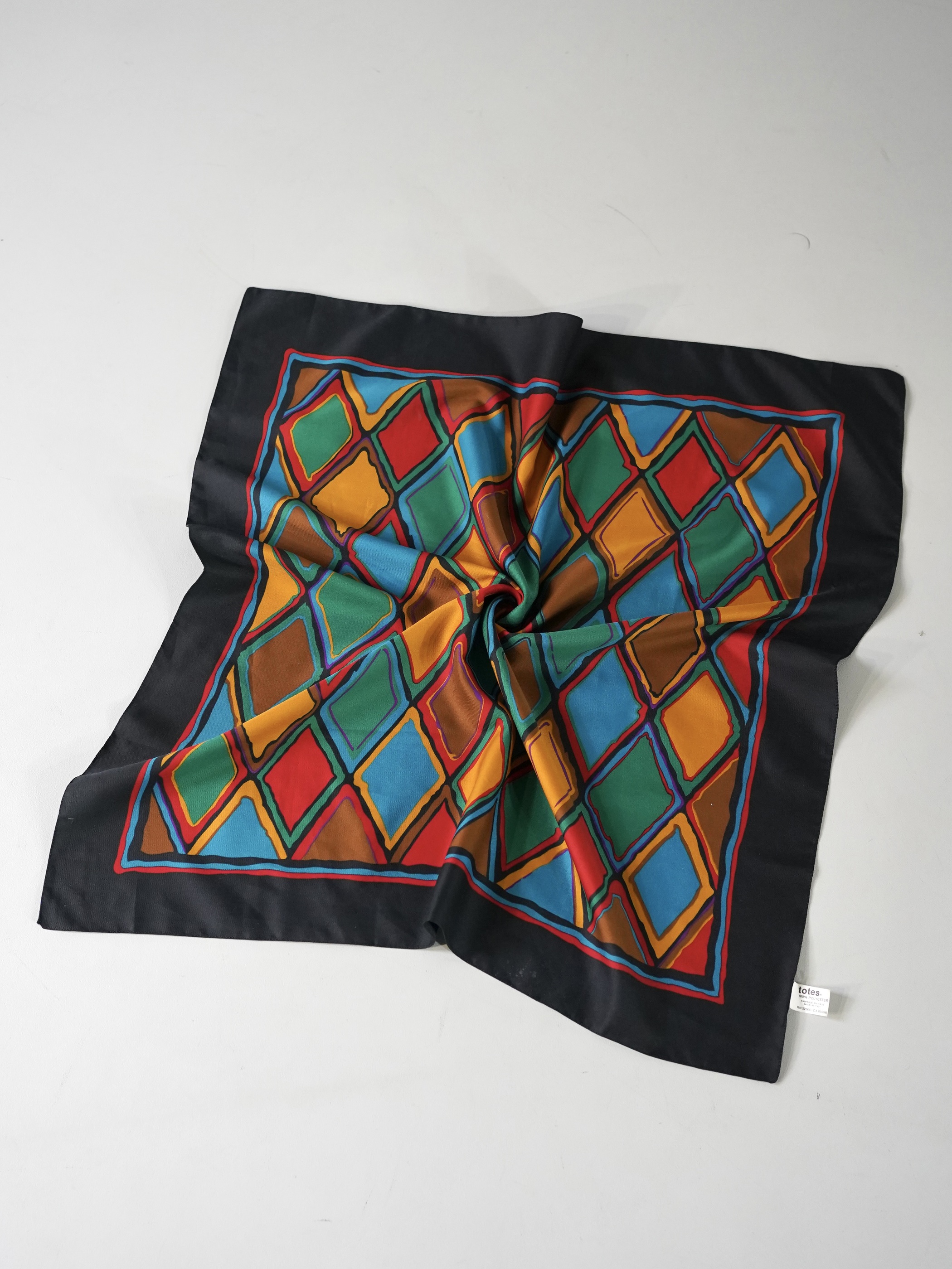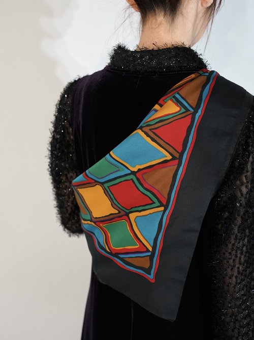 ブラックの縁取りにマルチカラーのダイヤモンド柄