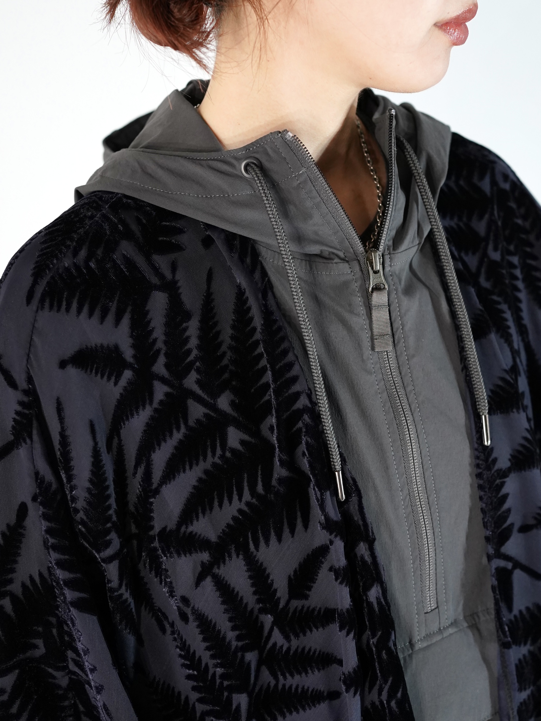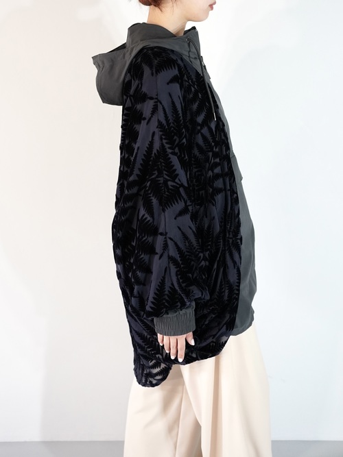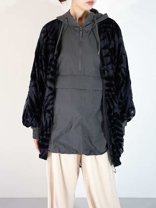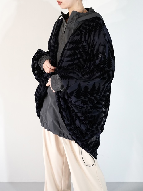 スタイリングに変化を与えてくれる丸みのあるデザインですが、色とデザインがシャープなので意外と他の柄や色物と合わせ易く、使い易い1着。