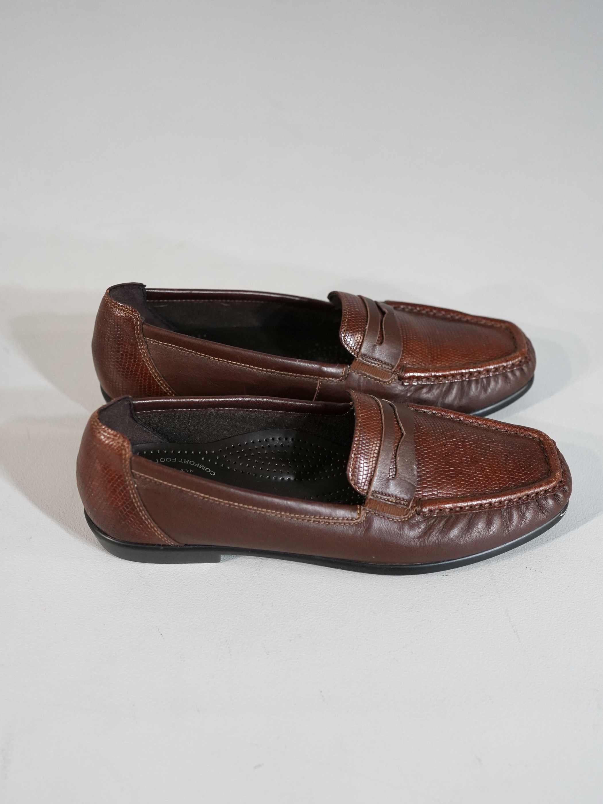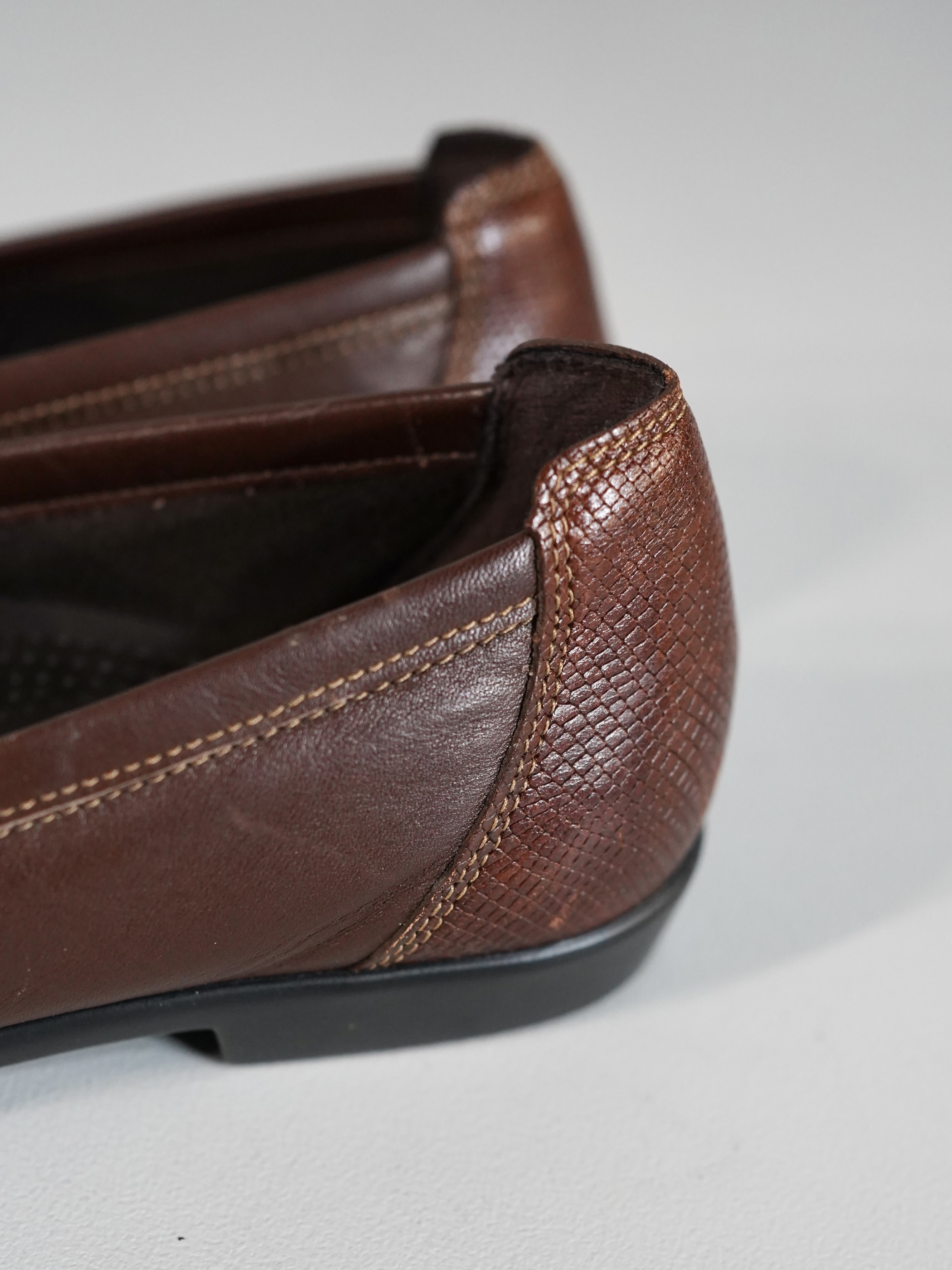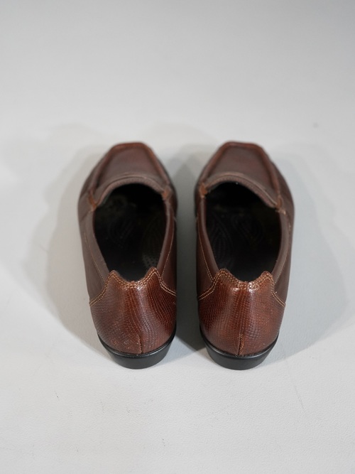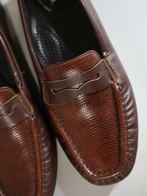 フロント表面とかかと部分のみ、別のレザーを使用しており、切り返えデザイン。パイソンの様な面構え。