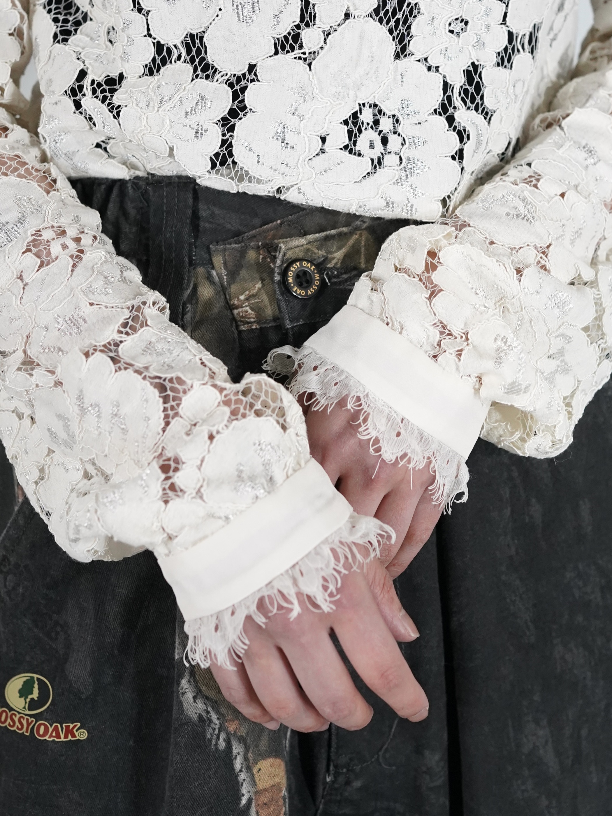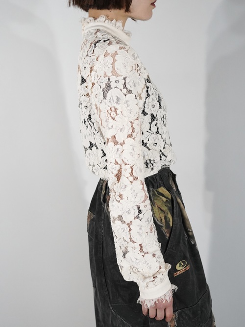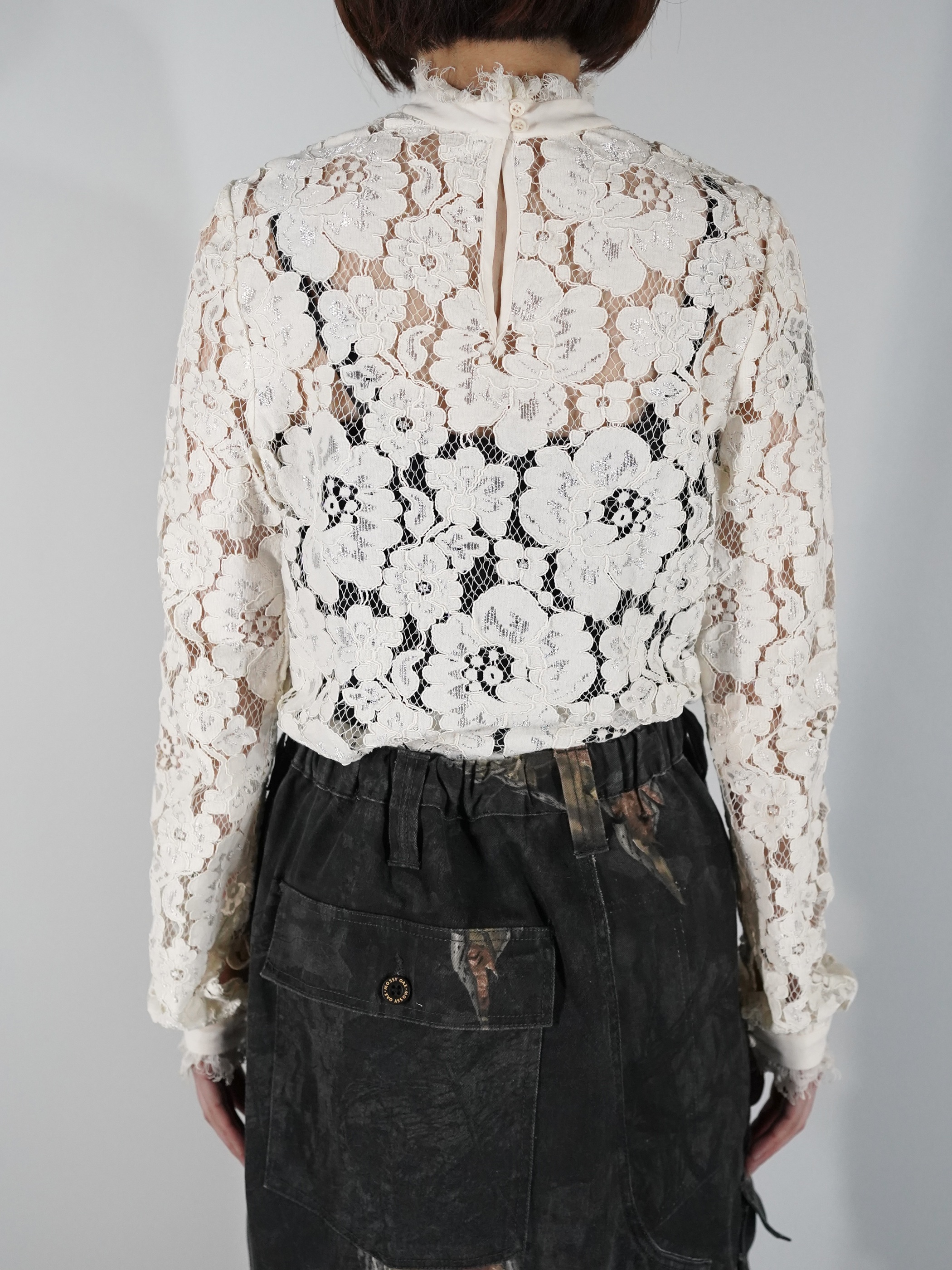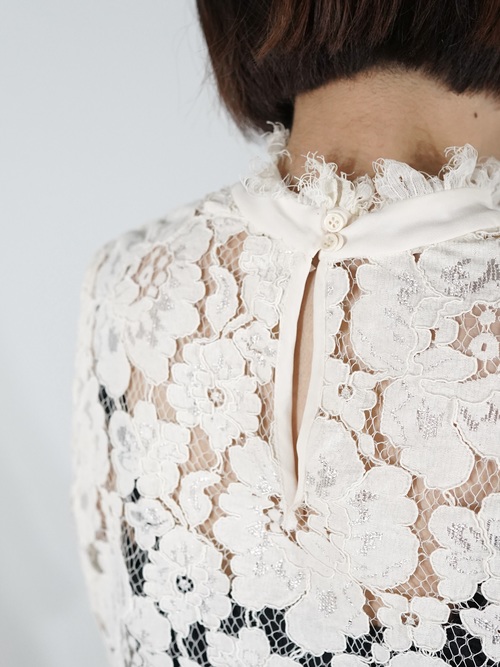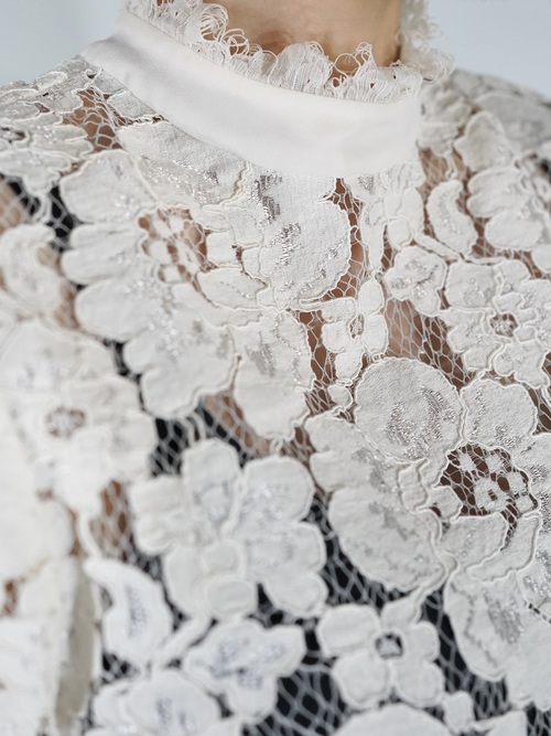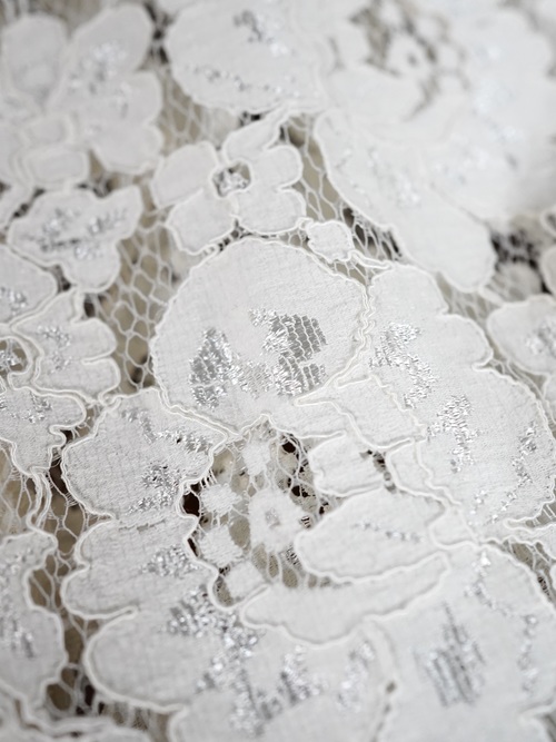 近くで見ると花を縁取っているのがわかり、さらに光沢のある糸を重ねた凝ったディテール