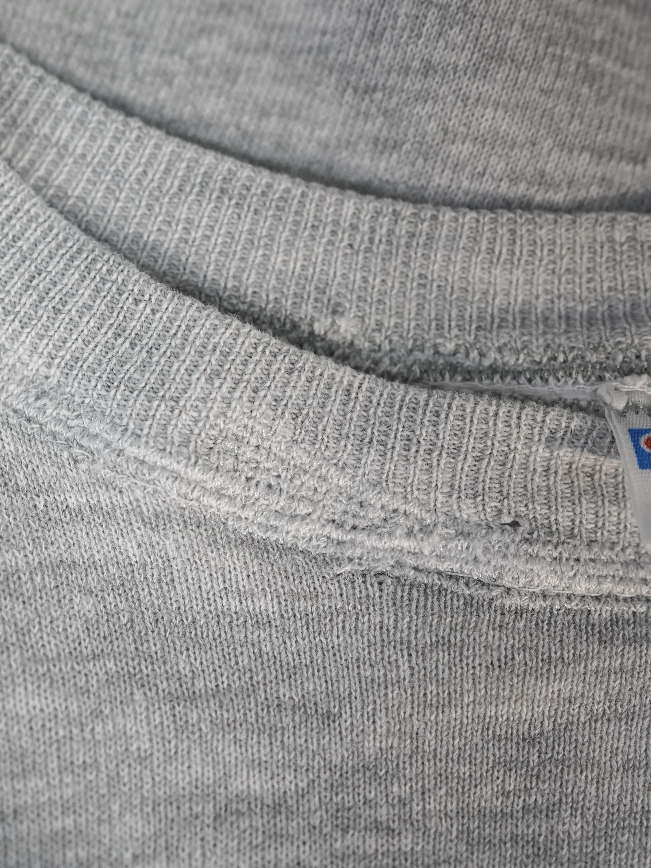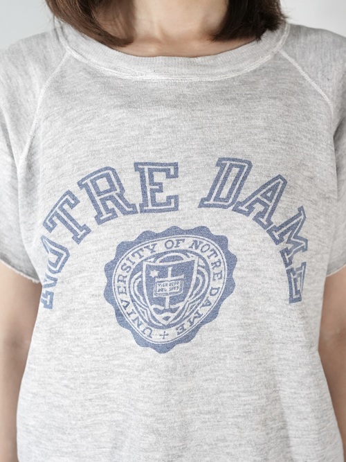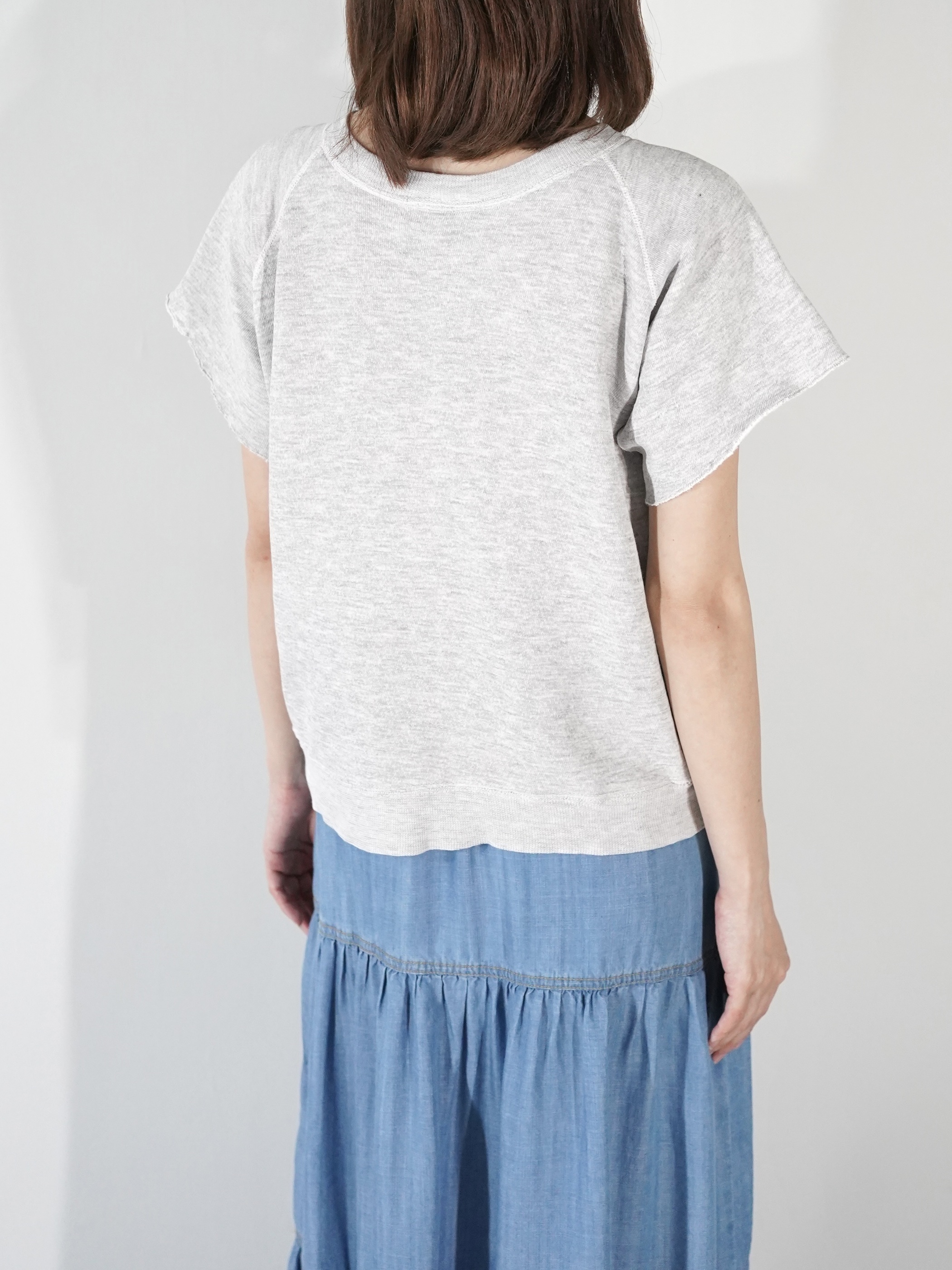 杢グレーボディに馴染むような柔らかいカレッジプリント