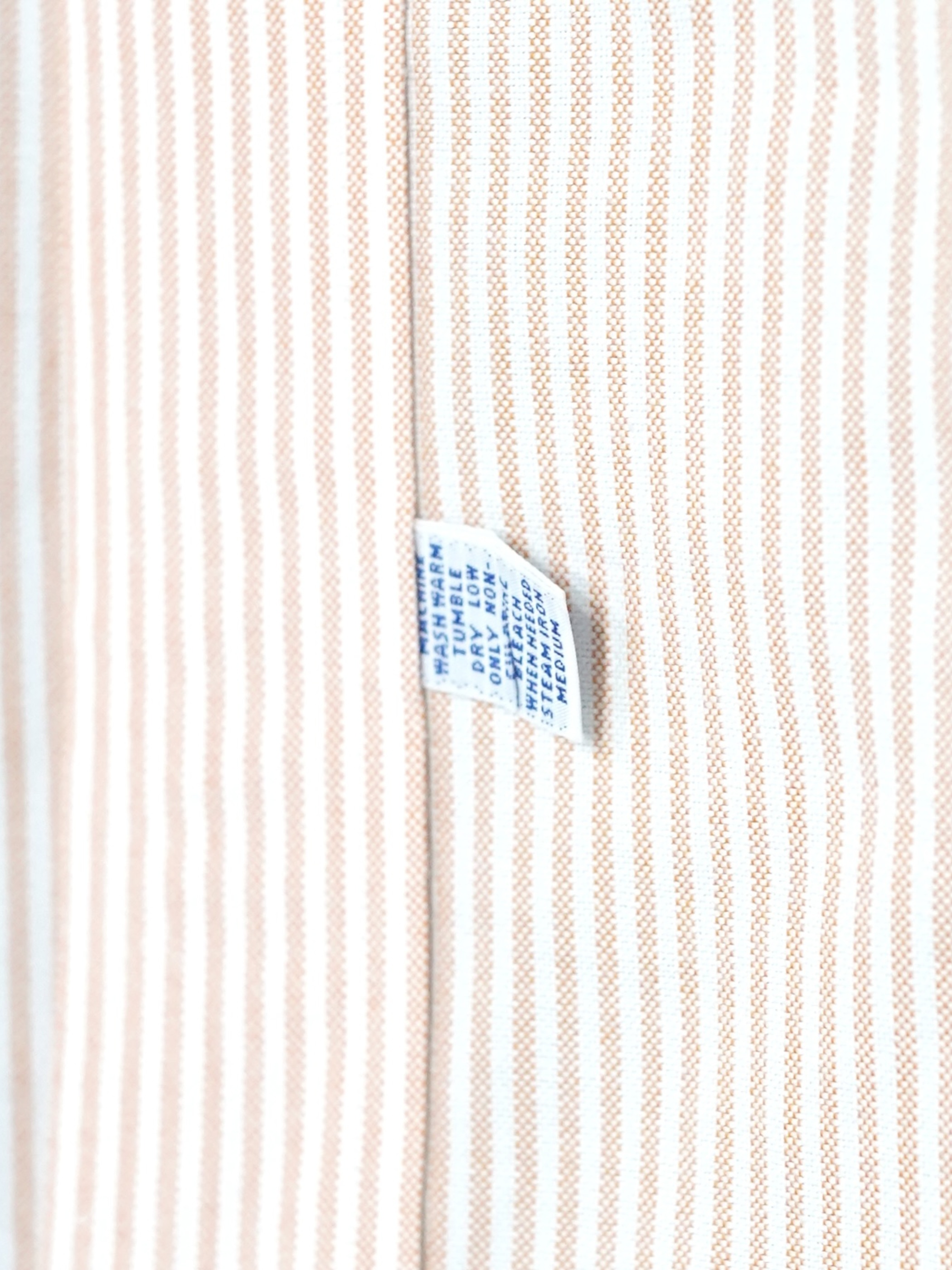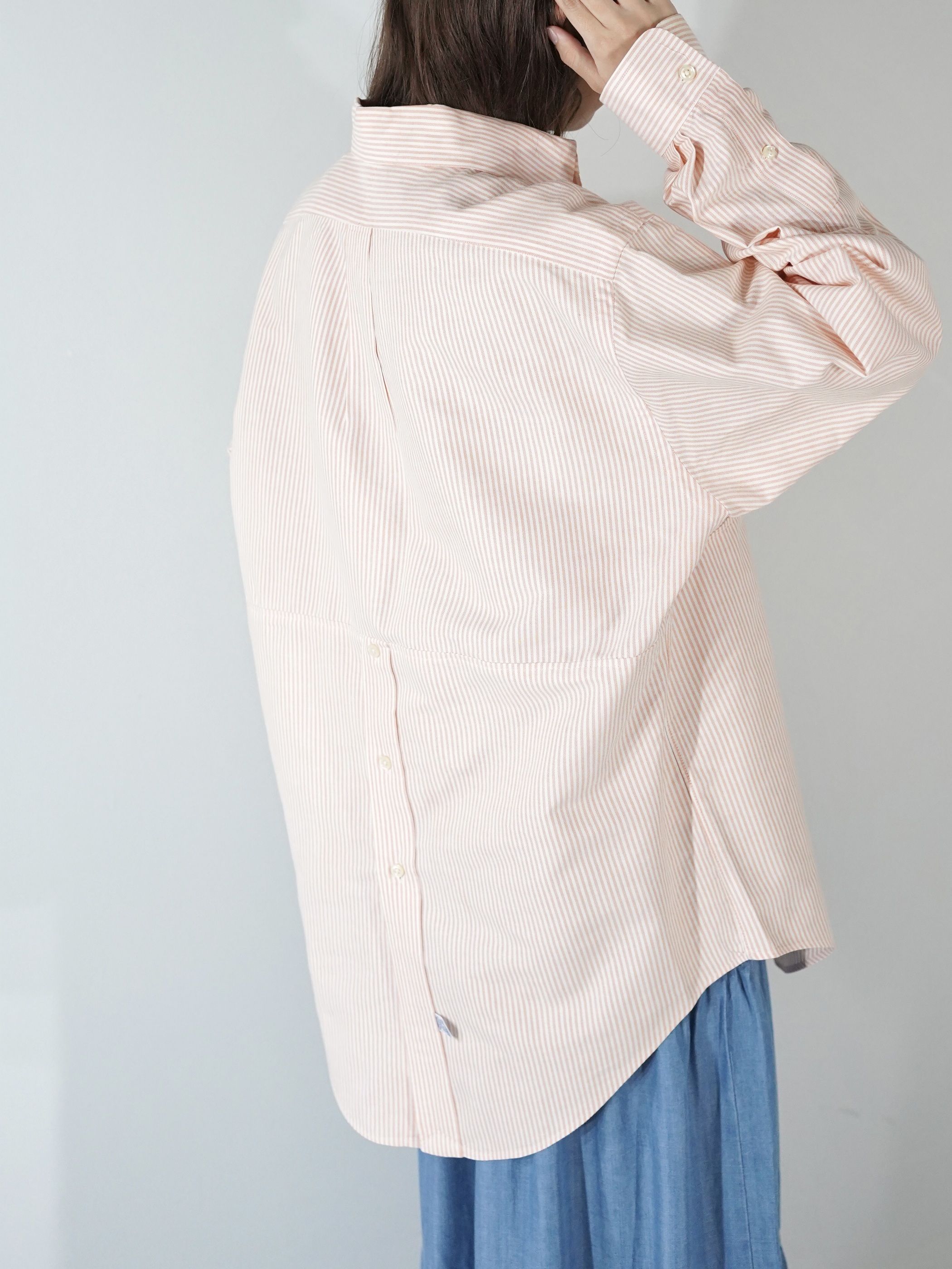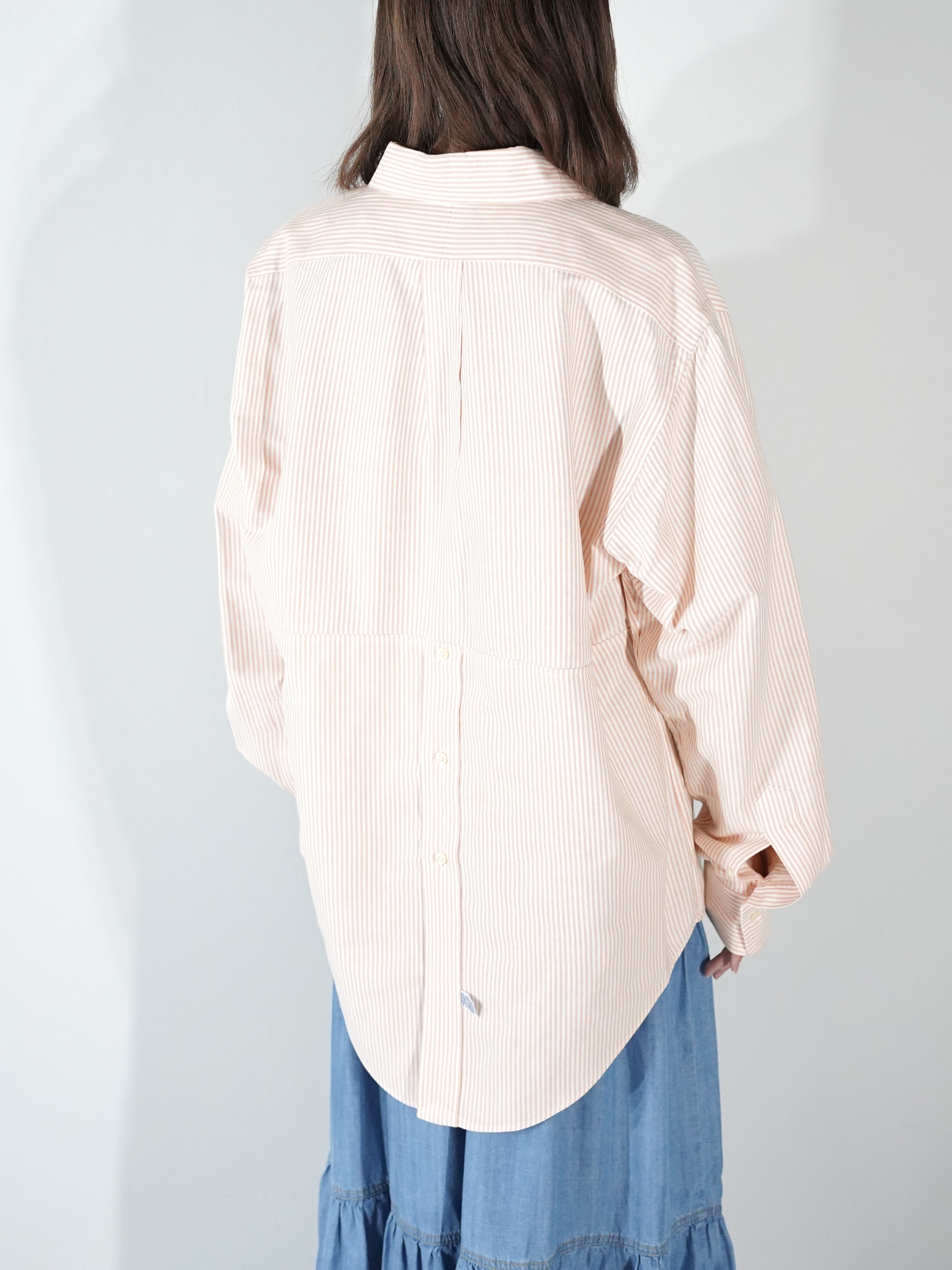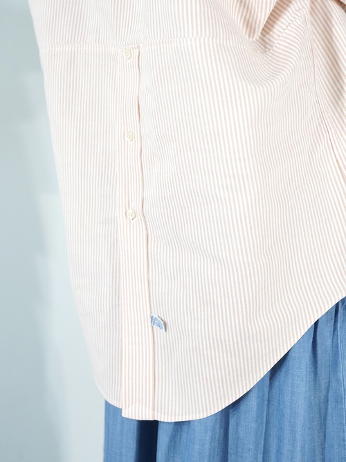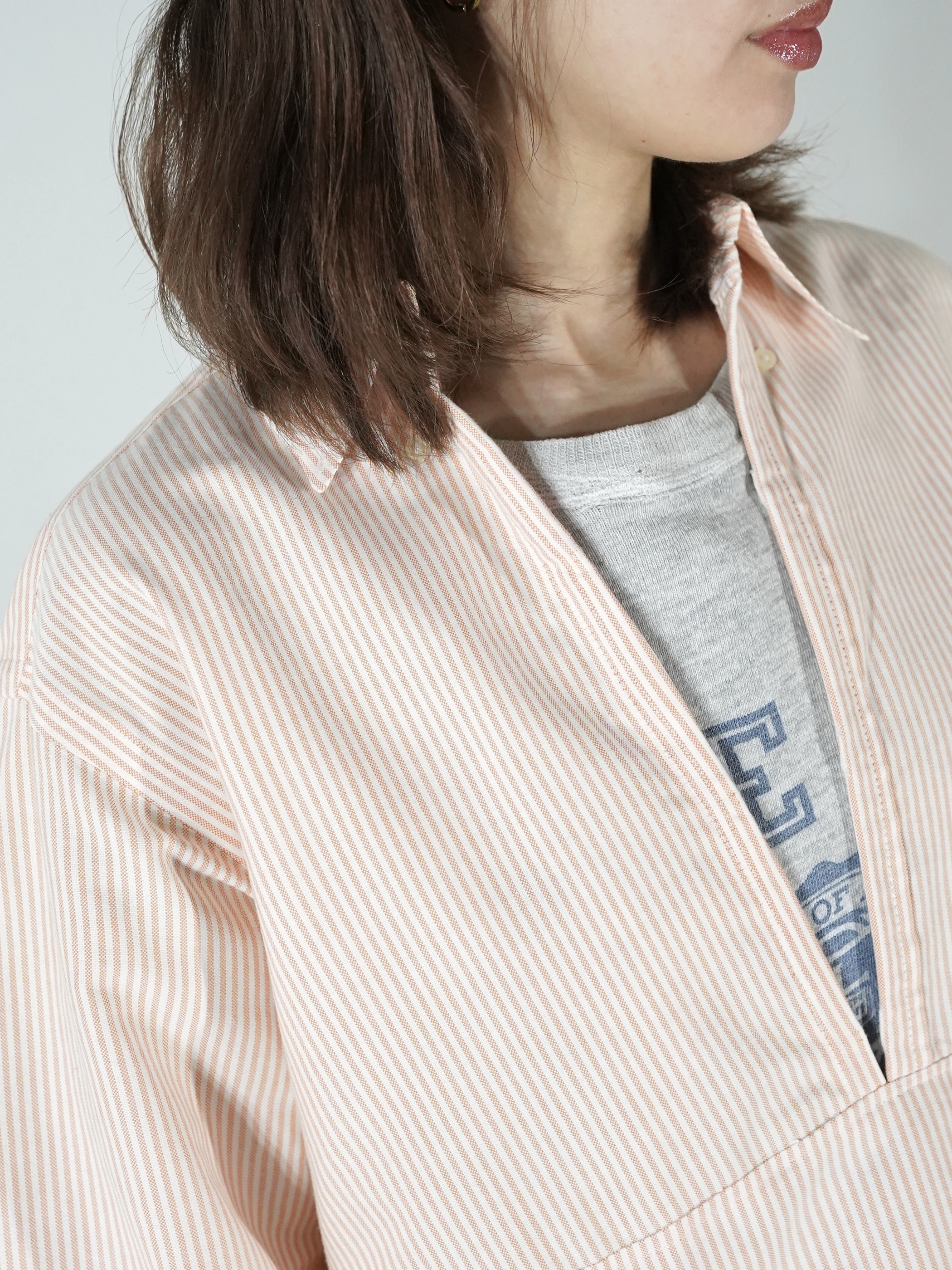 柔和なカラーリングのピンストライプなのも良く、インナーには大ぶりな柄物を合わせても良さそう