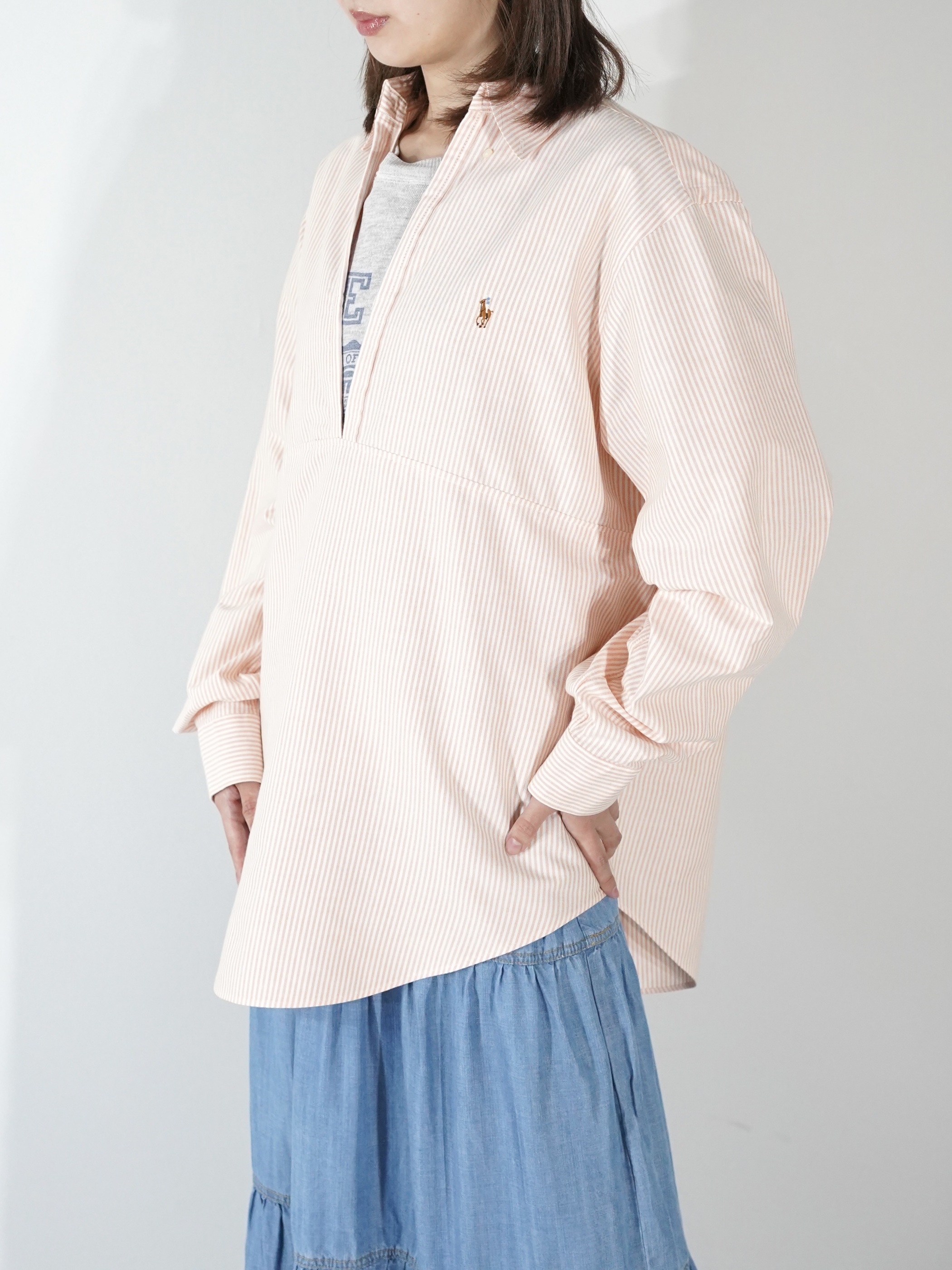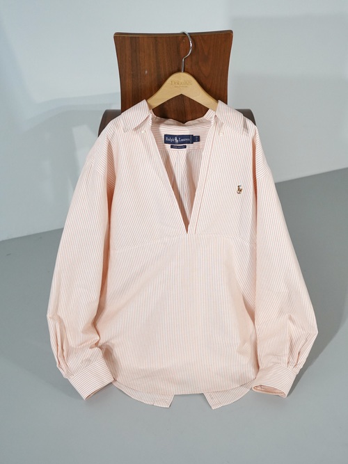 今時期はロンTやチビスウェット、もう少ししたらTeeやノースリトップスなど入れてレイヤードを楽しめるスキッパーネックにカスタムしたRalph Laurenのシャツ