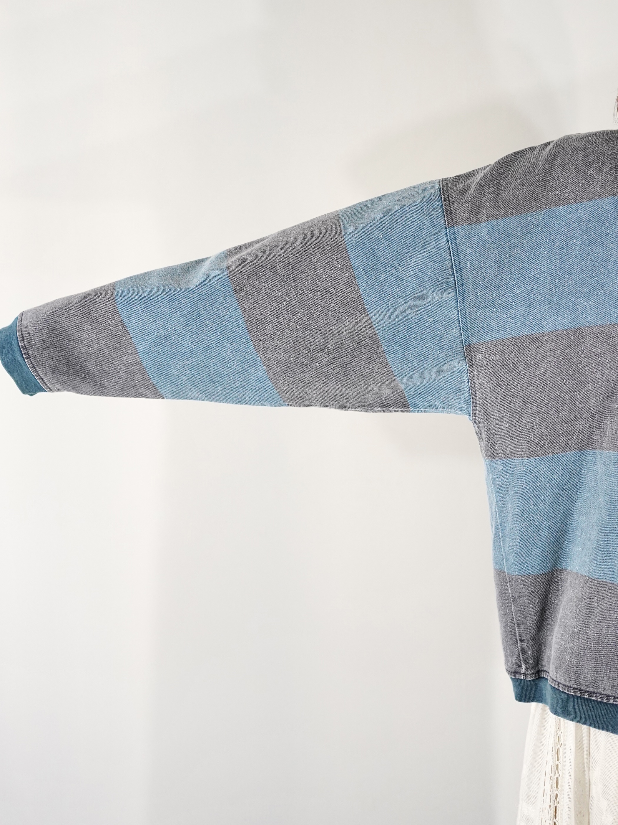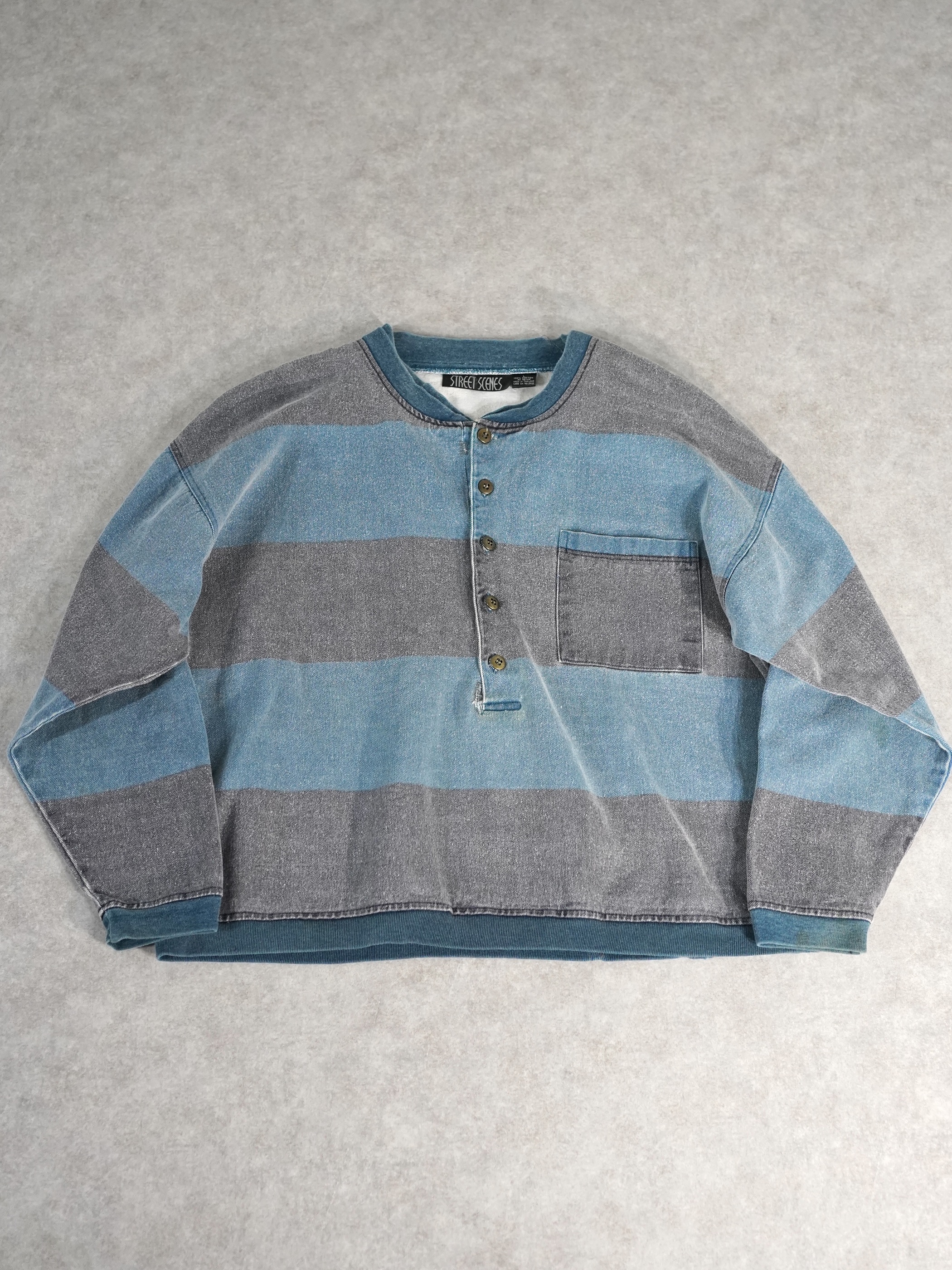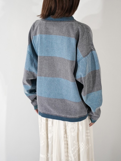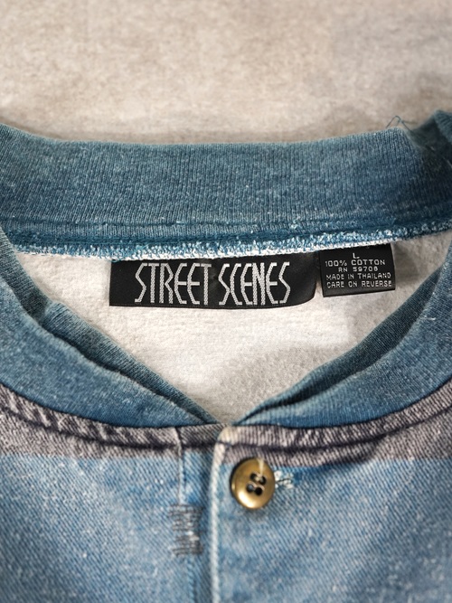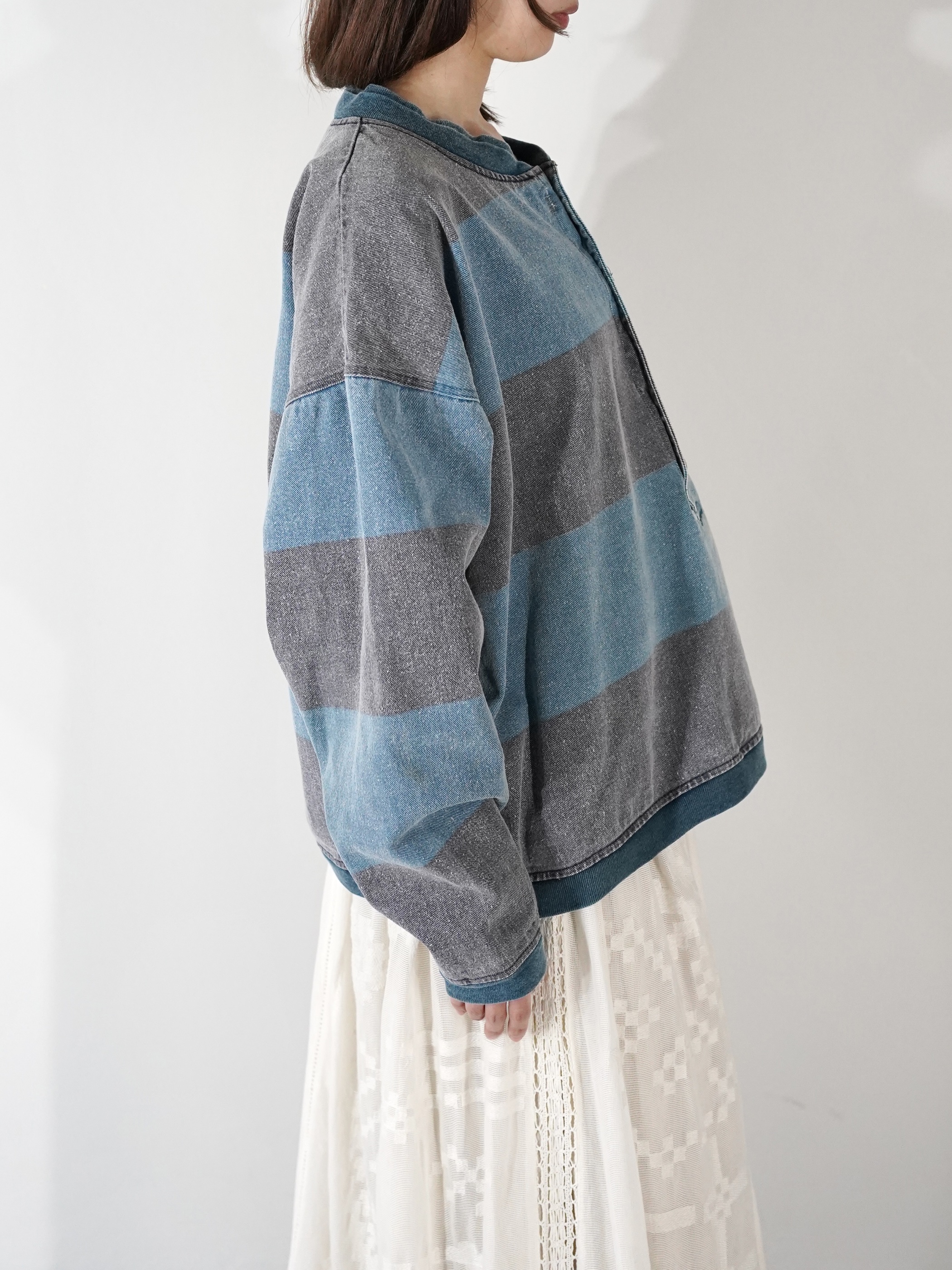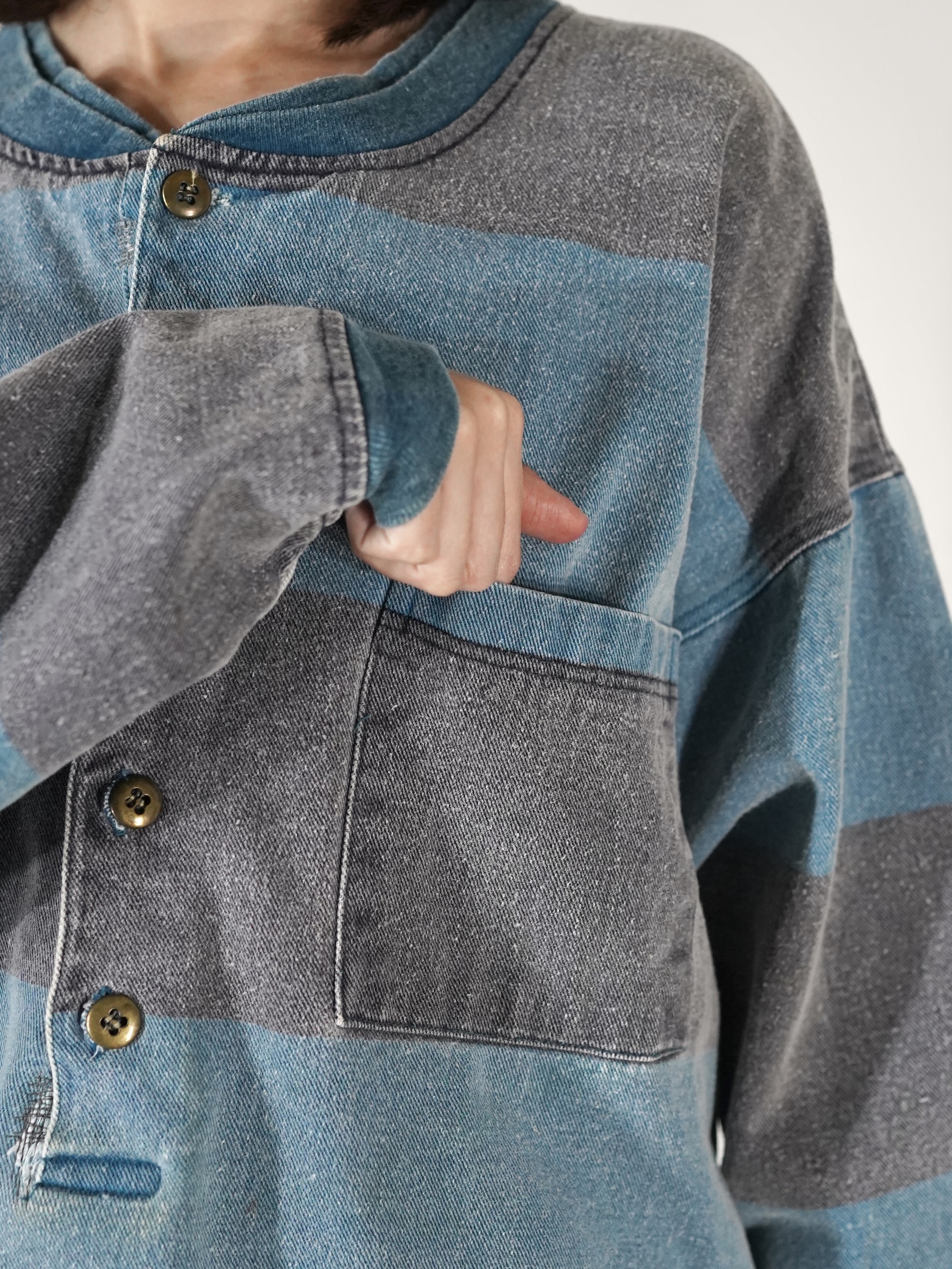 1990s 2tone Border Denim Henry Neck Tops