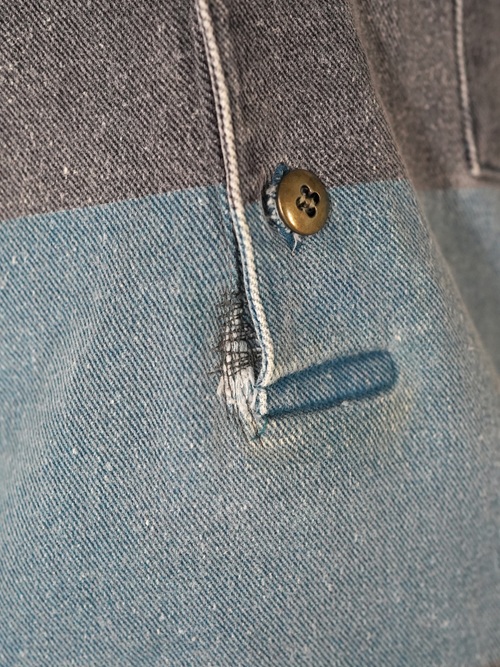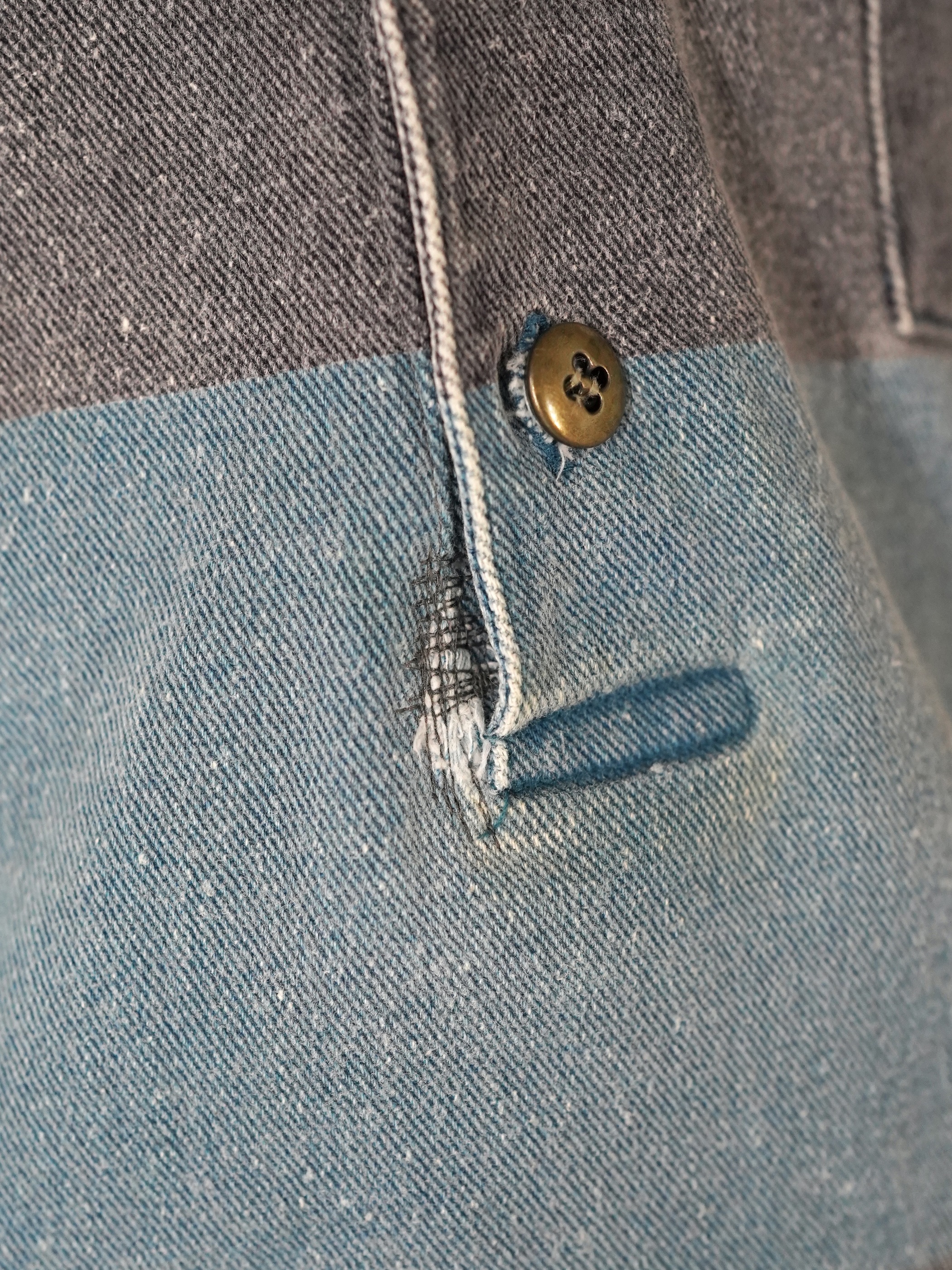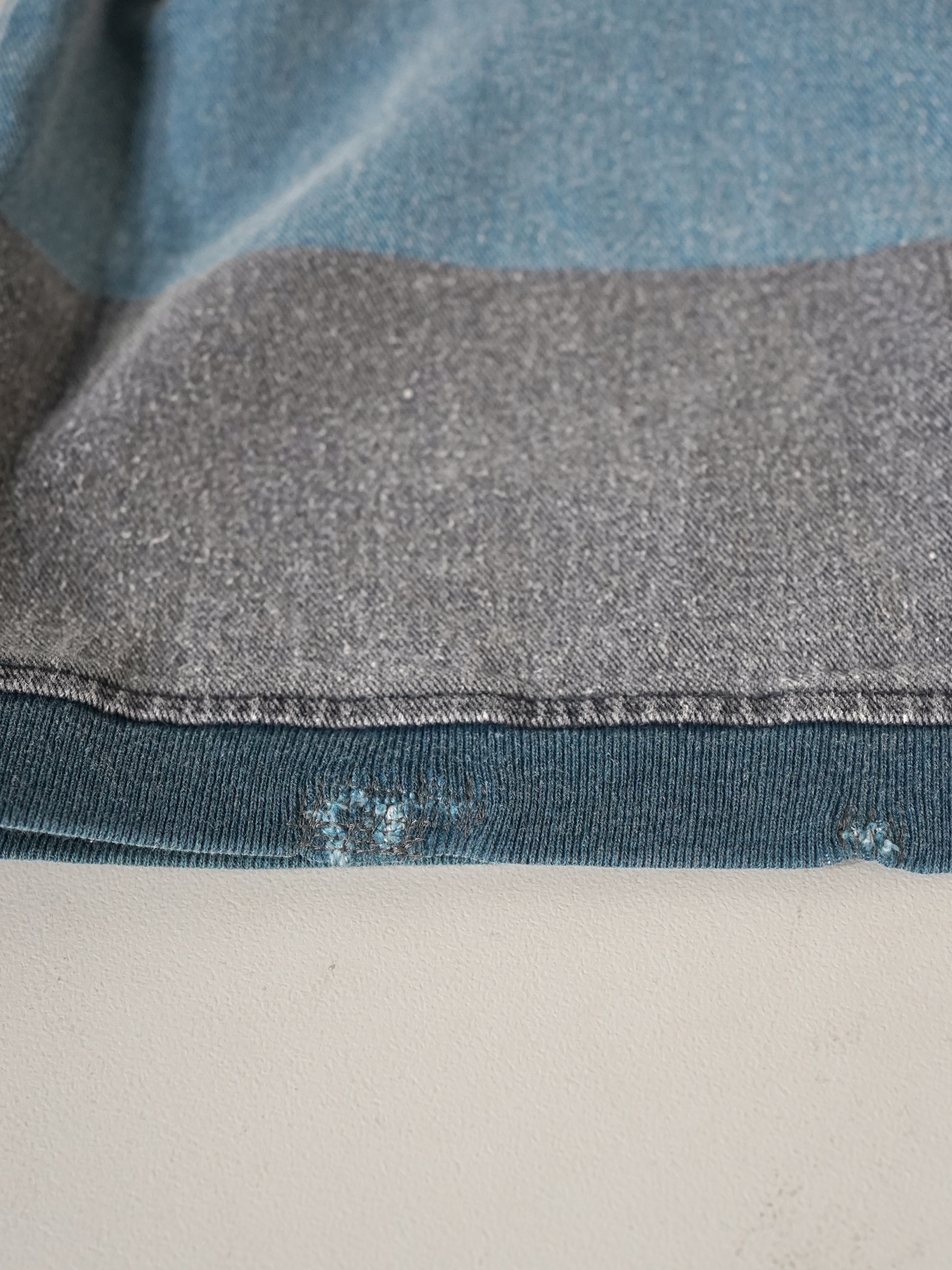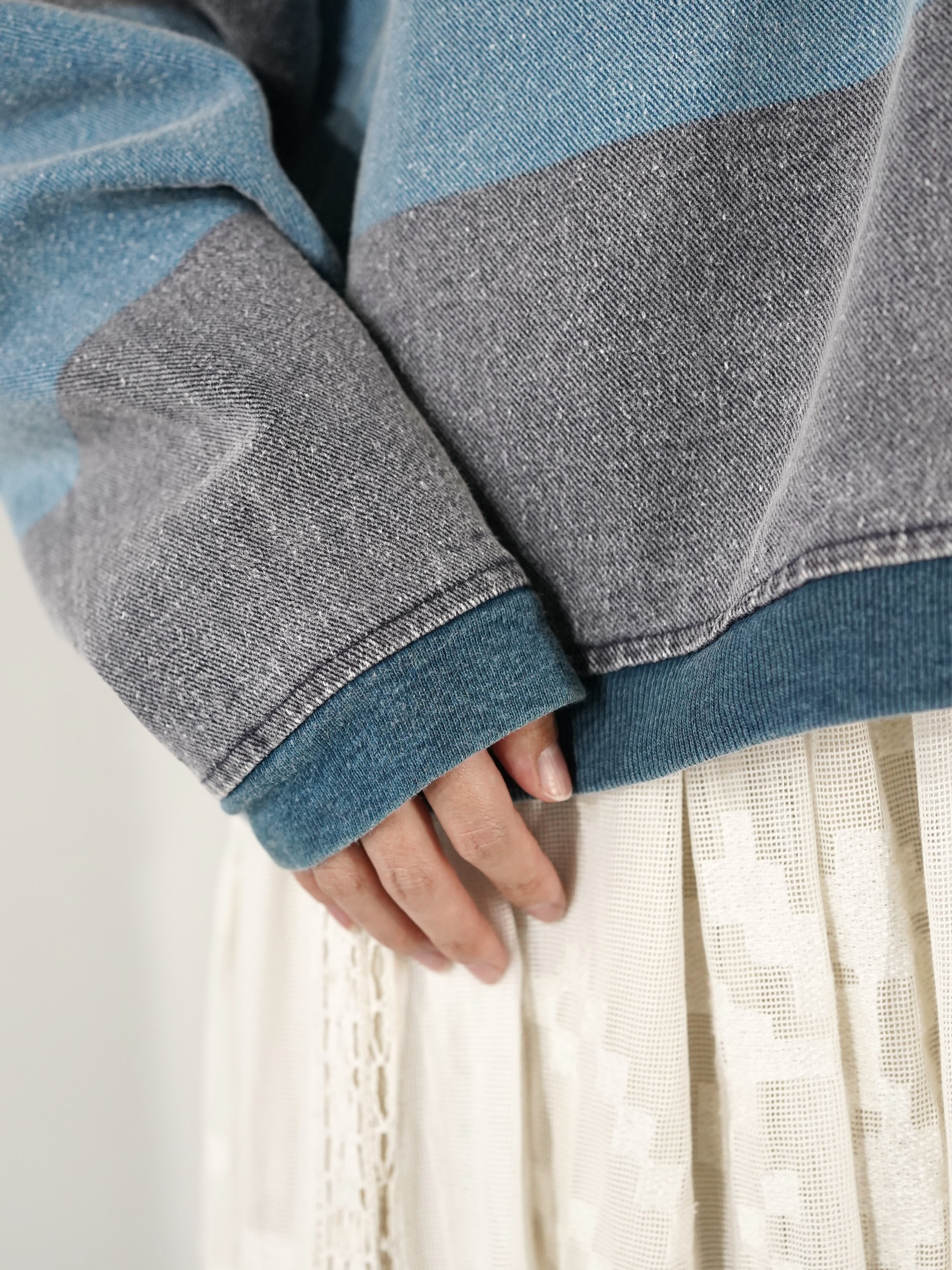 1990s 2tone Border Denim Henry Neck Tops