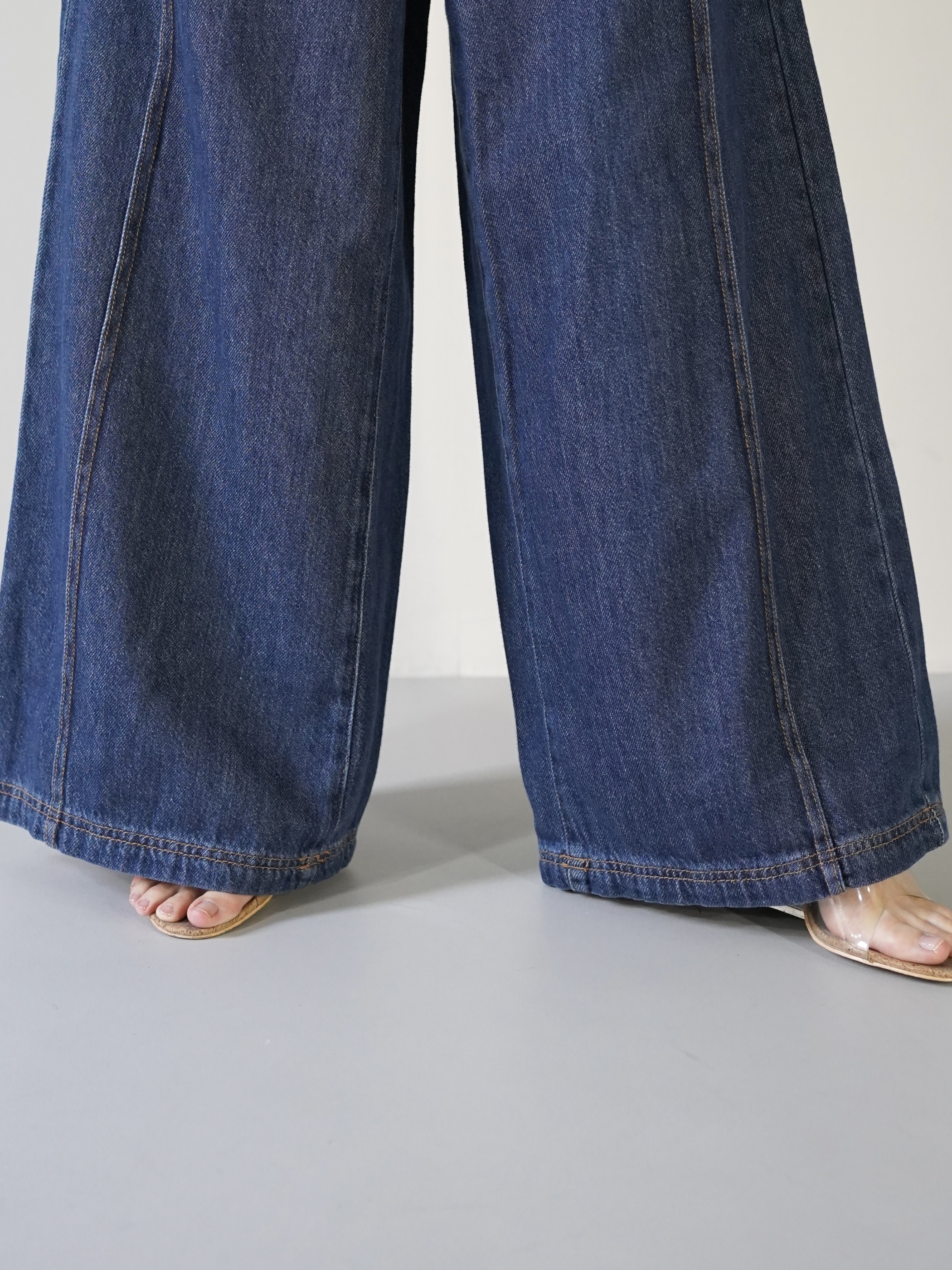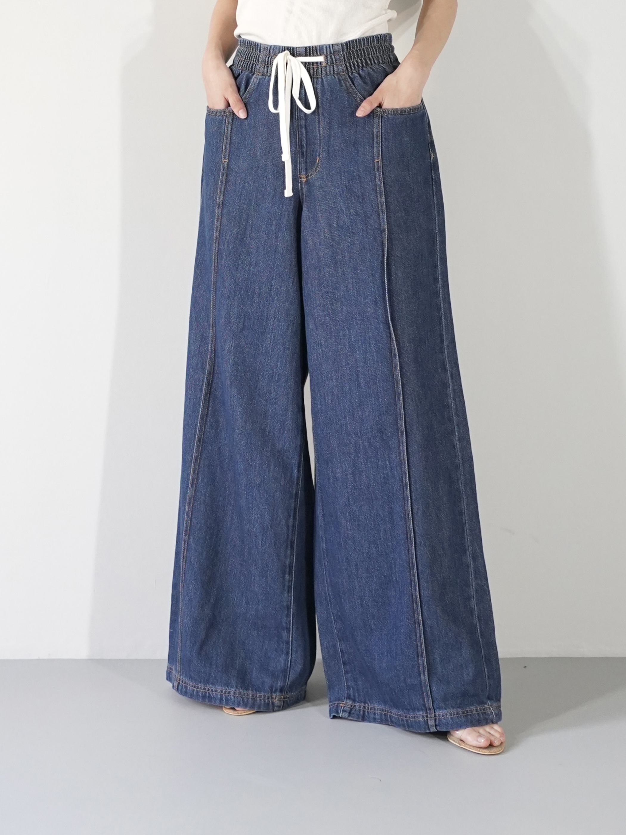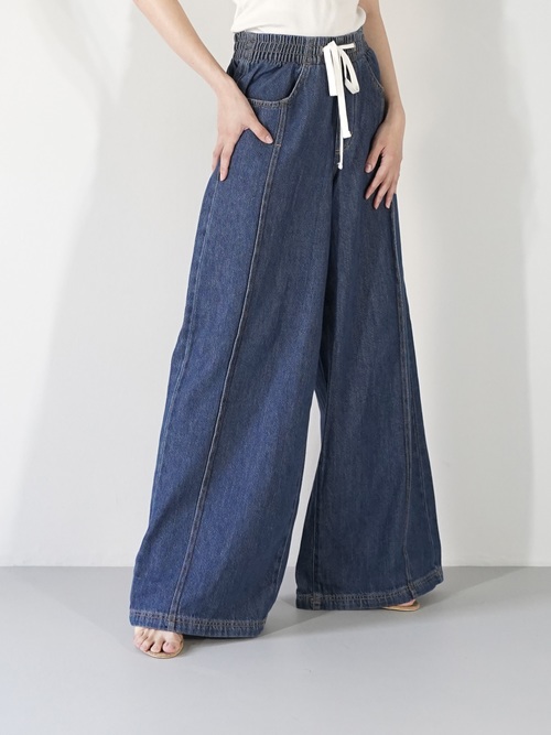 フロントから裾まで入るセンタープレスが縦長フレアを強調してくれるデザイン