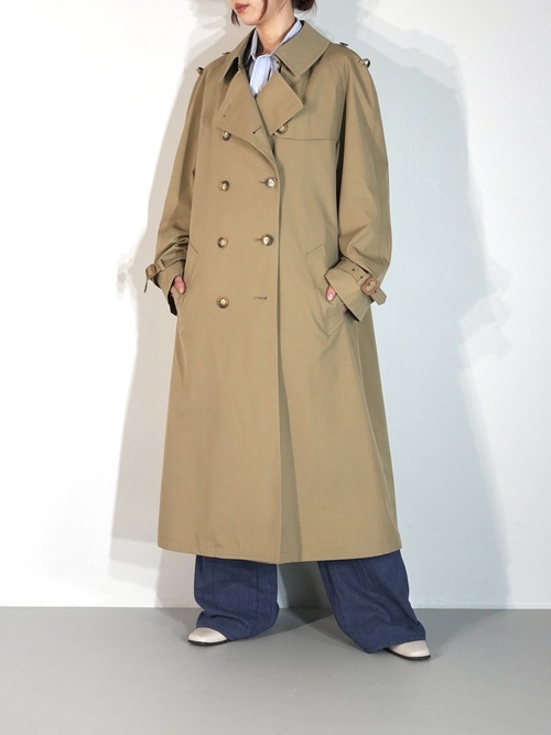 ゆったりとした身幅とアームホール、ドルマン仕立ての落ち感あるシルエット。何にでもプラスし易いヌーディーカラー。ベルトでシルエットにメリハリを付けても良いかと。