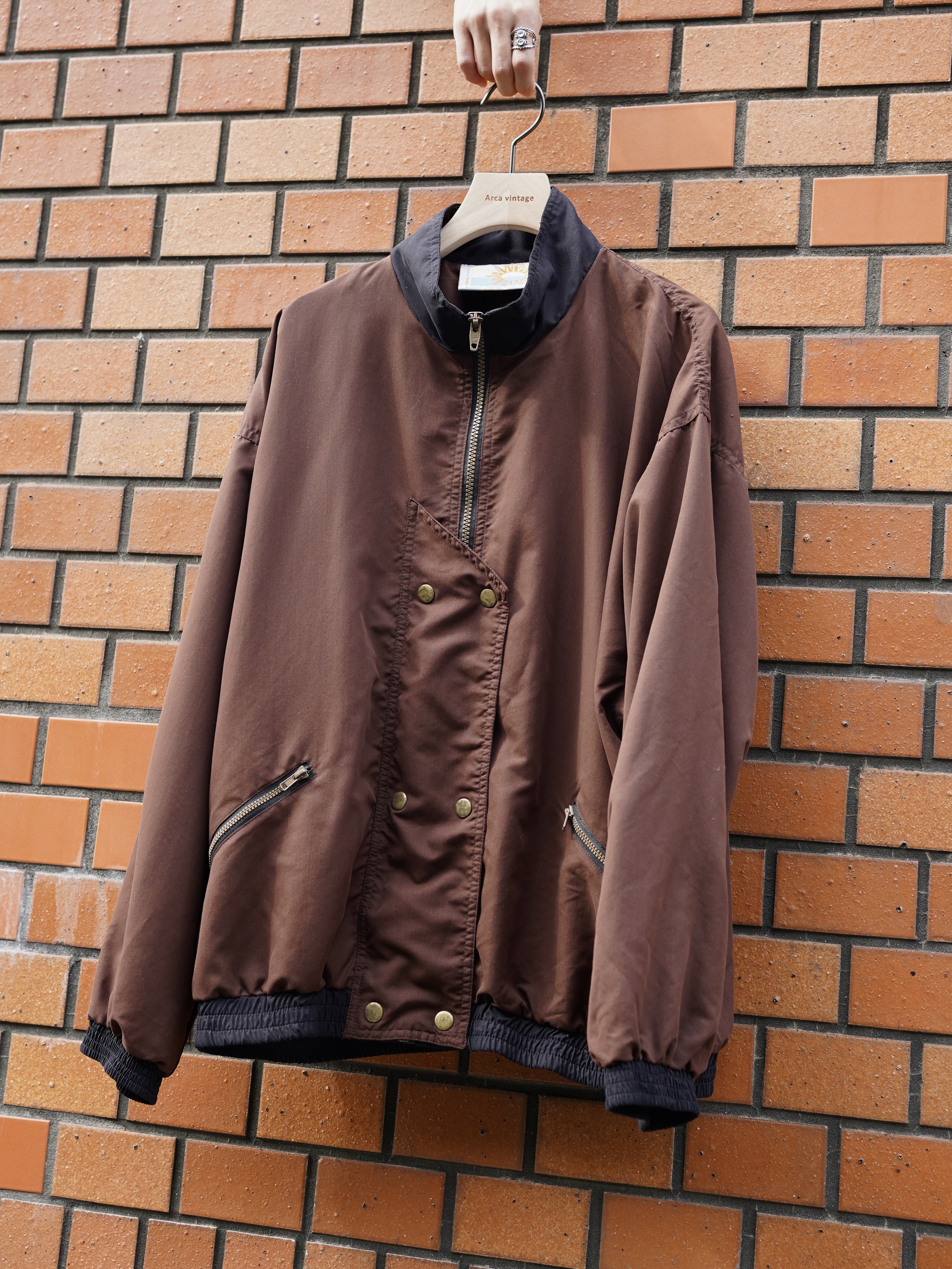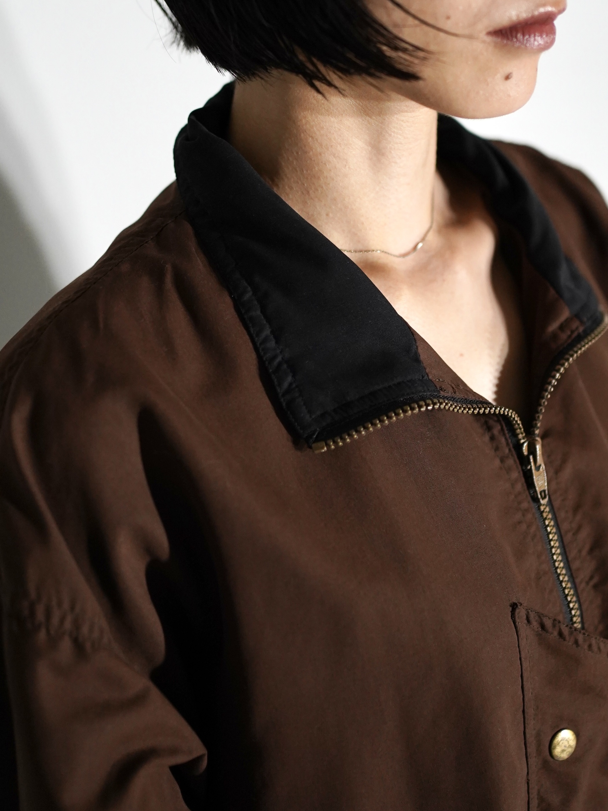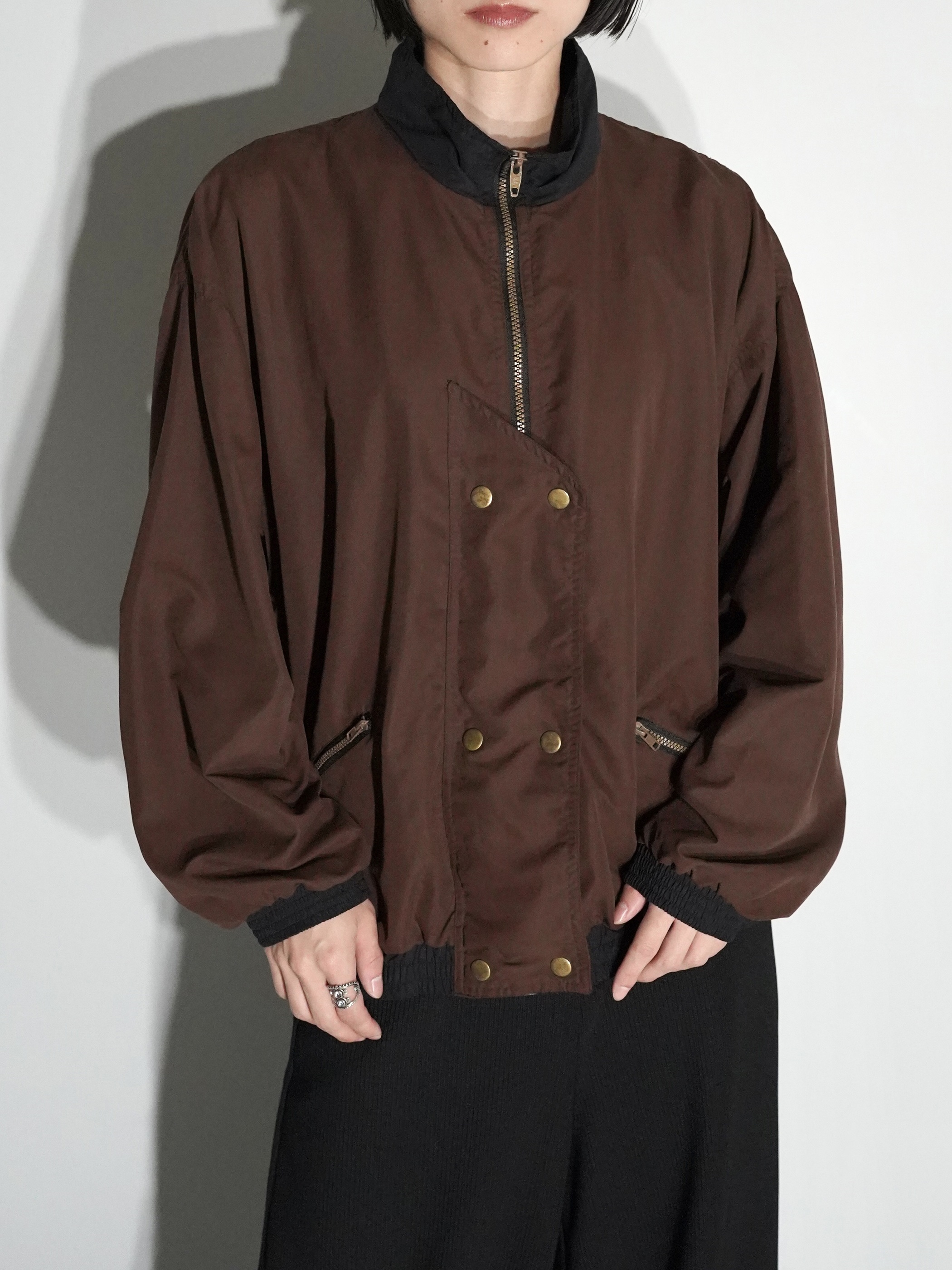 1980s Peach Skin Asymmetry Flap 2tone Zip Jacket