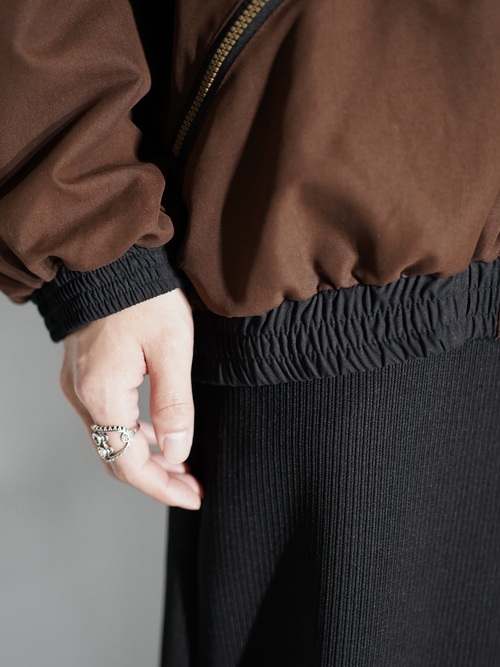 裾と袖口はゴムでキュッと絞られ、全体は丸みを帯びた纏まり有るシルエットに。