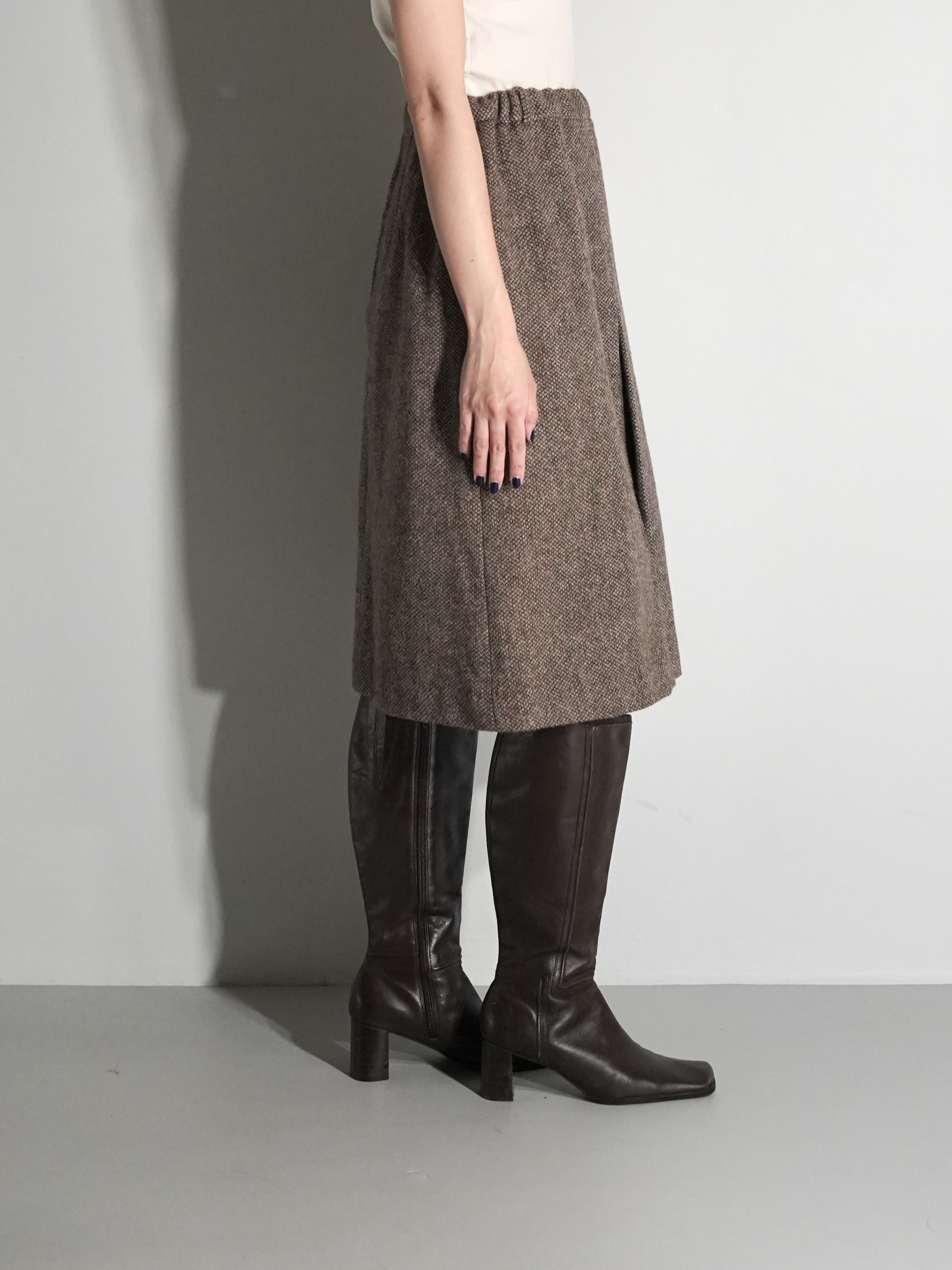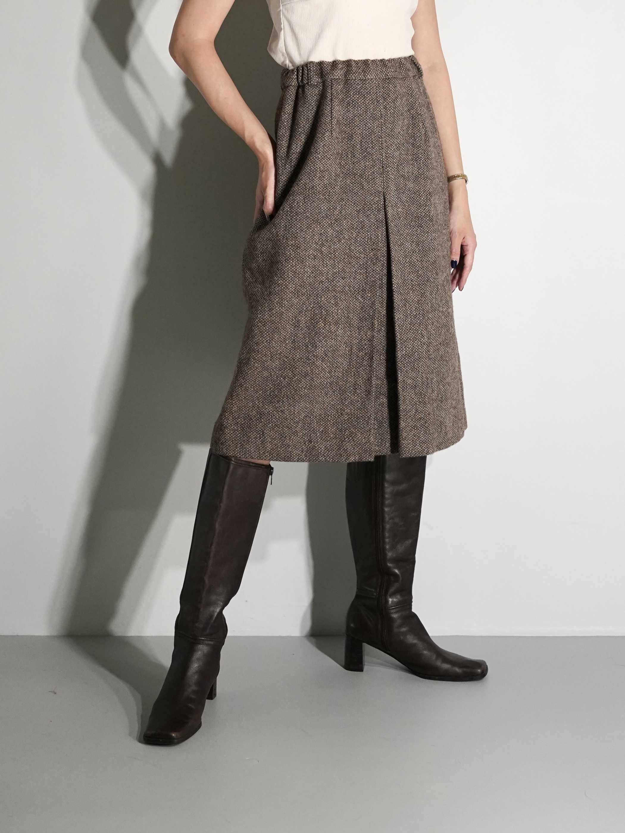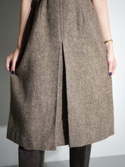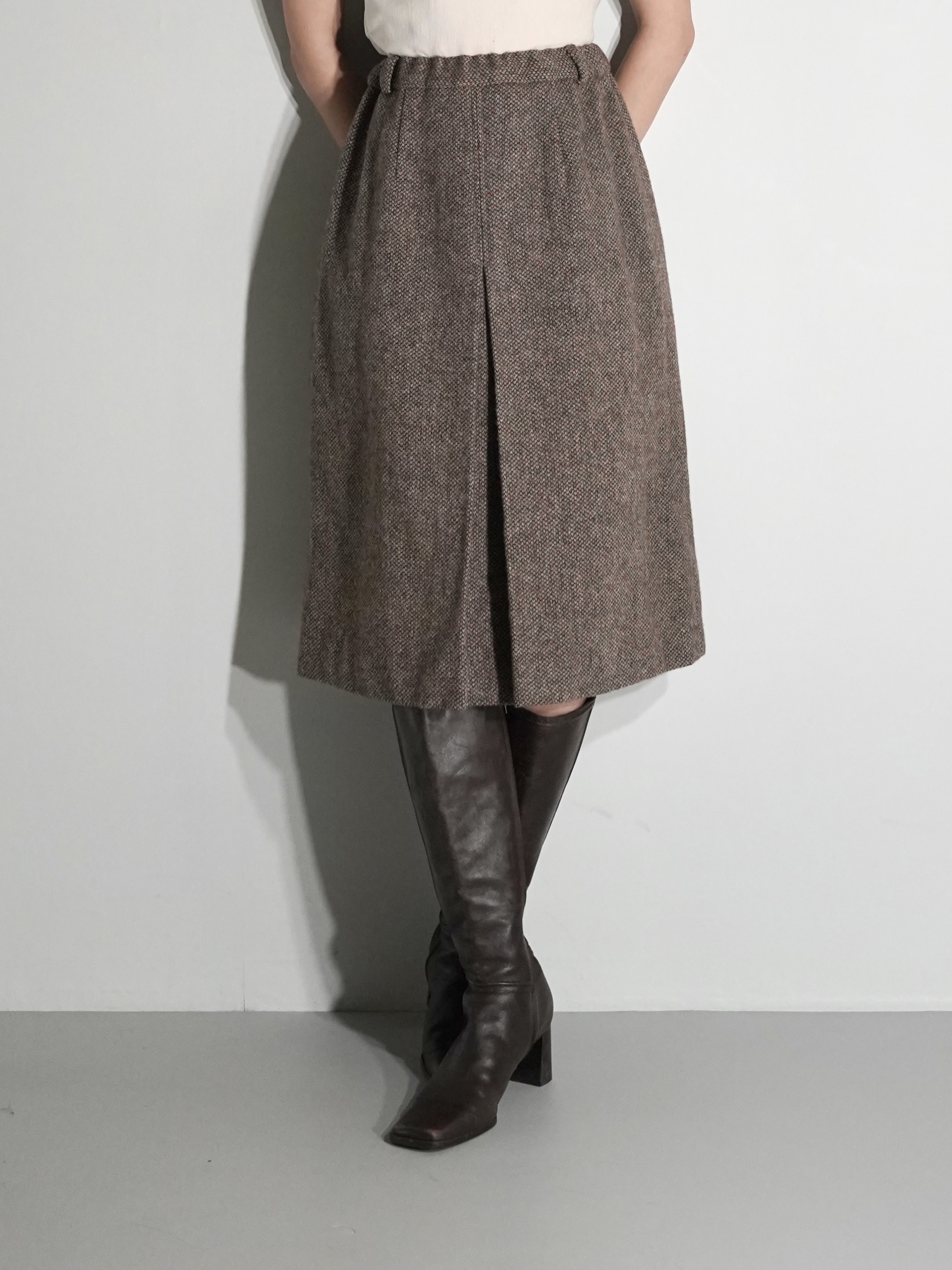 フロントに入ったインバーテッドプリーツが目を引く、ショーツの様な印象を持たせるミディ丈のスカート