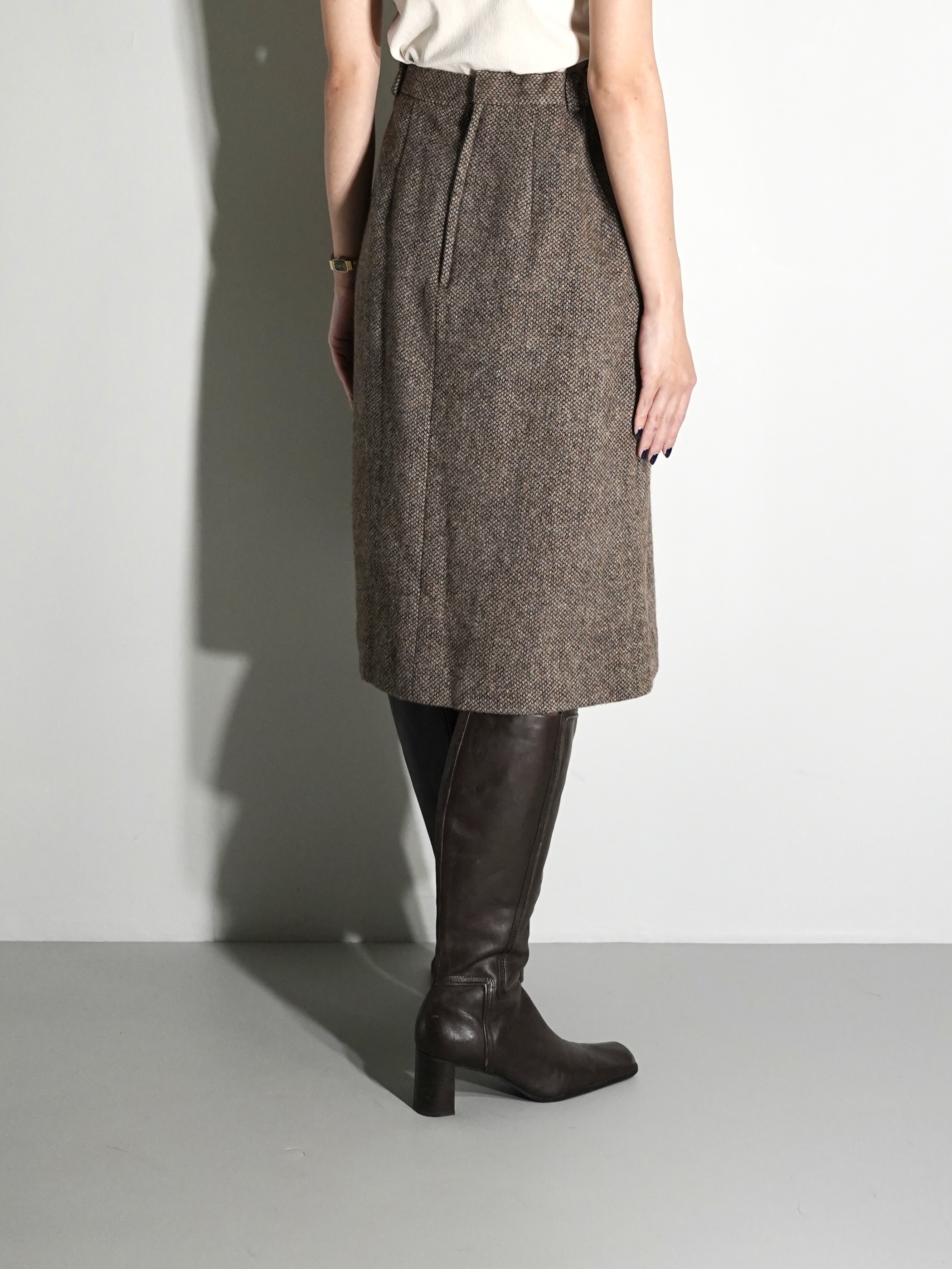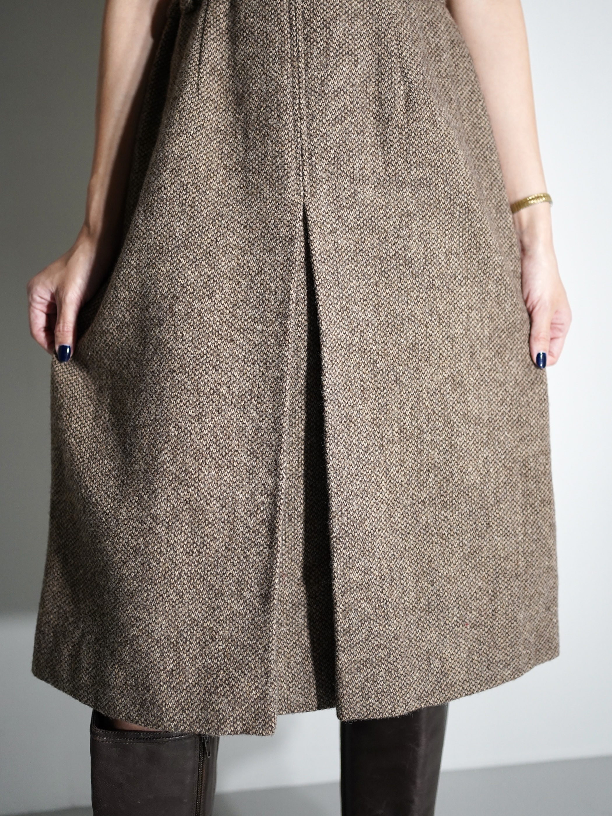 ブラウン系で纏めた、バーズアイの様な特徴あるパターンのツイード生地