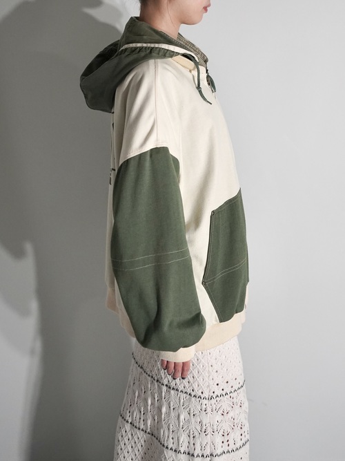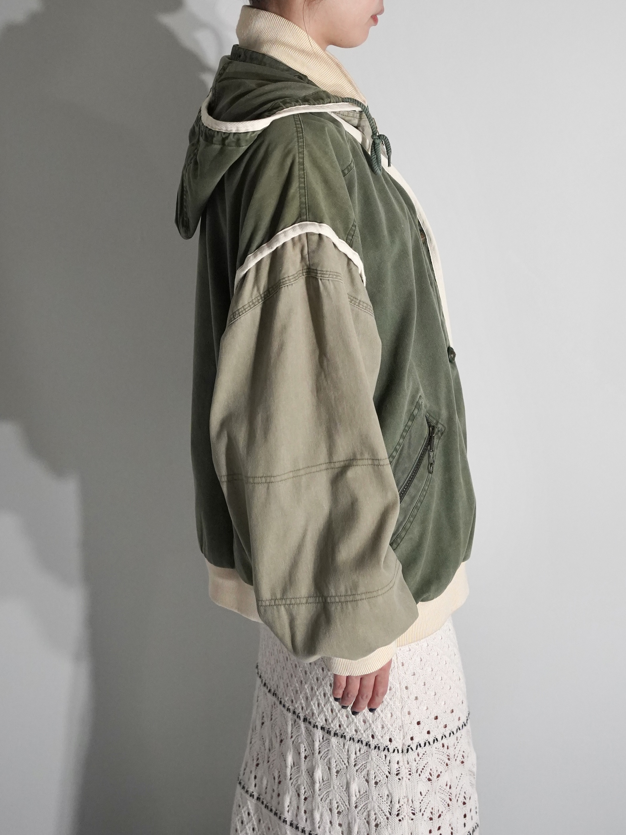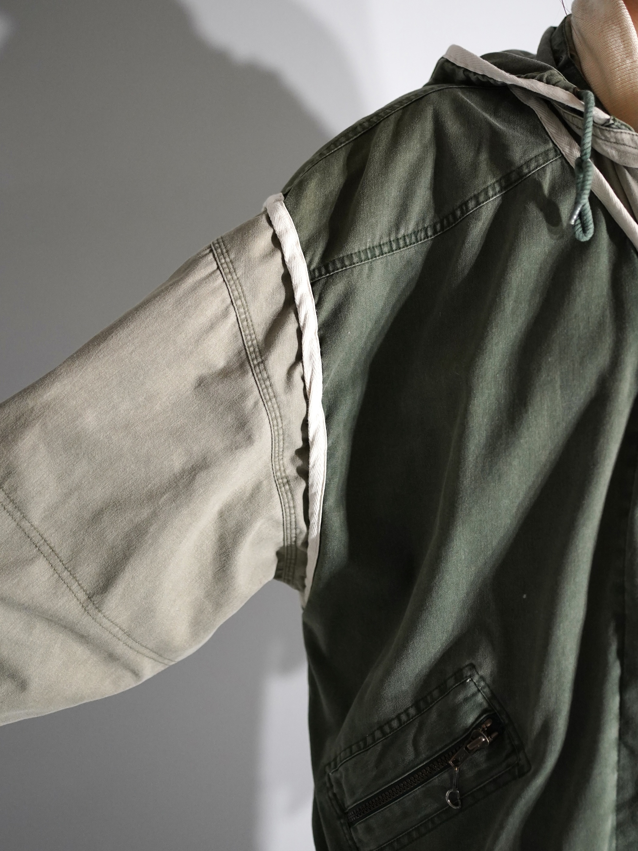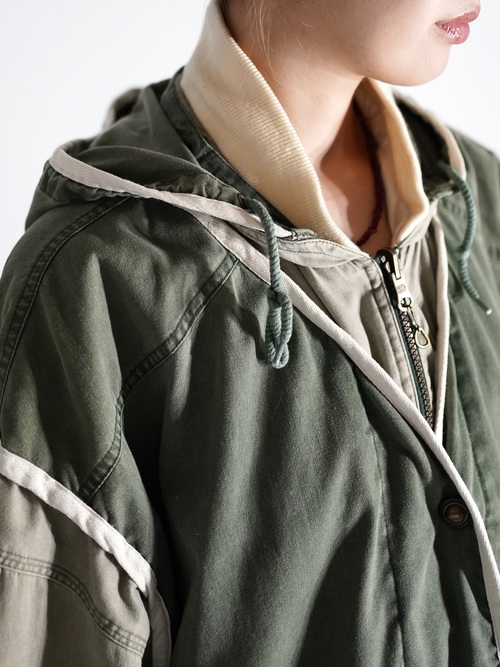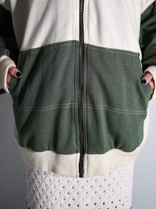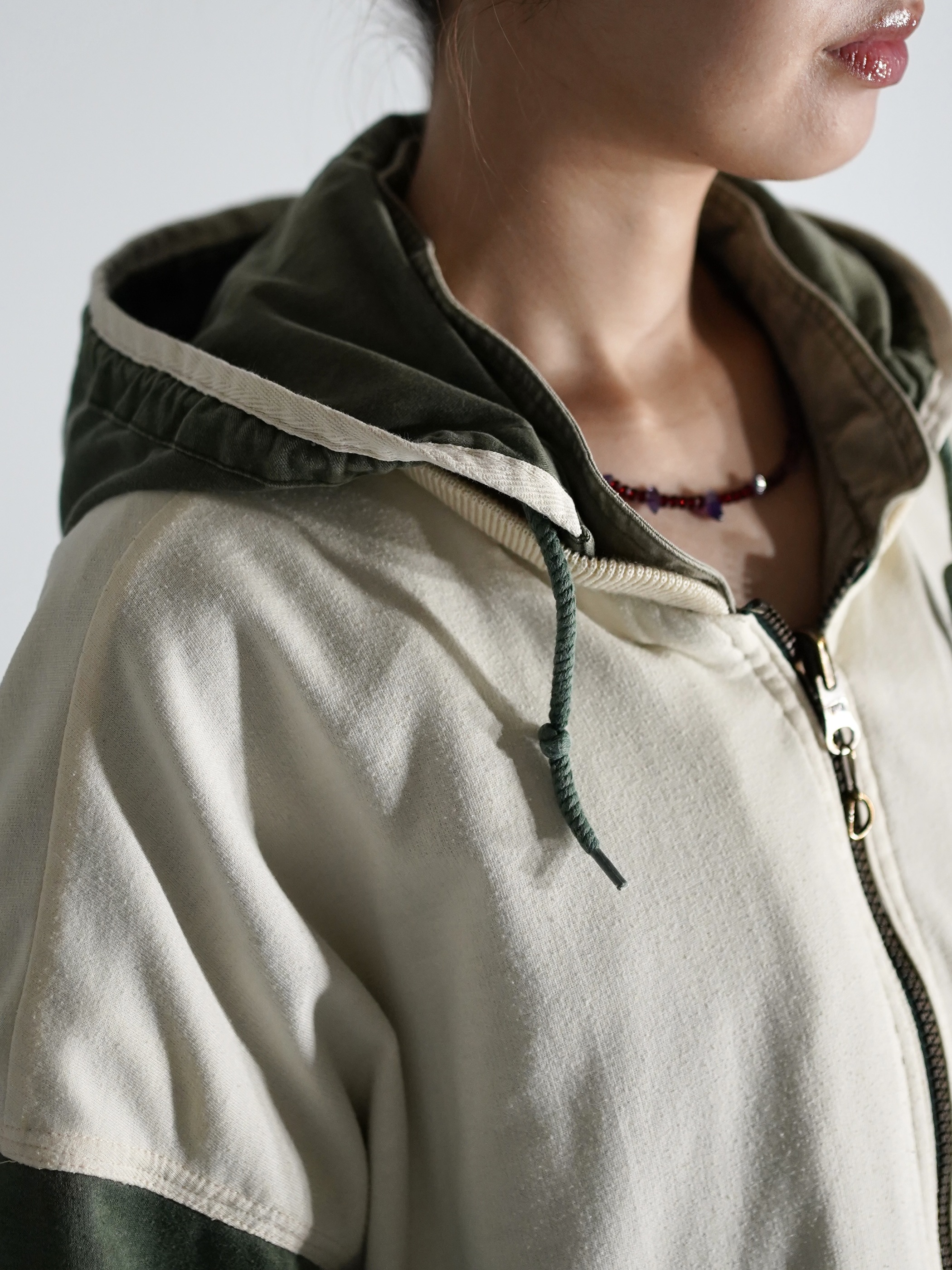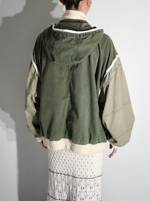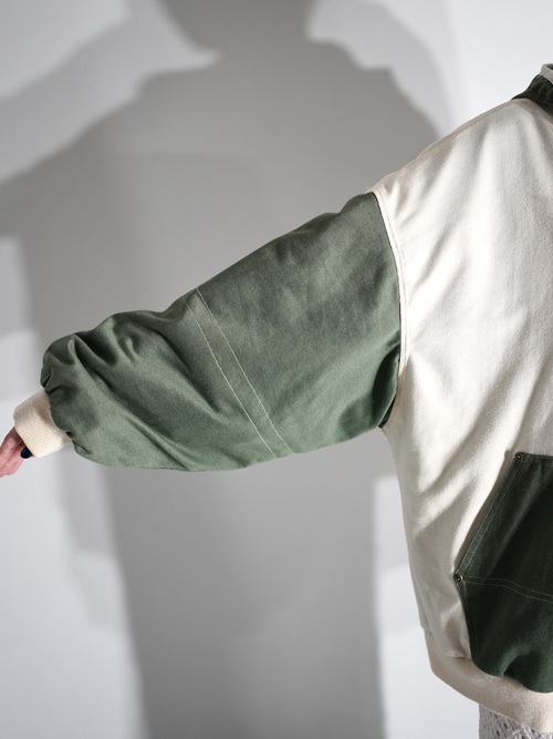 グリーンとオフホワイトの2トーンカラーで統一しつつも、両面でガラッと印象を変えるギミックジャケット