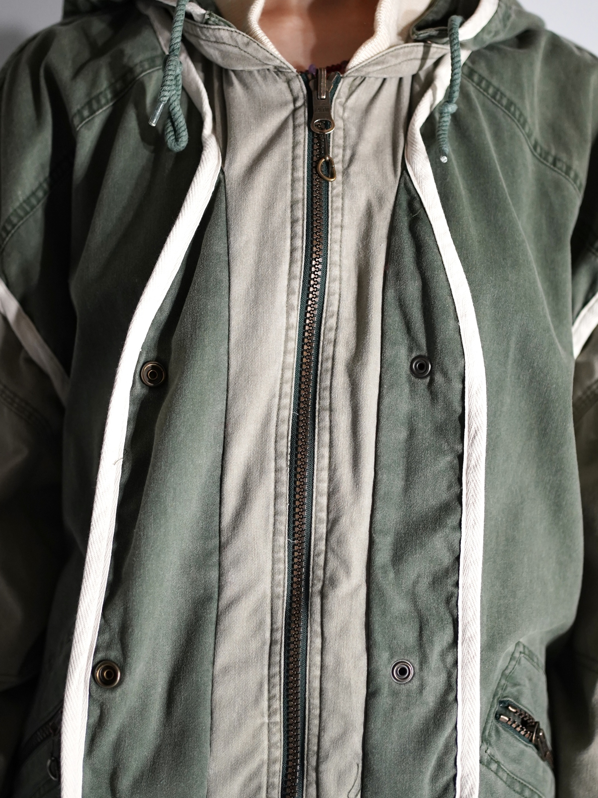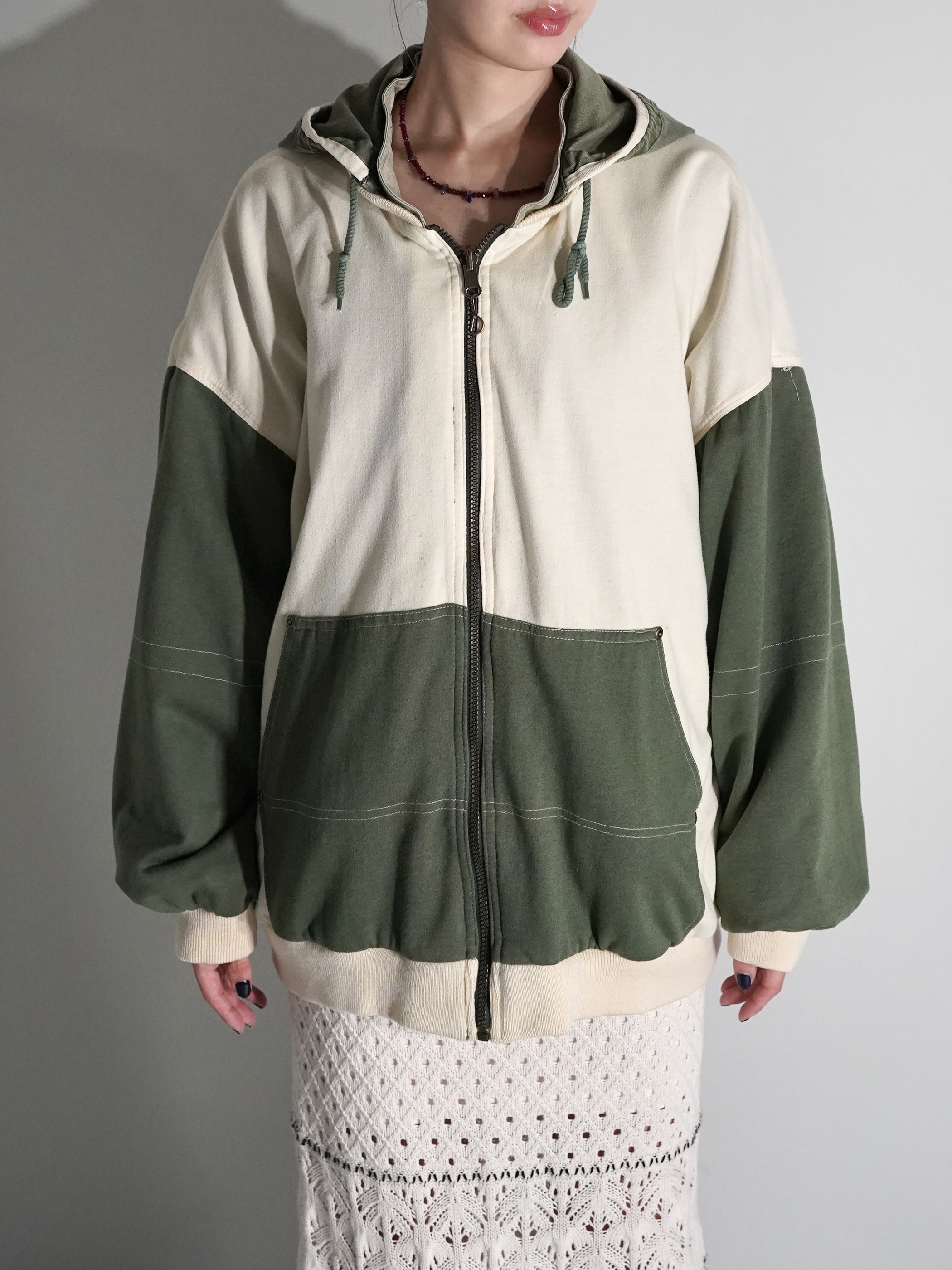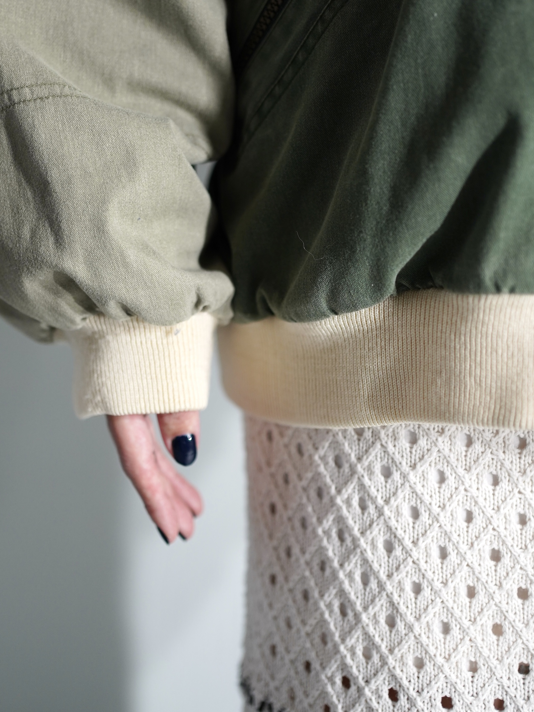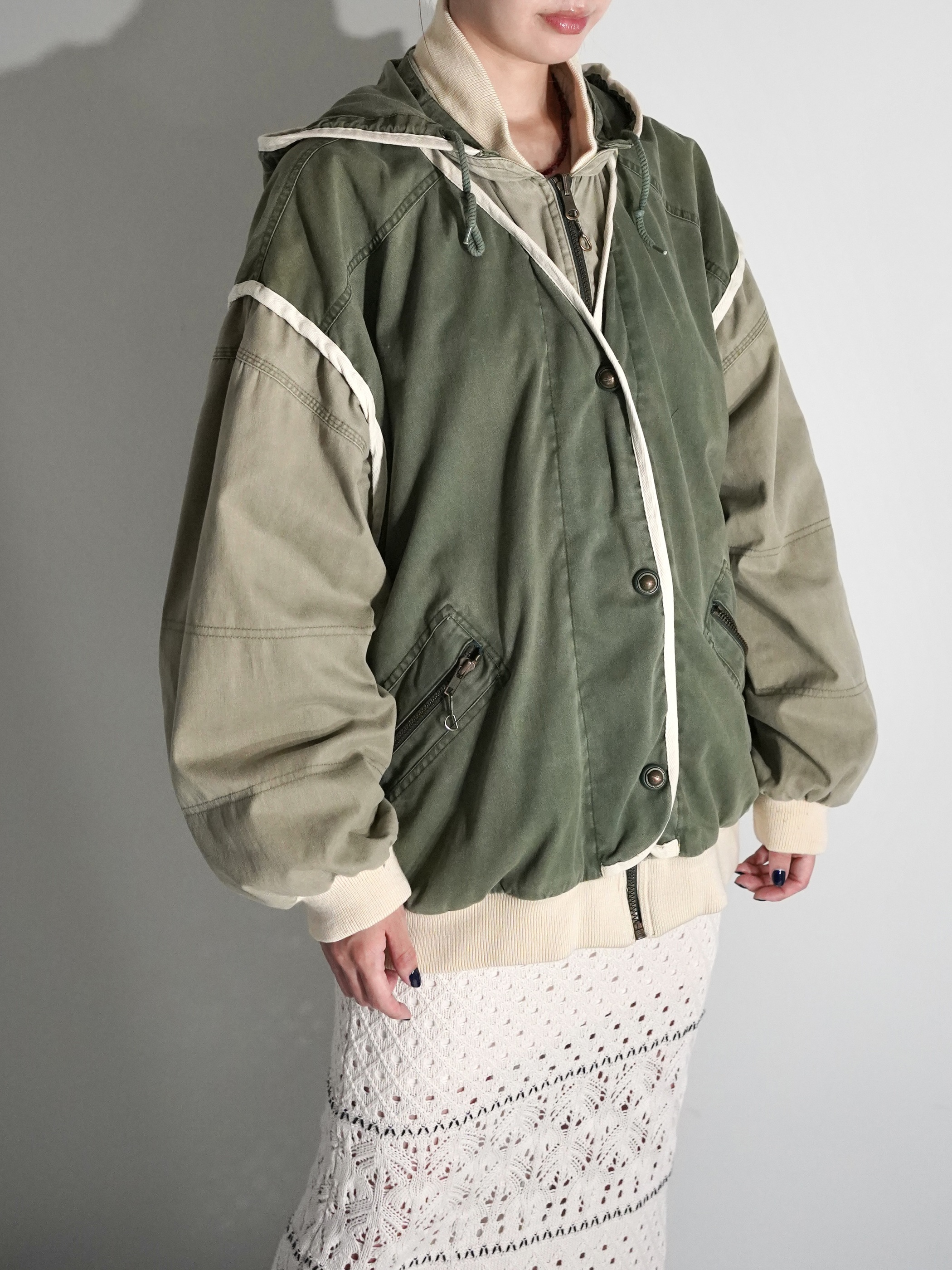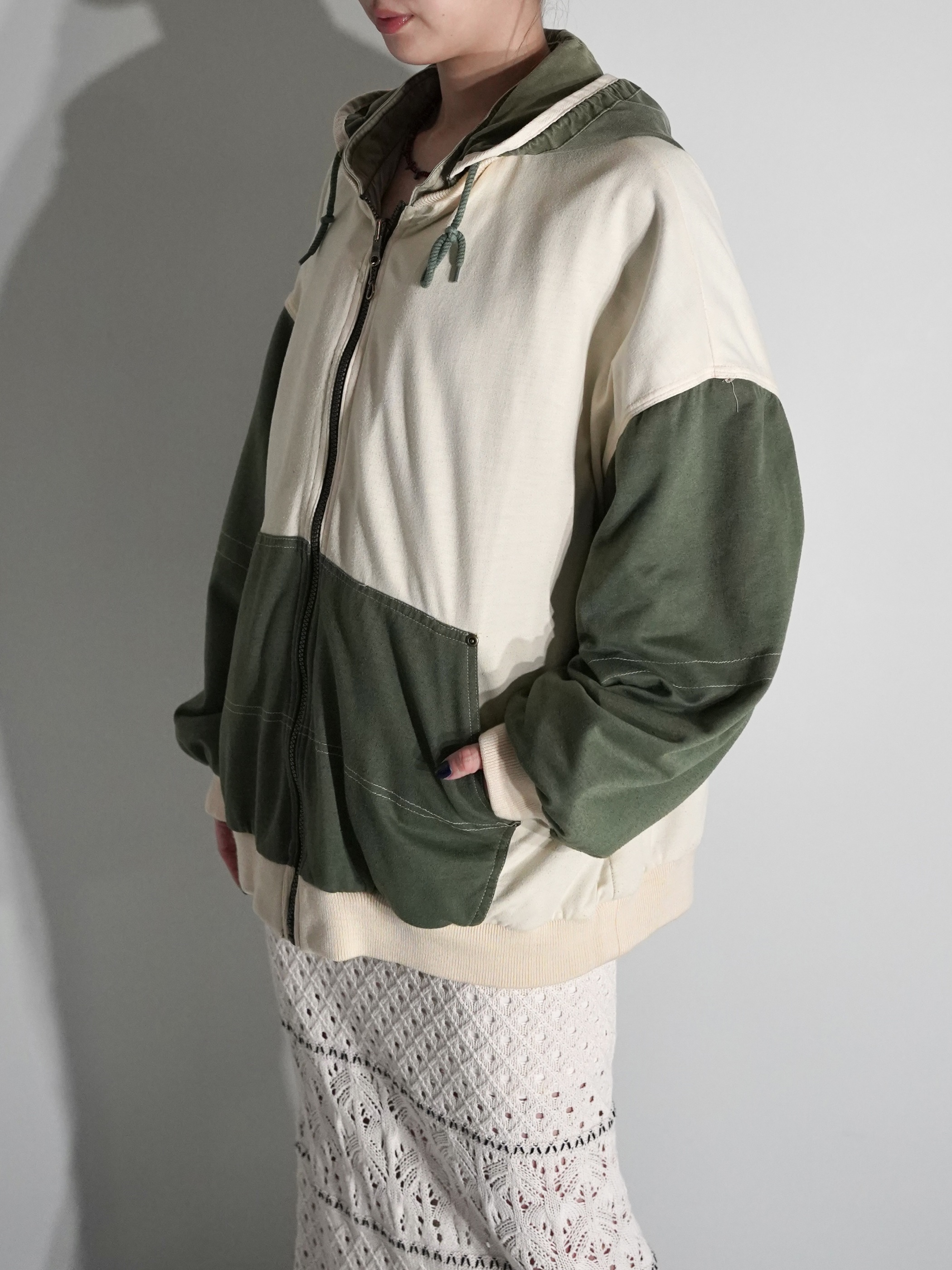 グリーンとオフホワイトの2トーンカラーで統一しつつも、両面でガラッと印象を変えるギミックジャケット