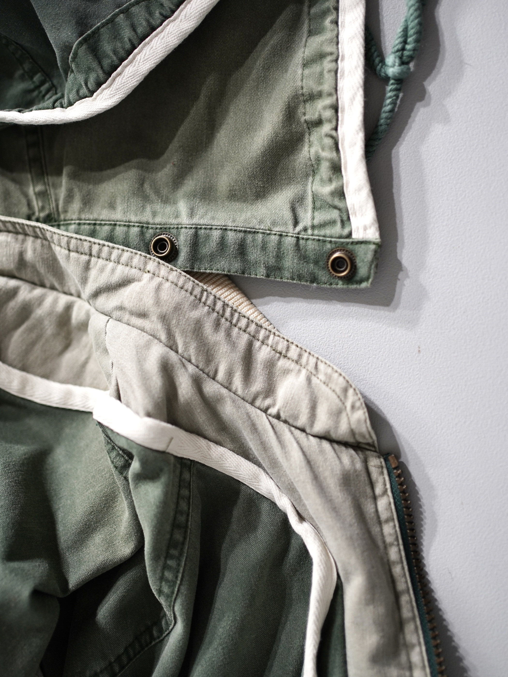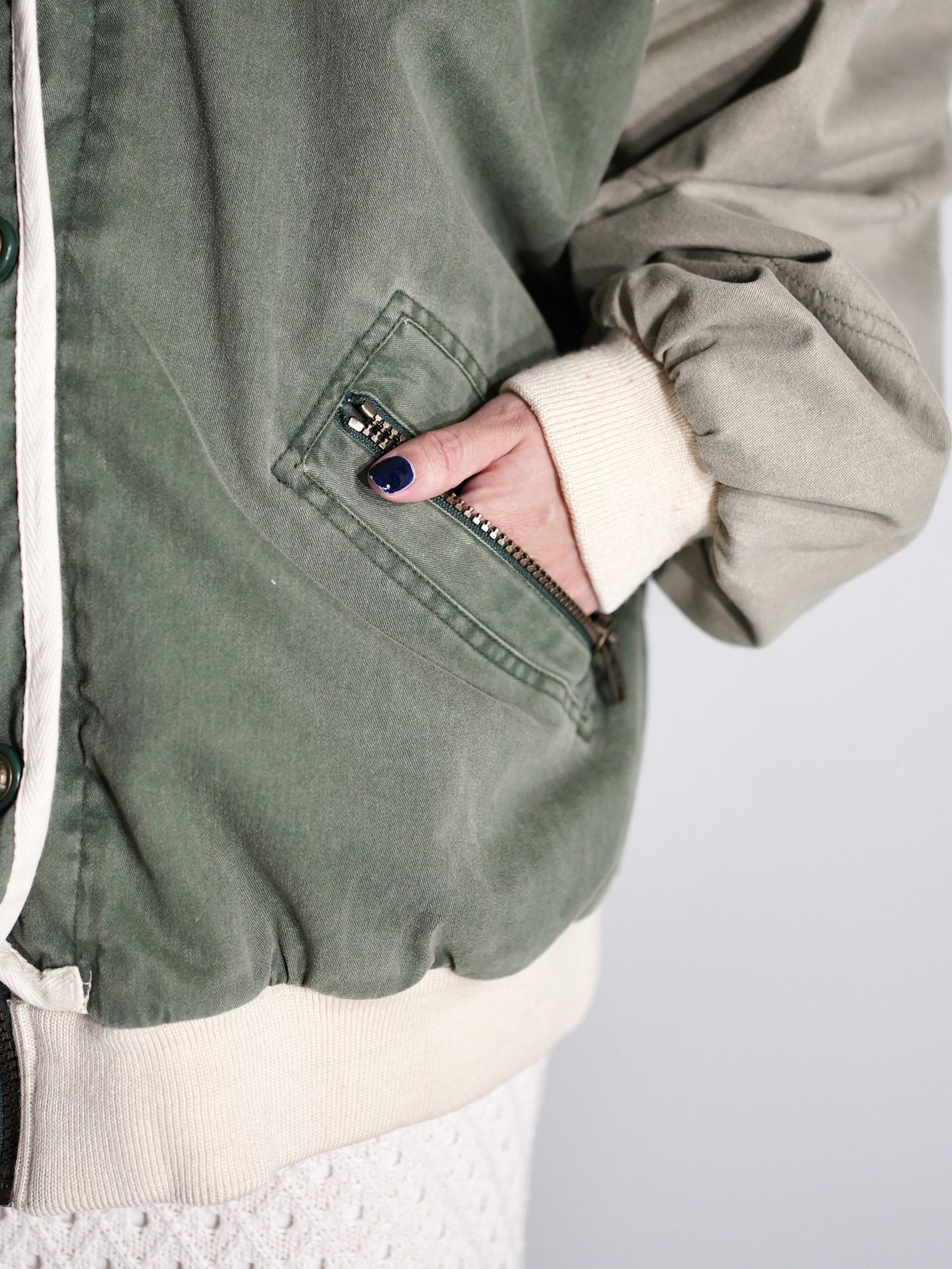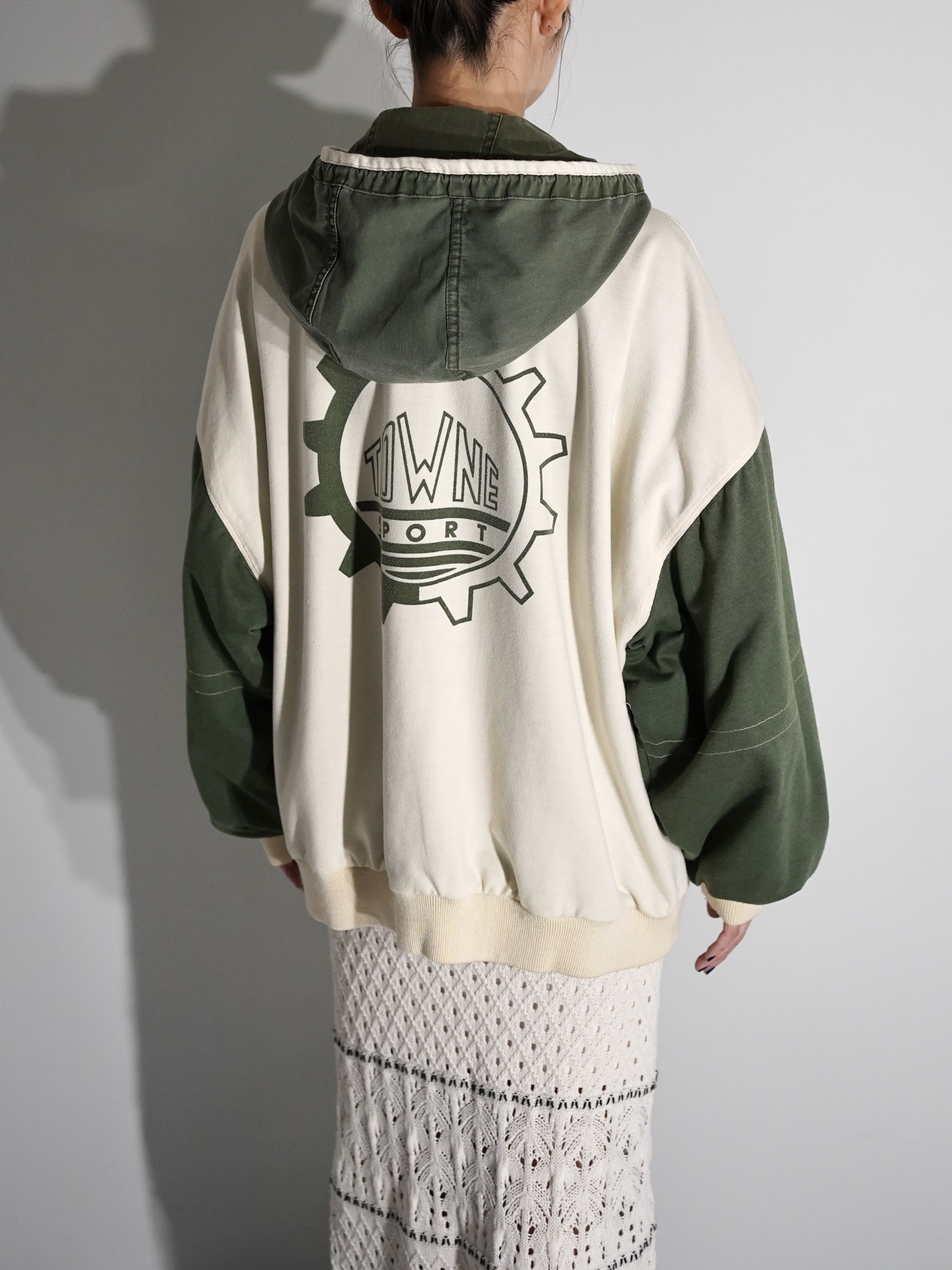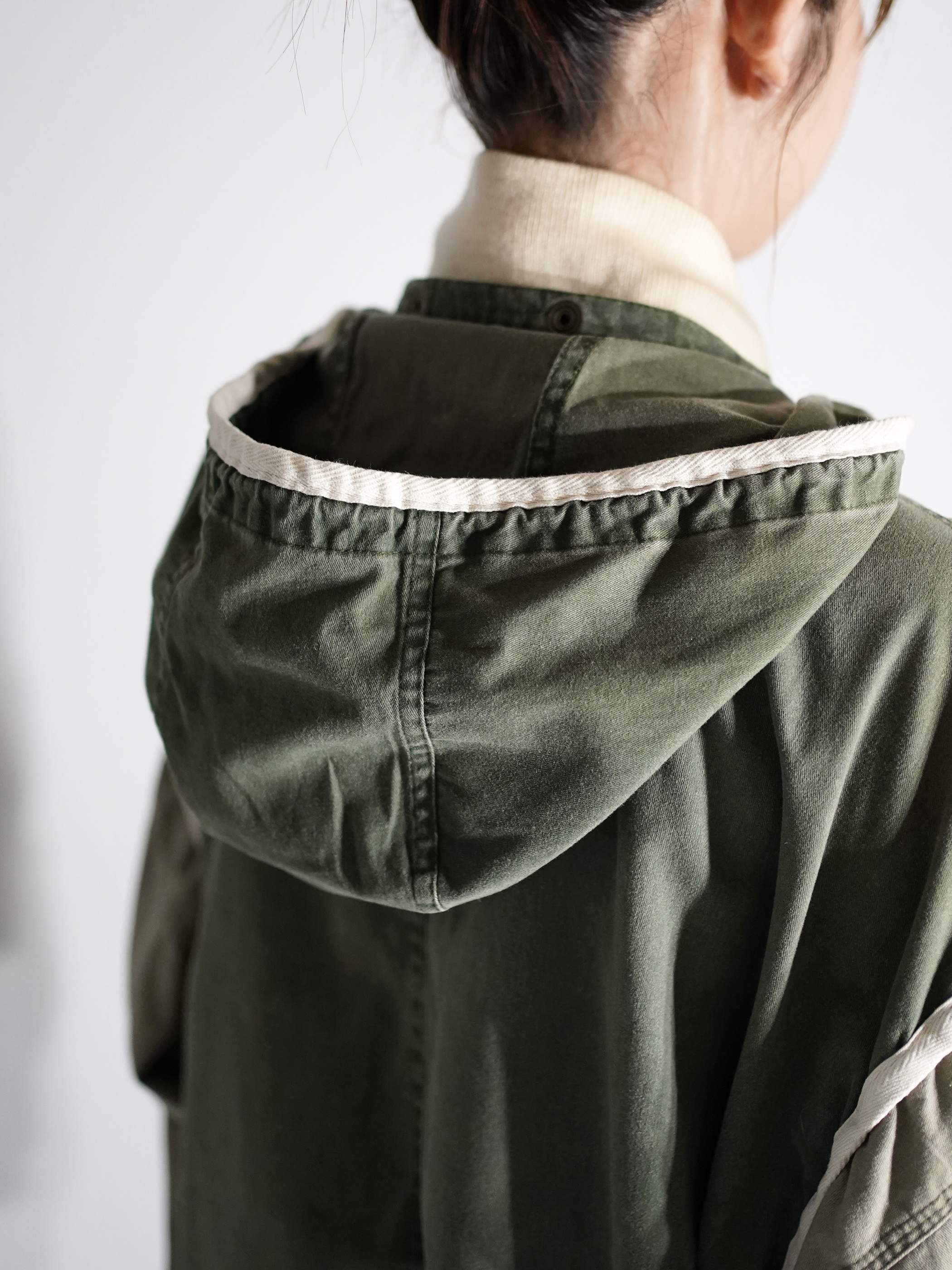 グリーンとオフホワイトの2トーンカラーで統一しつつも、両面でガラッと印象を変えるギミックジャケット