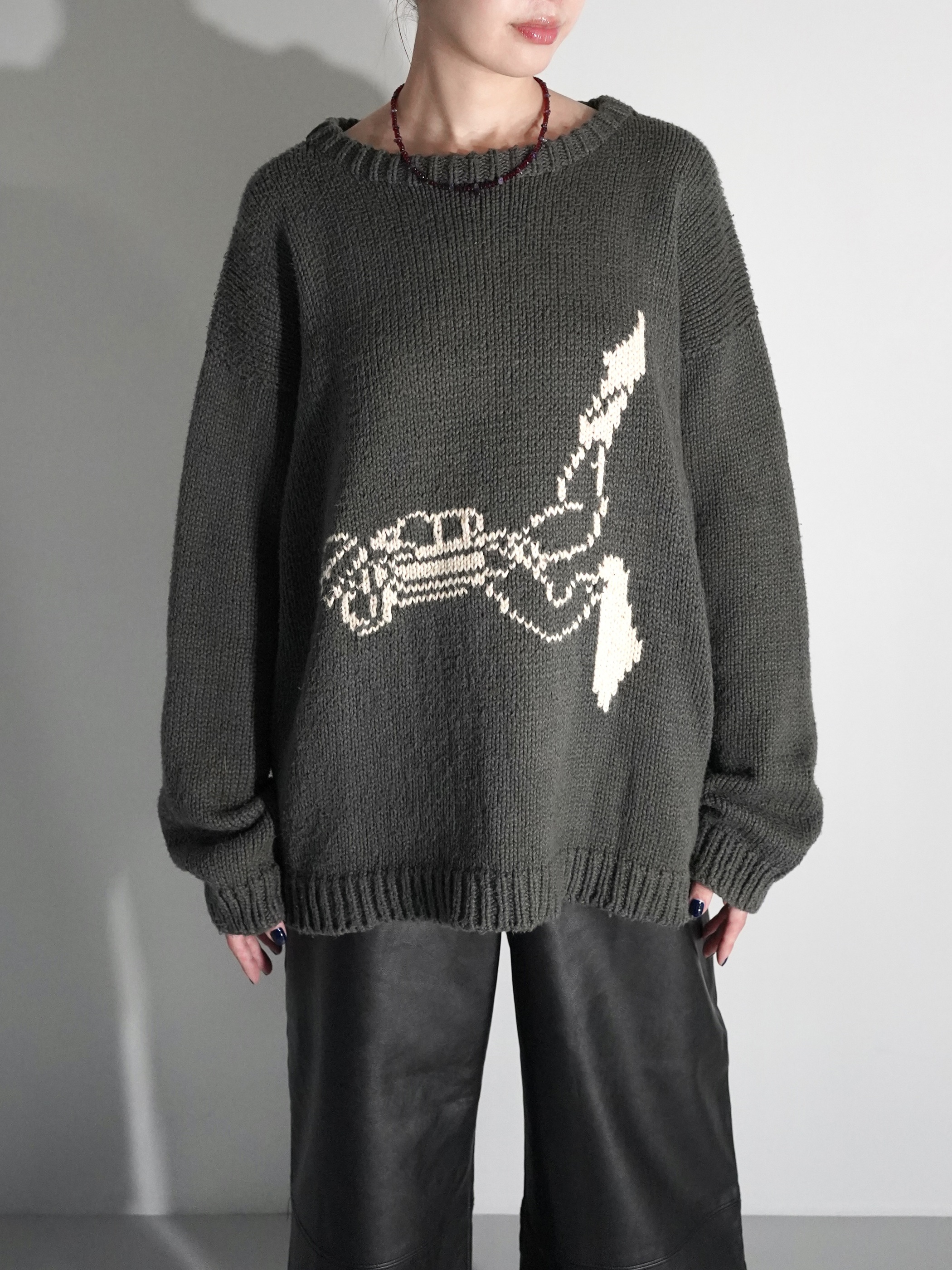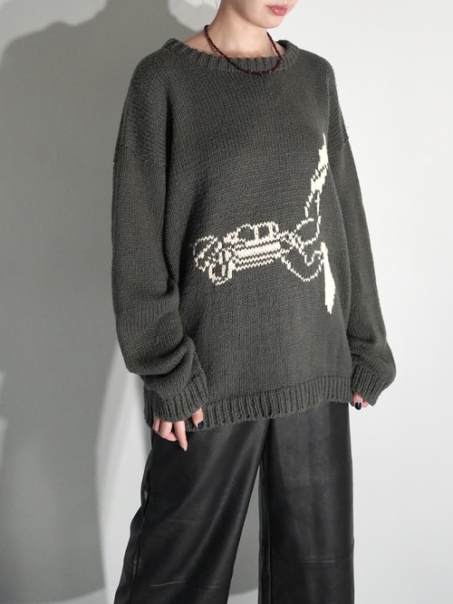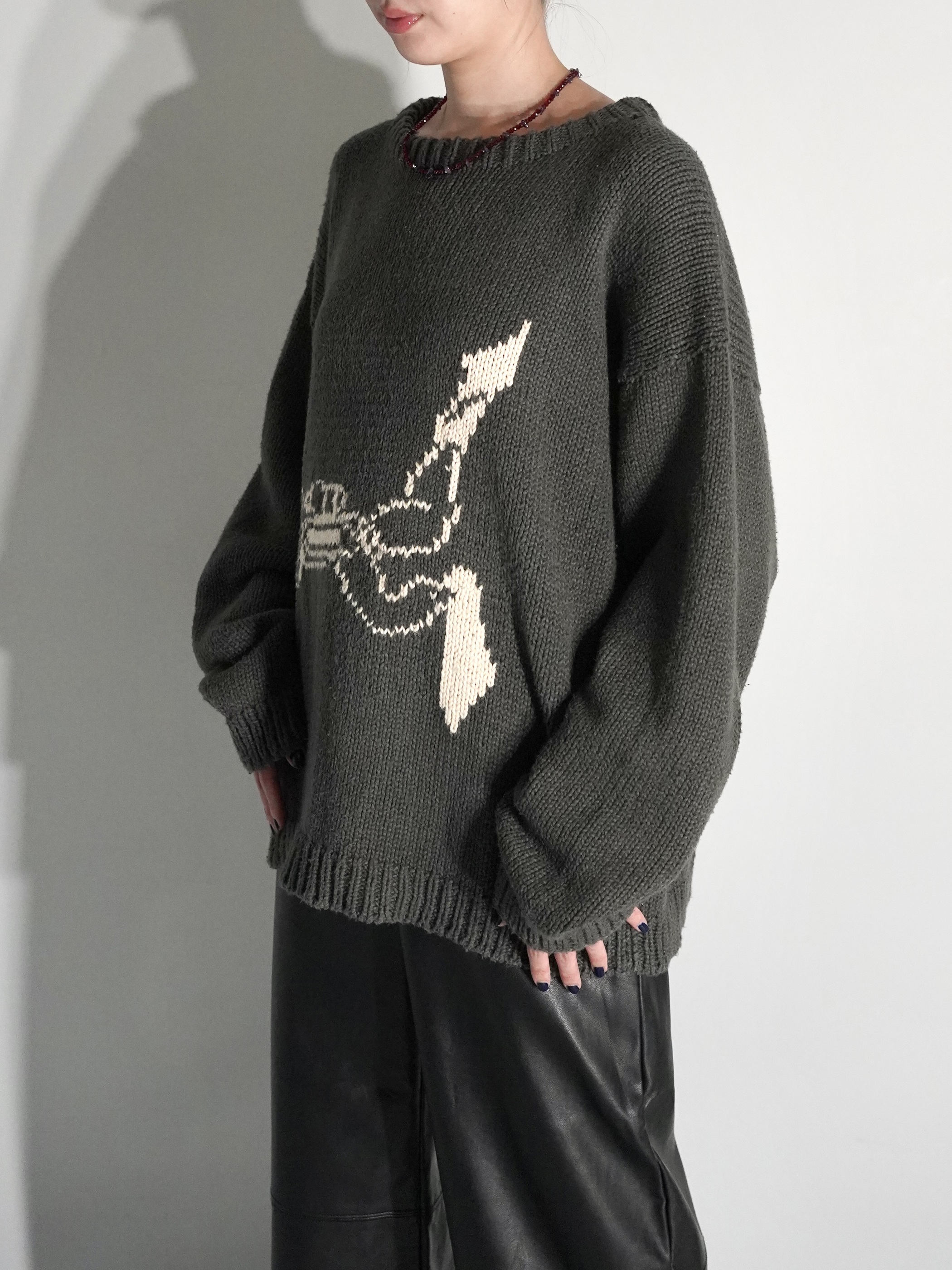 2色の糸でスキューバダイビングをした人物を描いたコットンニット
