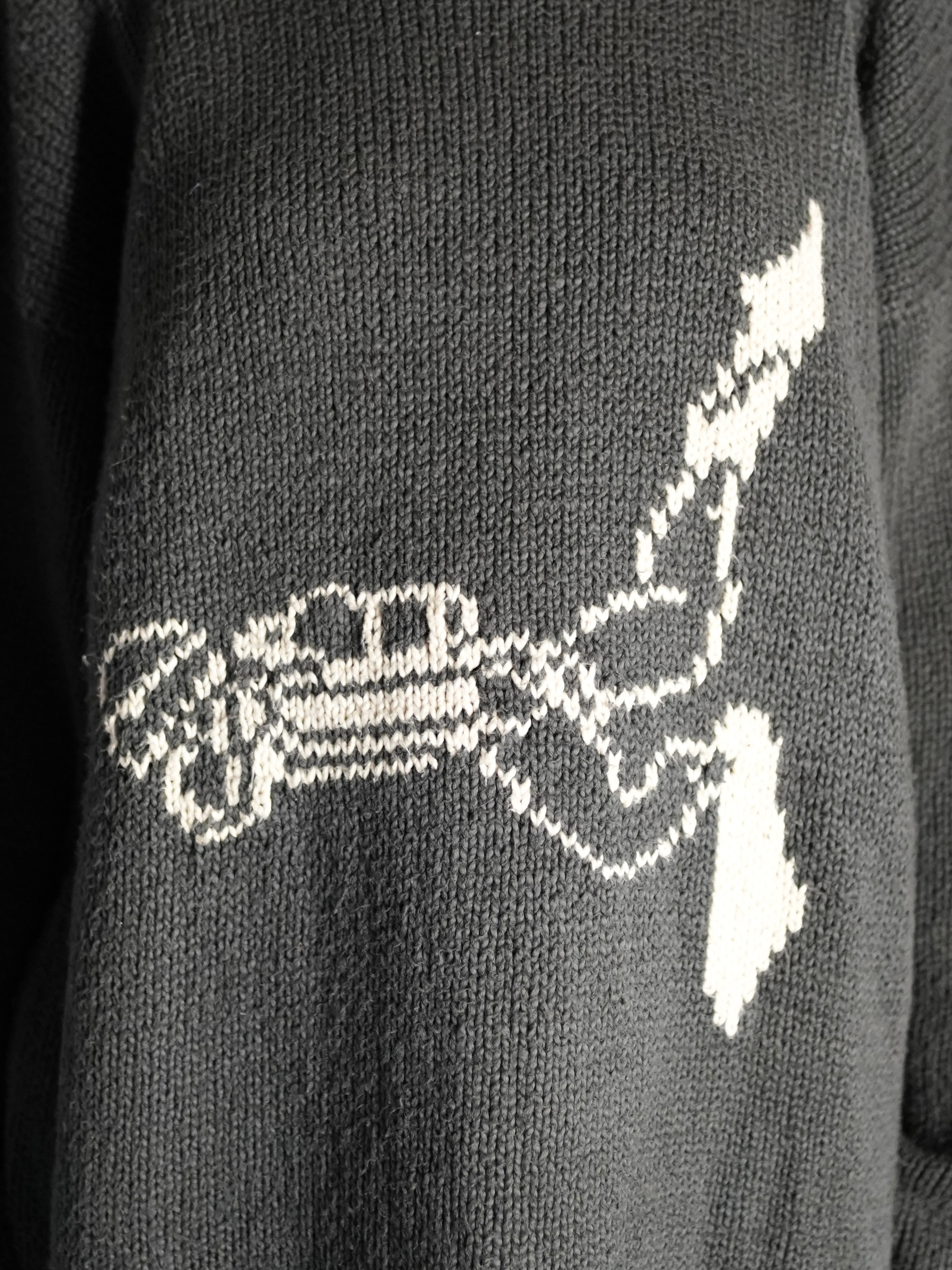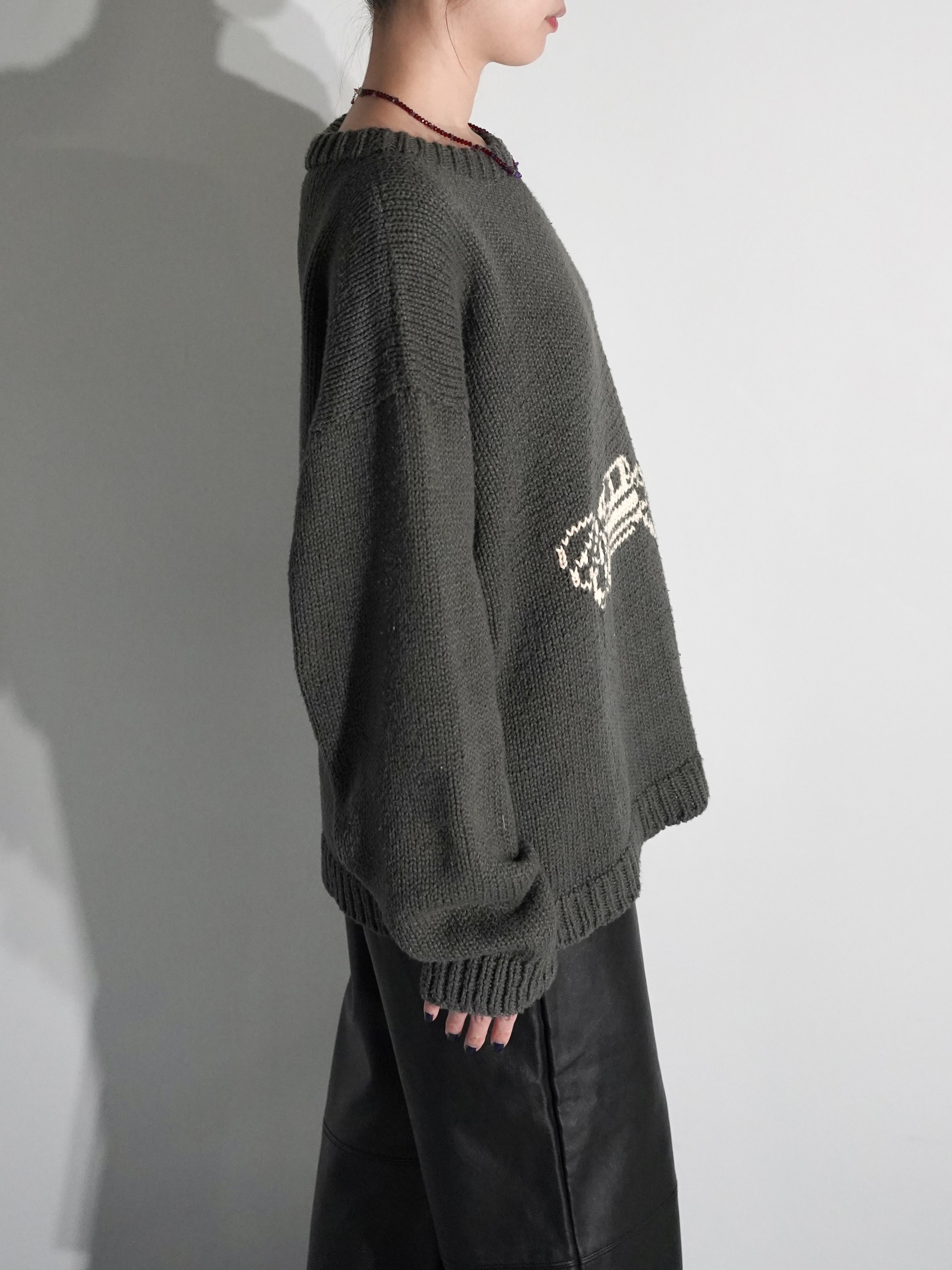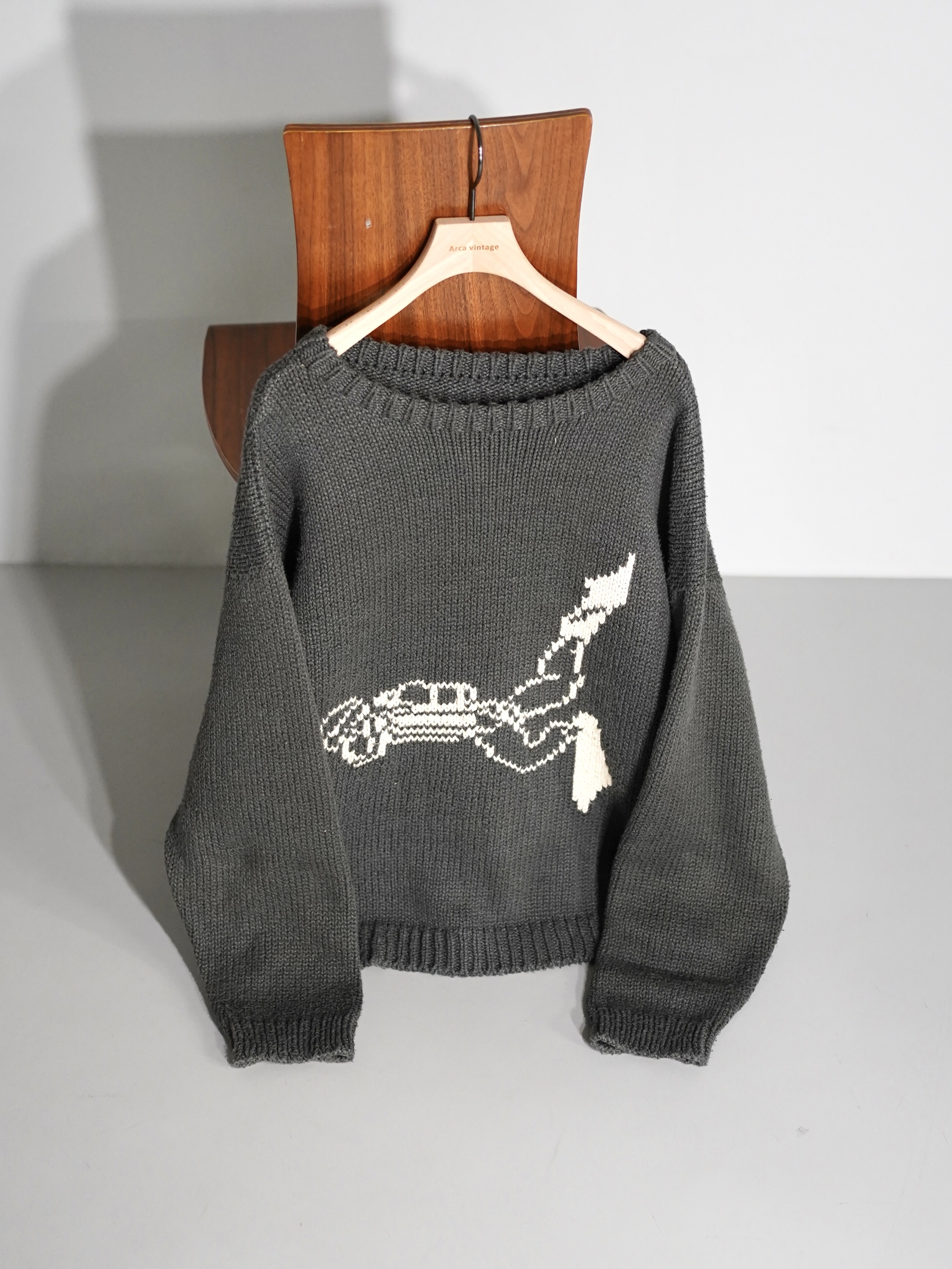 2色の糸でスキューバダイビングをした人物を描いたコットンニット