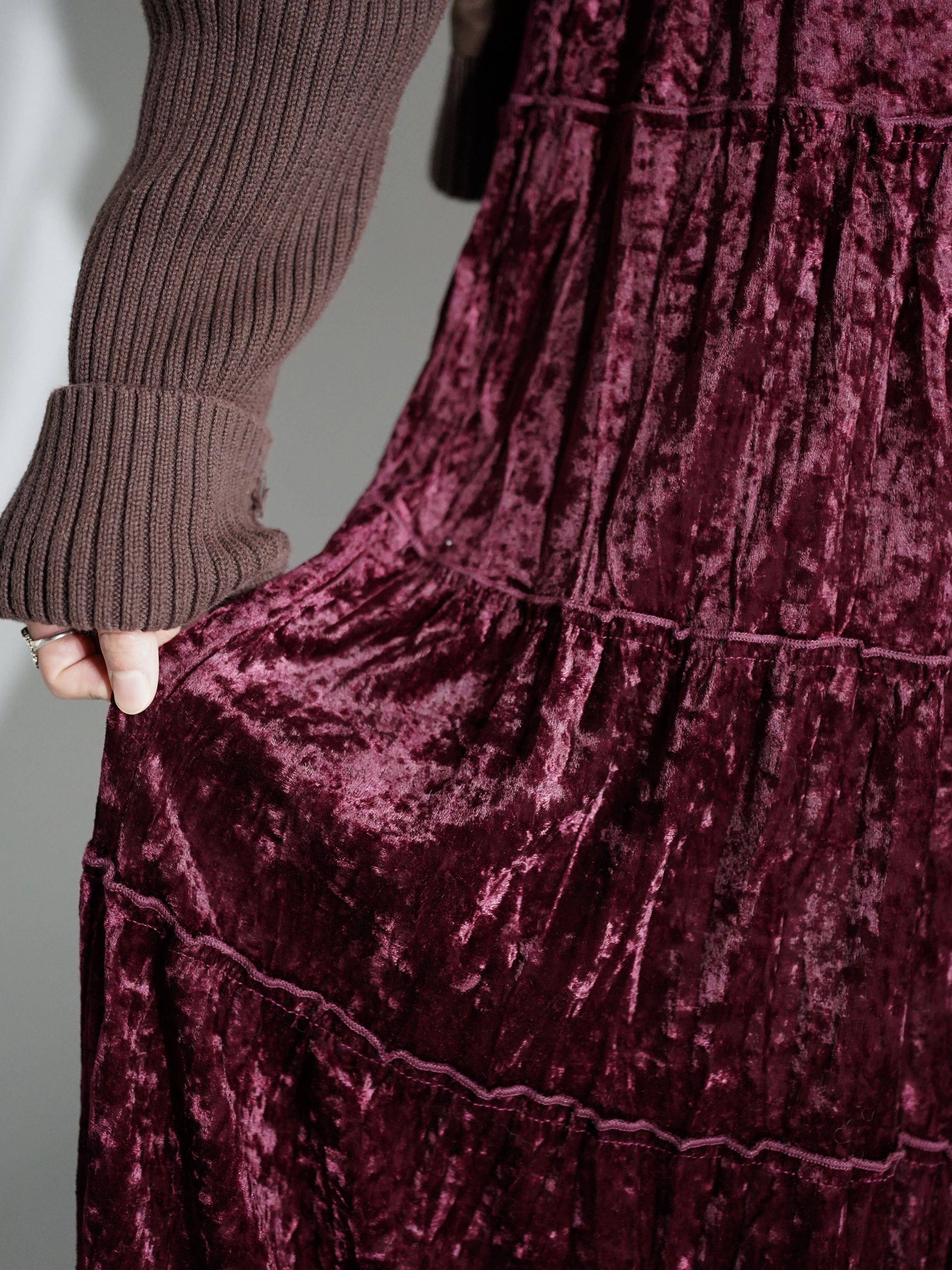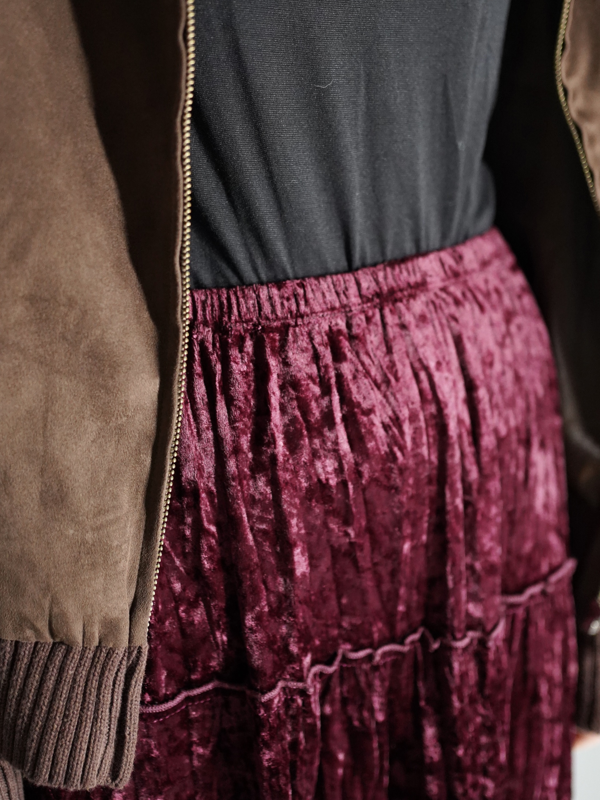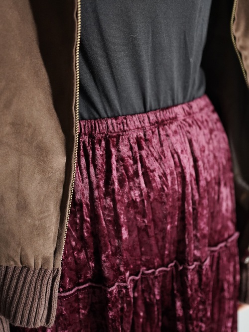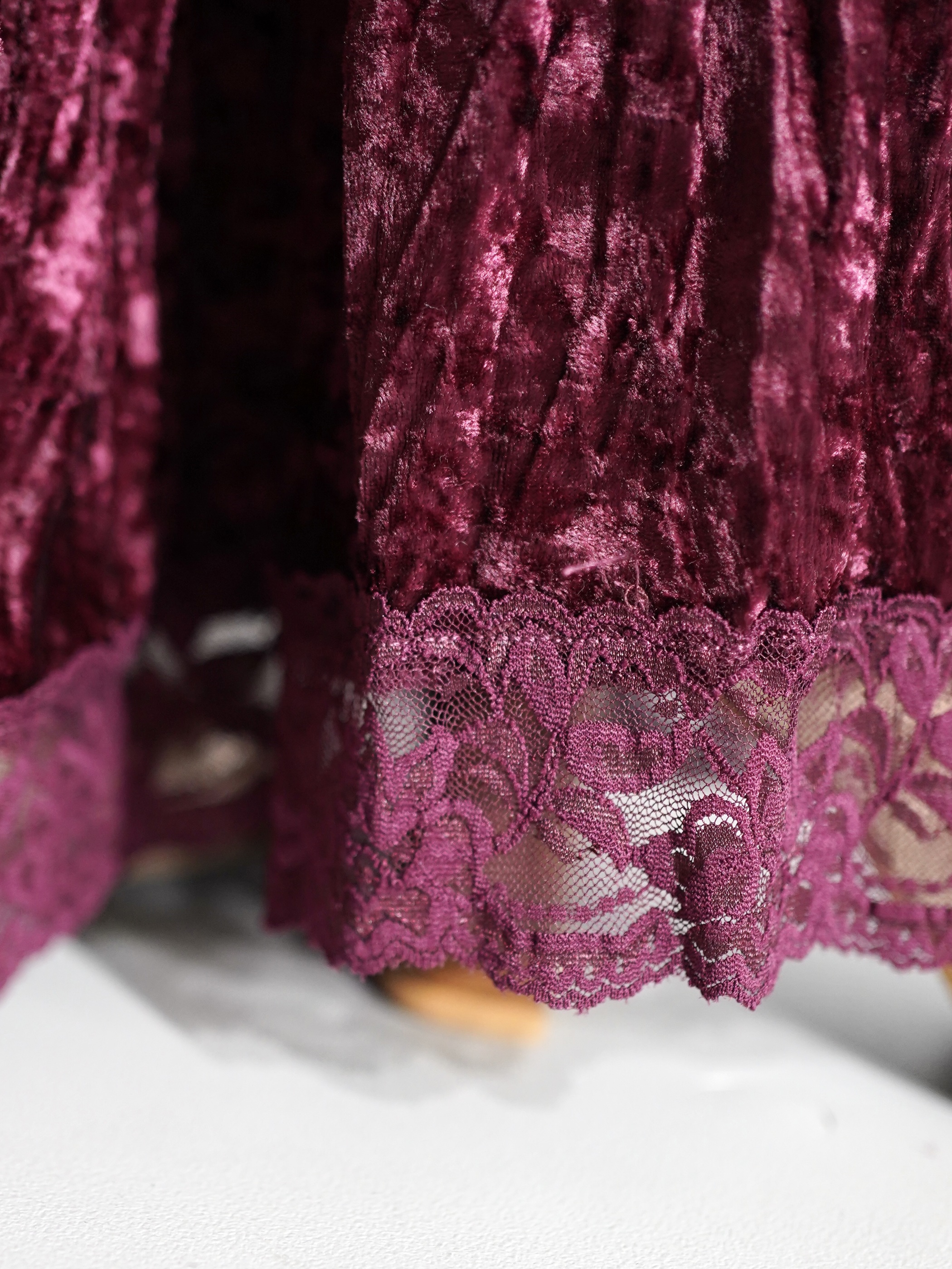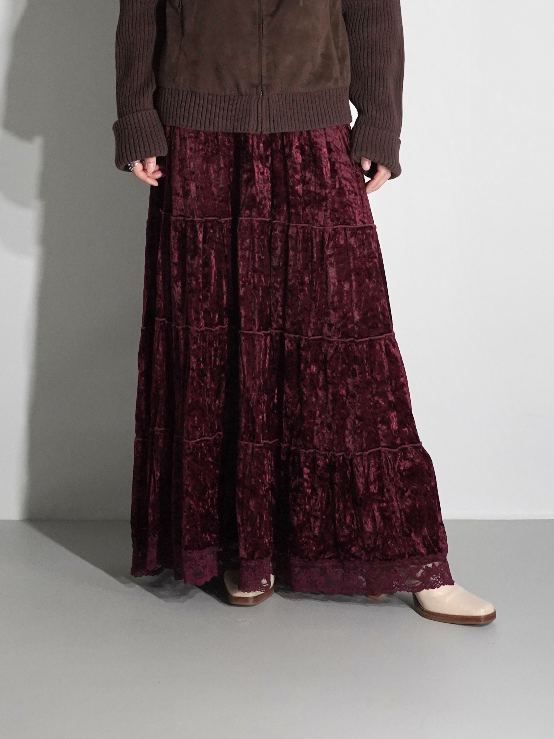 Lace Hem Crushed Velour Tiered Skirt
