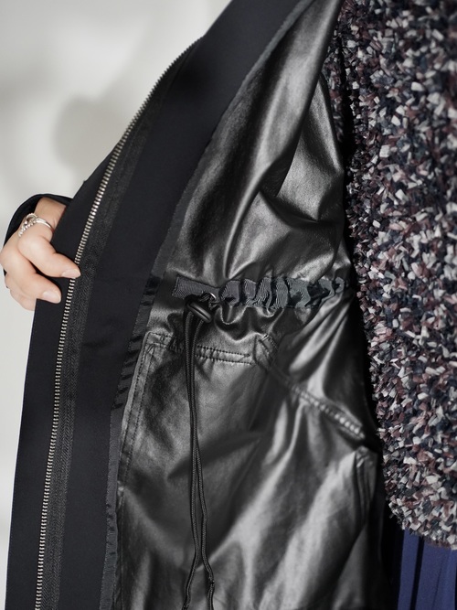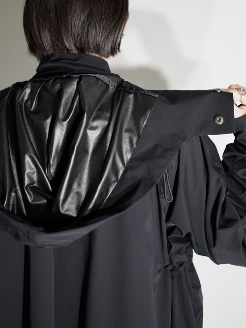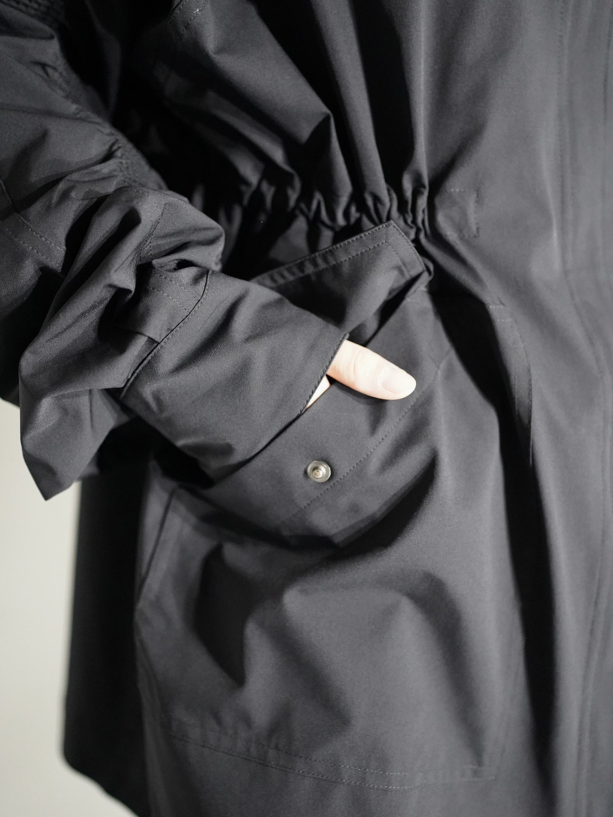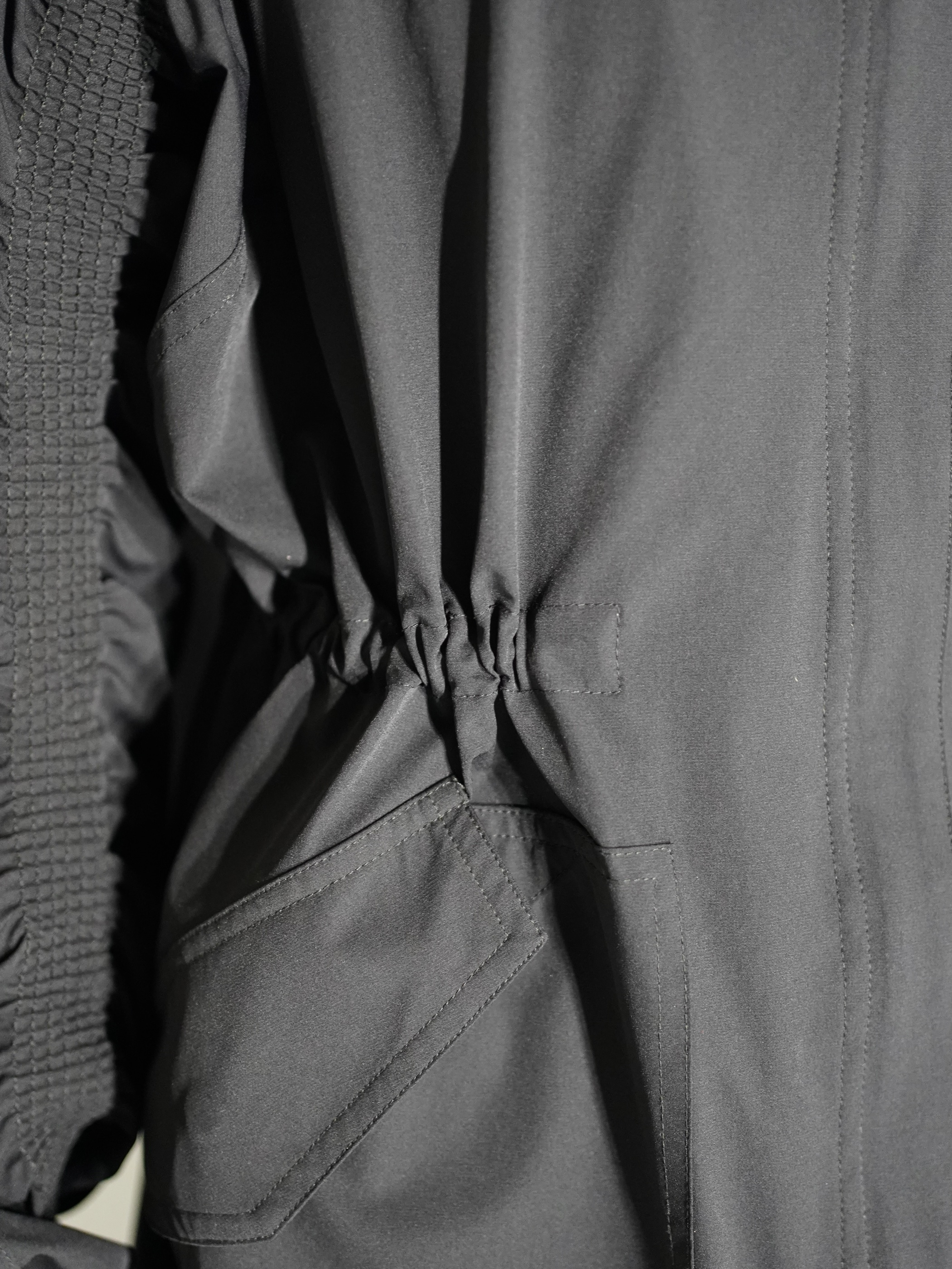 ウエストのドローコードを絞ったり 気分でフーディーをつけたり フロントはトップボタンのみ閉めてAラインを作ったり。スタイリングに合わせて様々な着方を楽しめるコートです