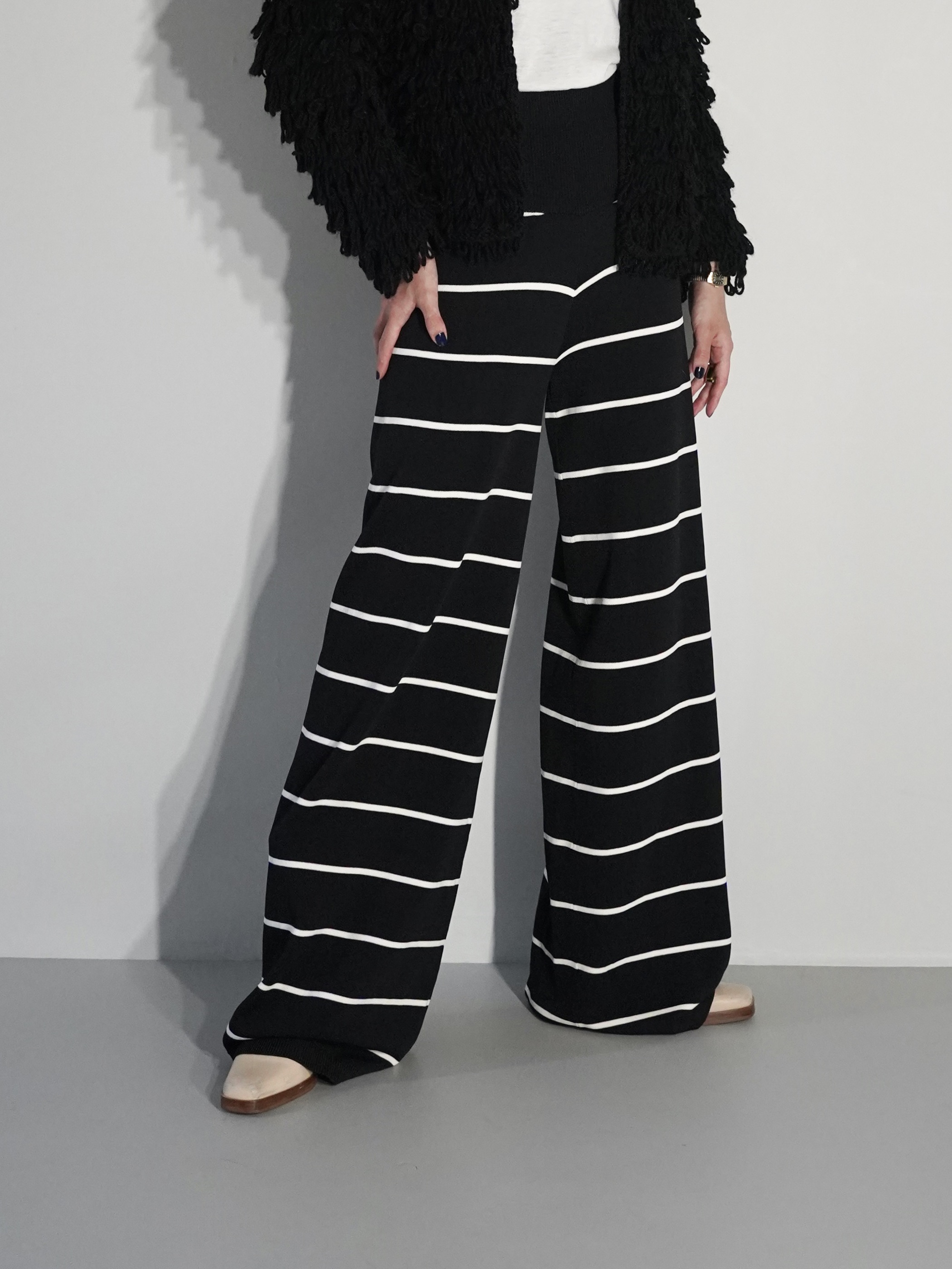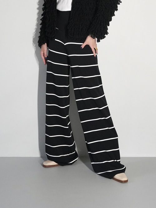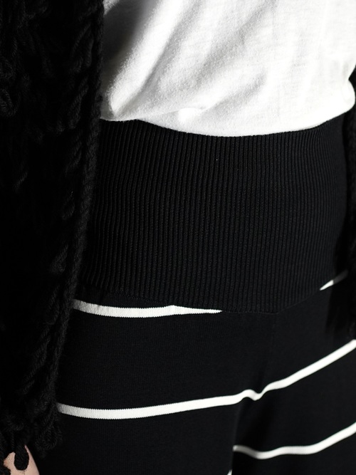 ニット素材で動きやすくインしてハイウエストで着用などスタイリングで魅せるボトムス