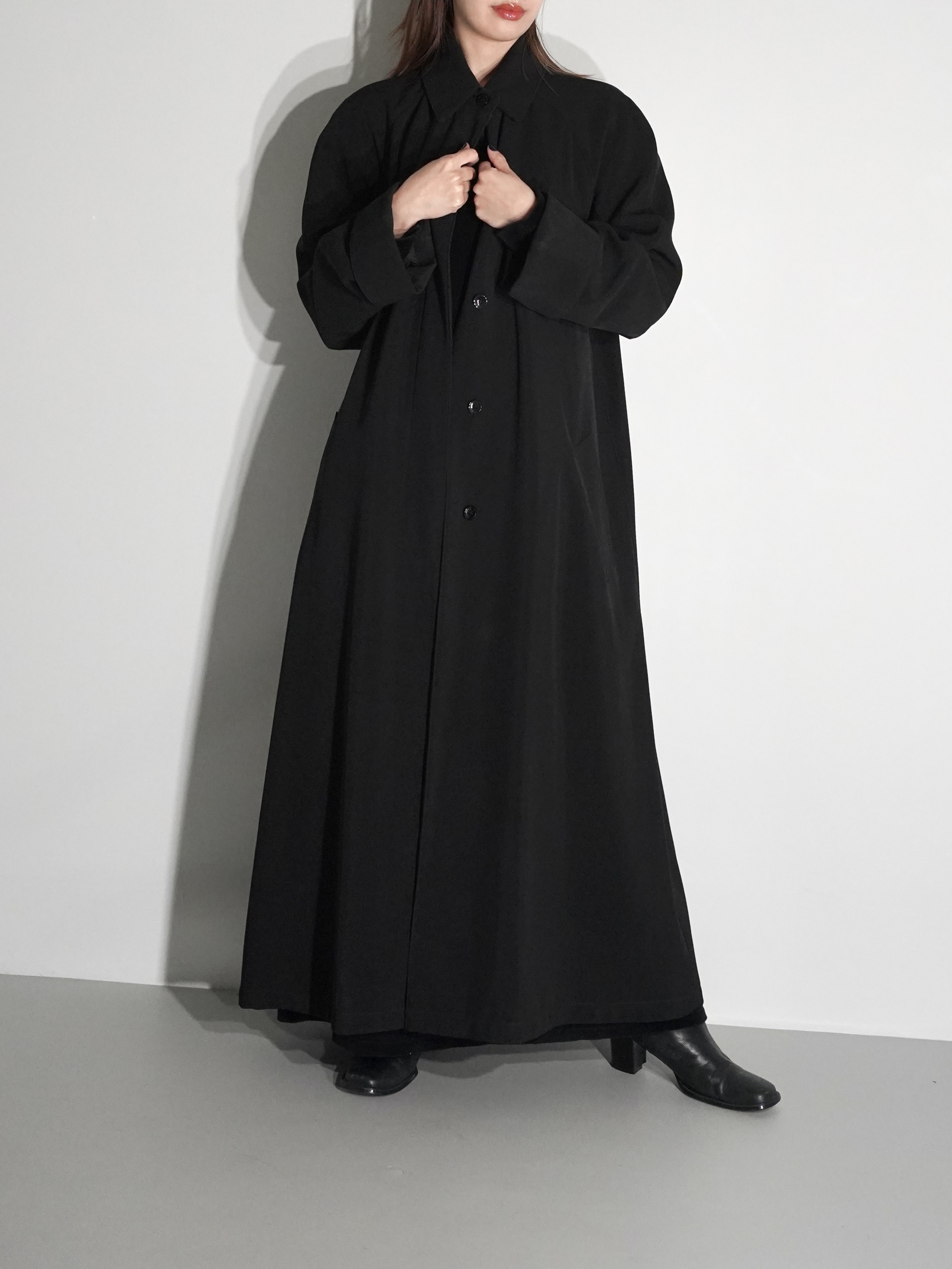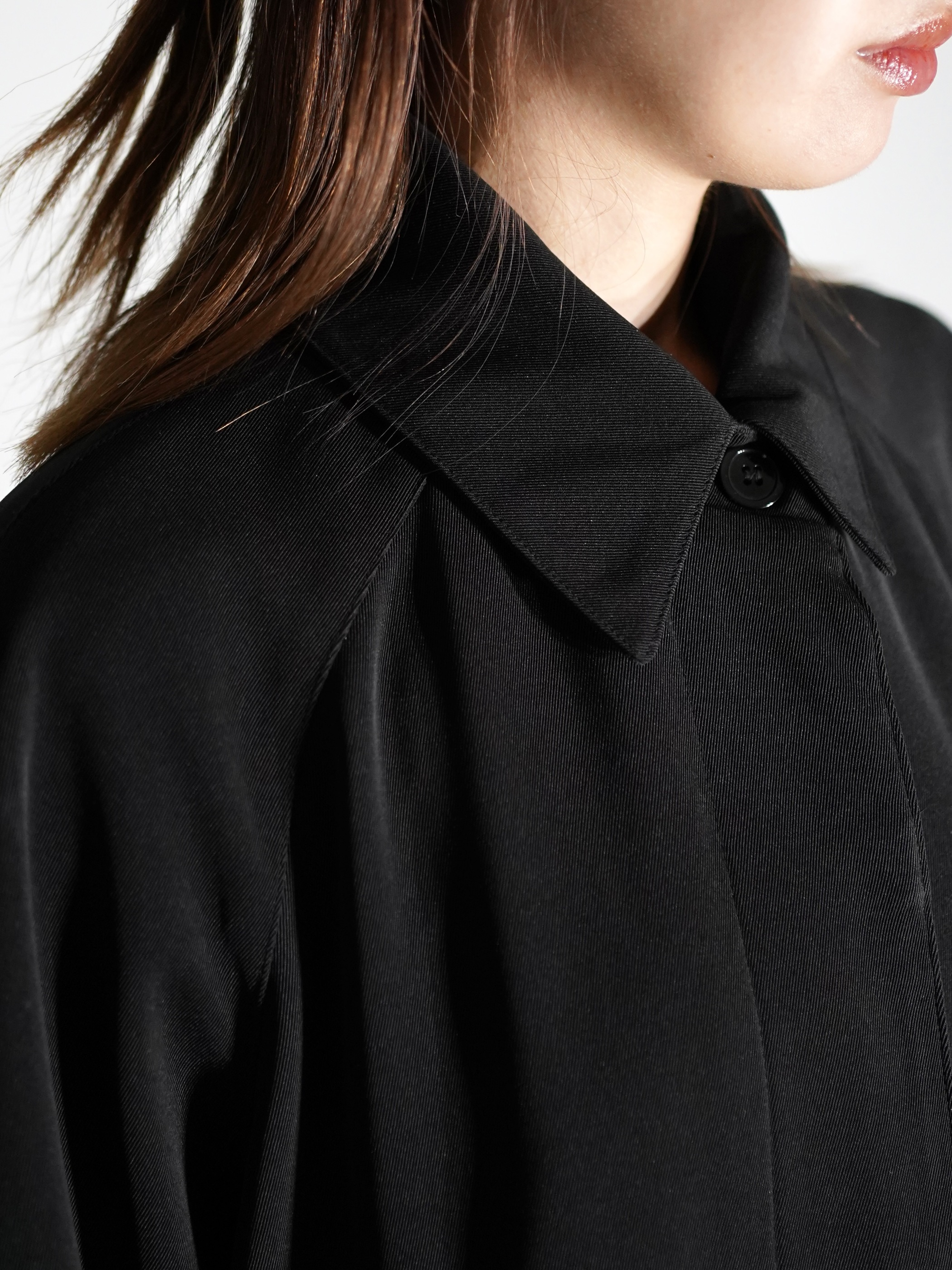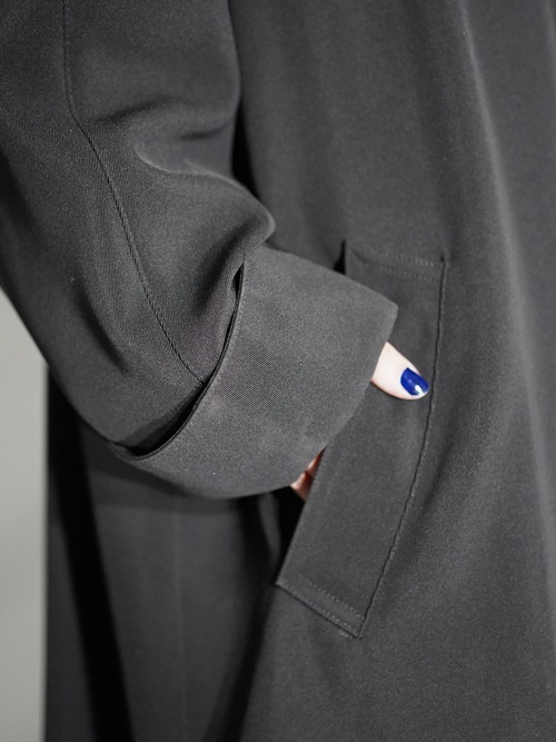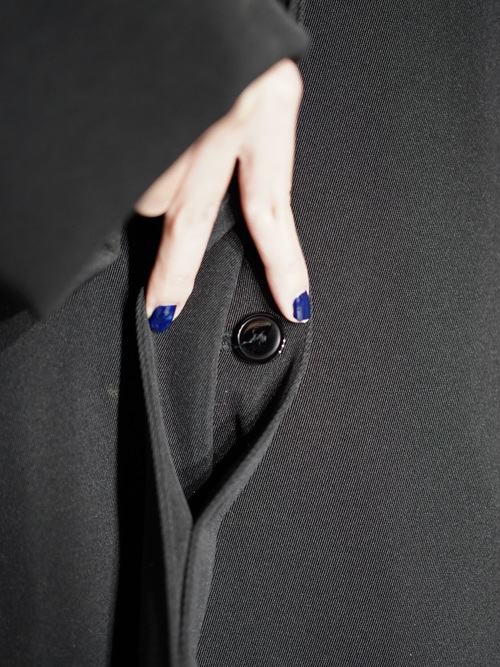 トップボタンを除いて他は比翼仕立てになり、すっきりした印象