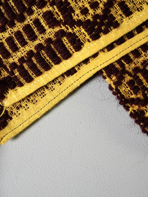 古い生地を編みこんだラグ